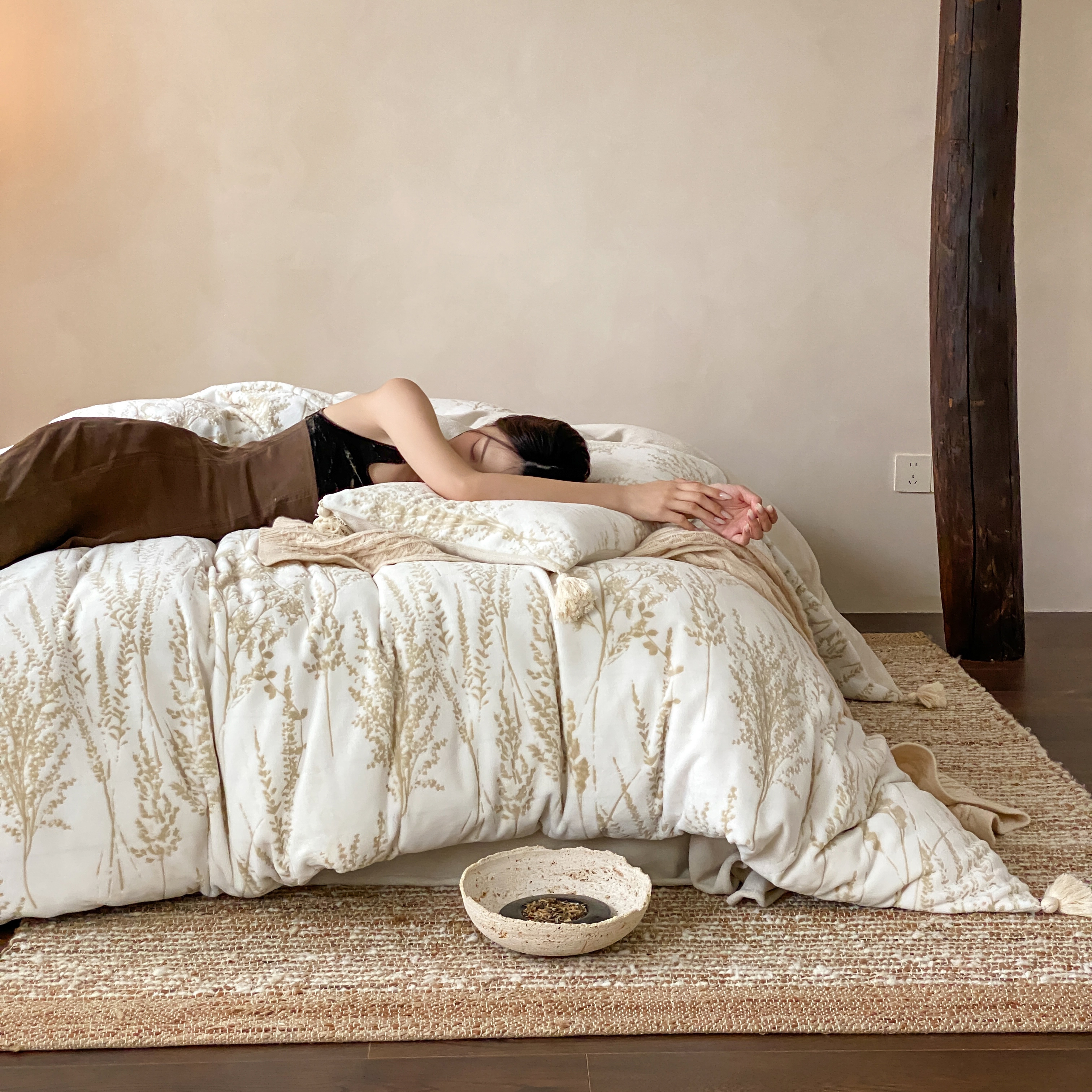 当前位置: 91家纺网 > 商品网购 > 床品套件 > 四件套 > 牛奶绒四件套 > 玉宇阁家居 2025新款双色提花雕花牛奶绒四件套 流苏款 雕花牛奶绒-流苏款-松月茶烟