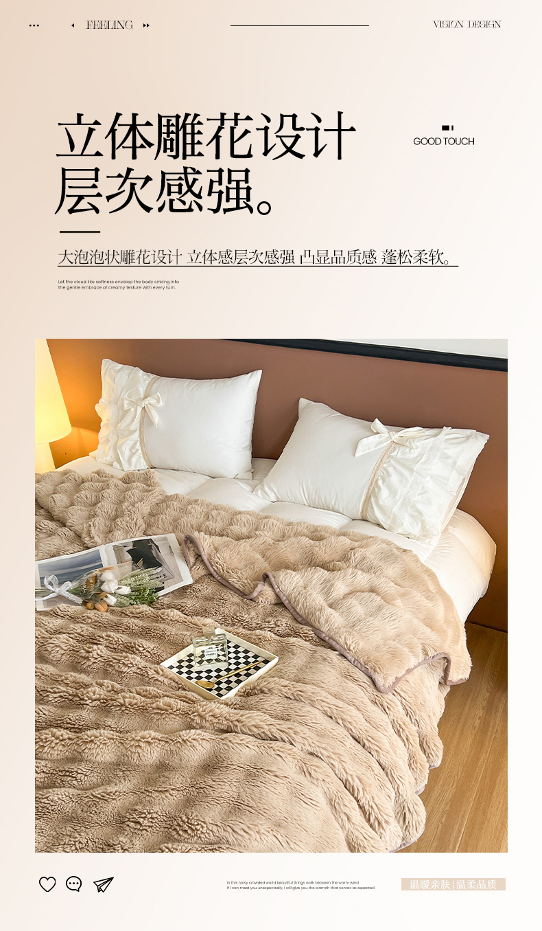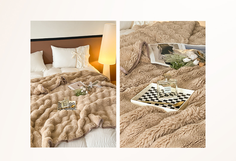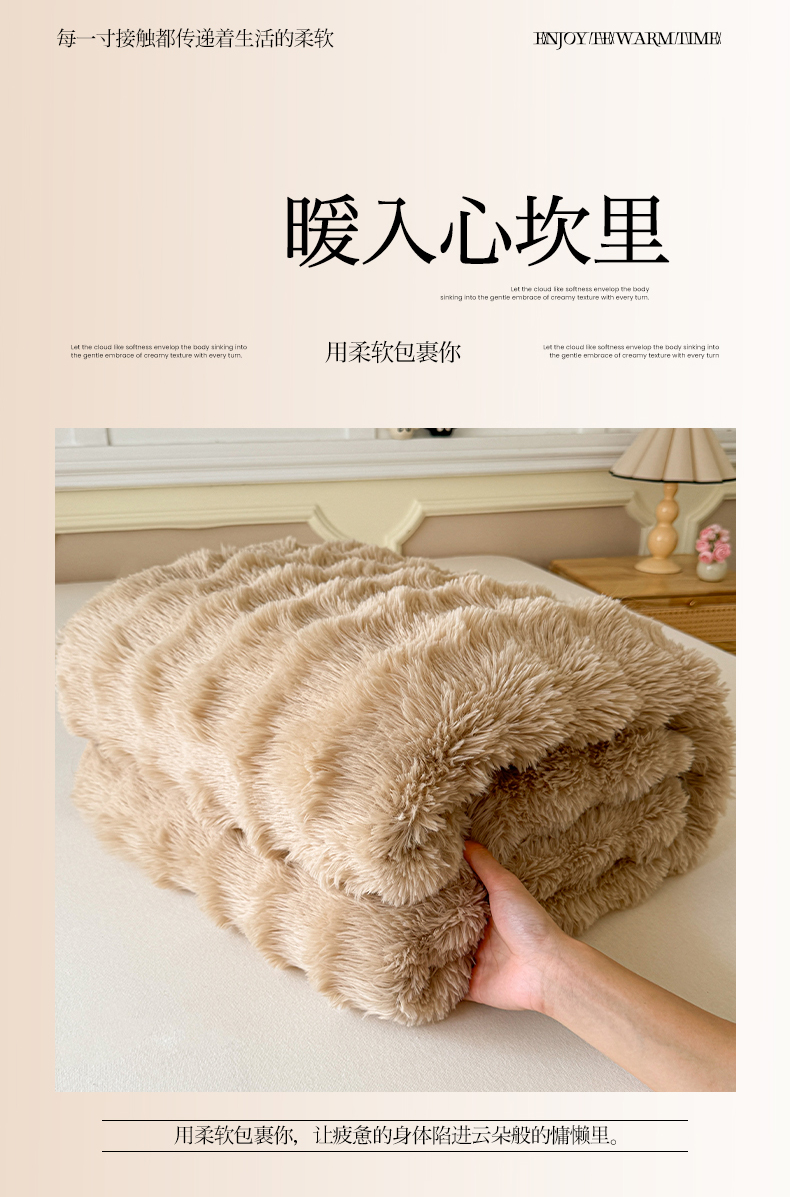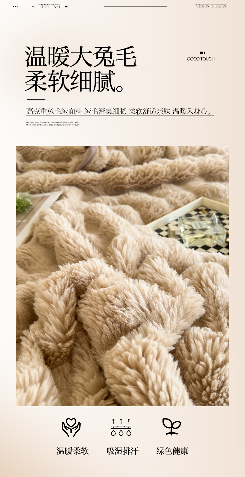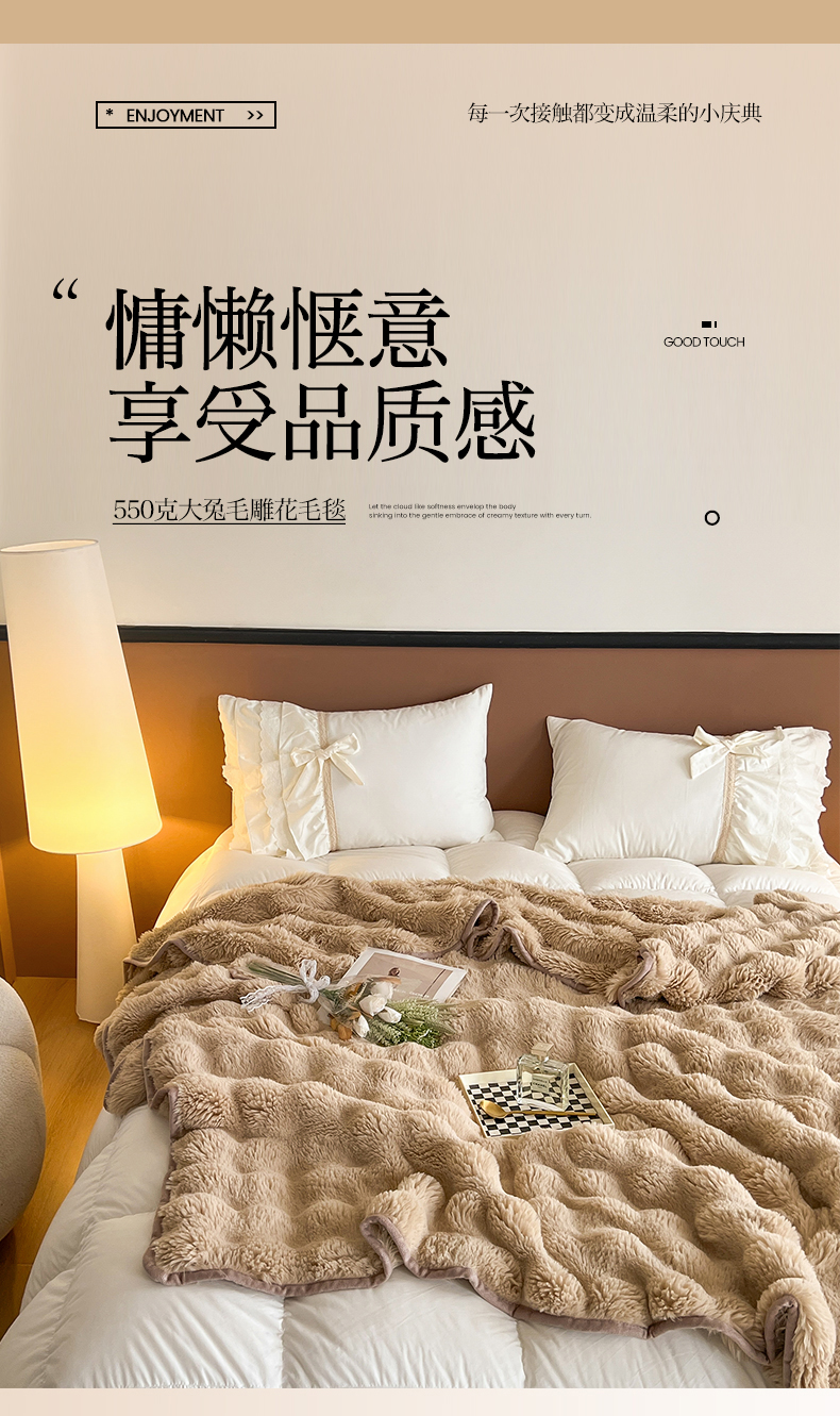 妖妖家纺 2025新款600克双面大兔毛雕花纯色毛毯 奶芙咖