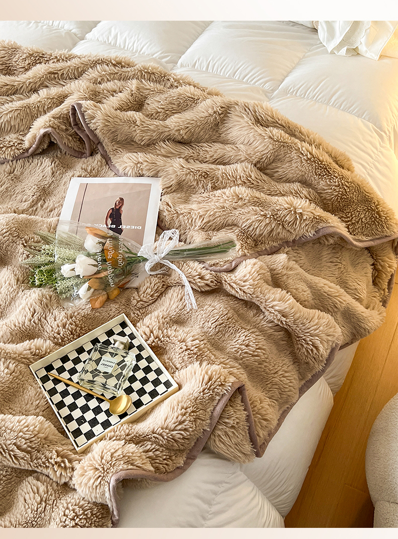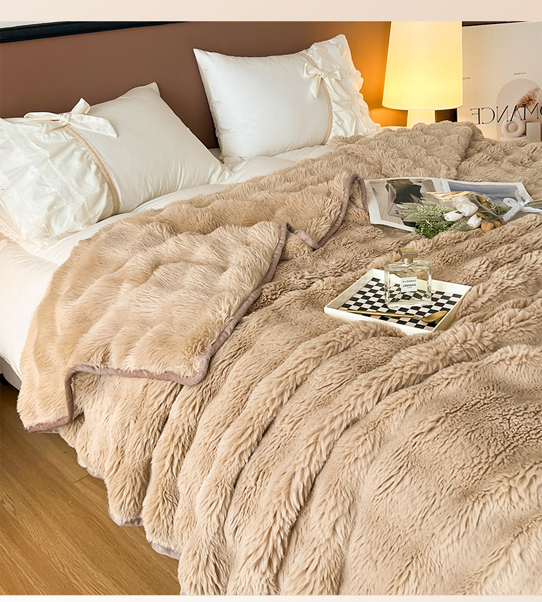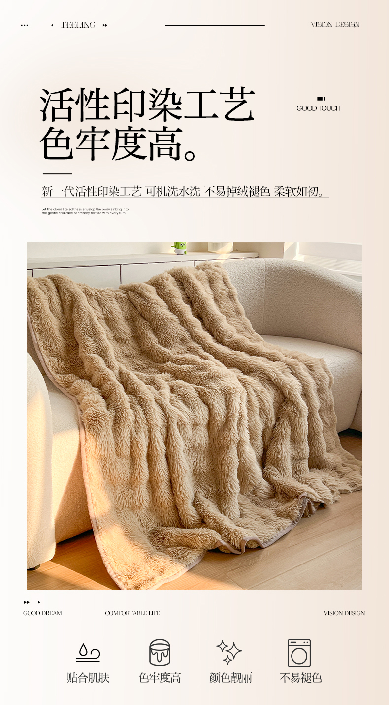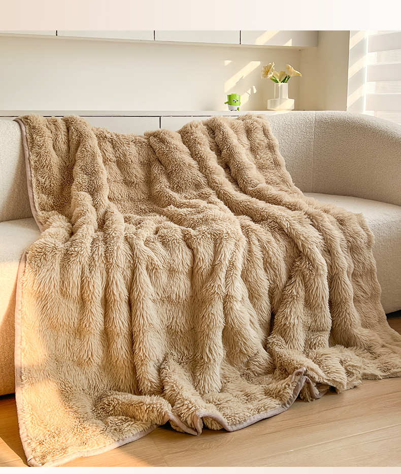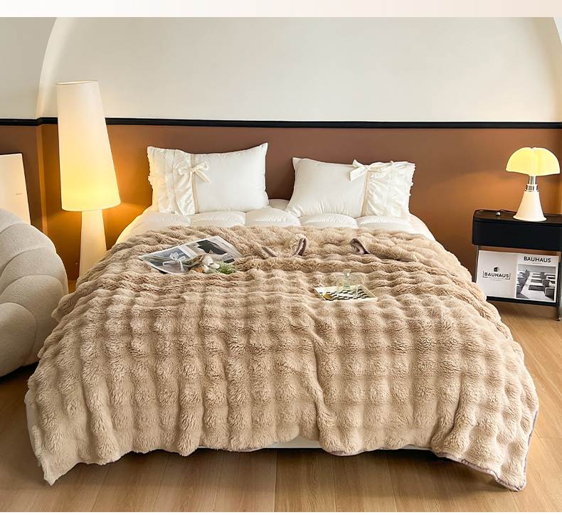 妖妖家纺 2025新款600克双面大兔毛雕花纯色毛毯 奶芙咖