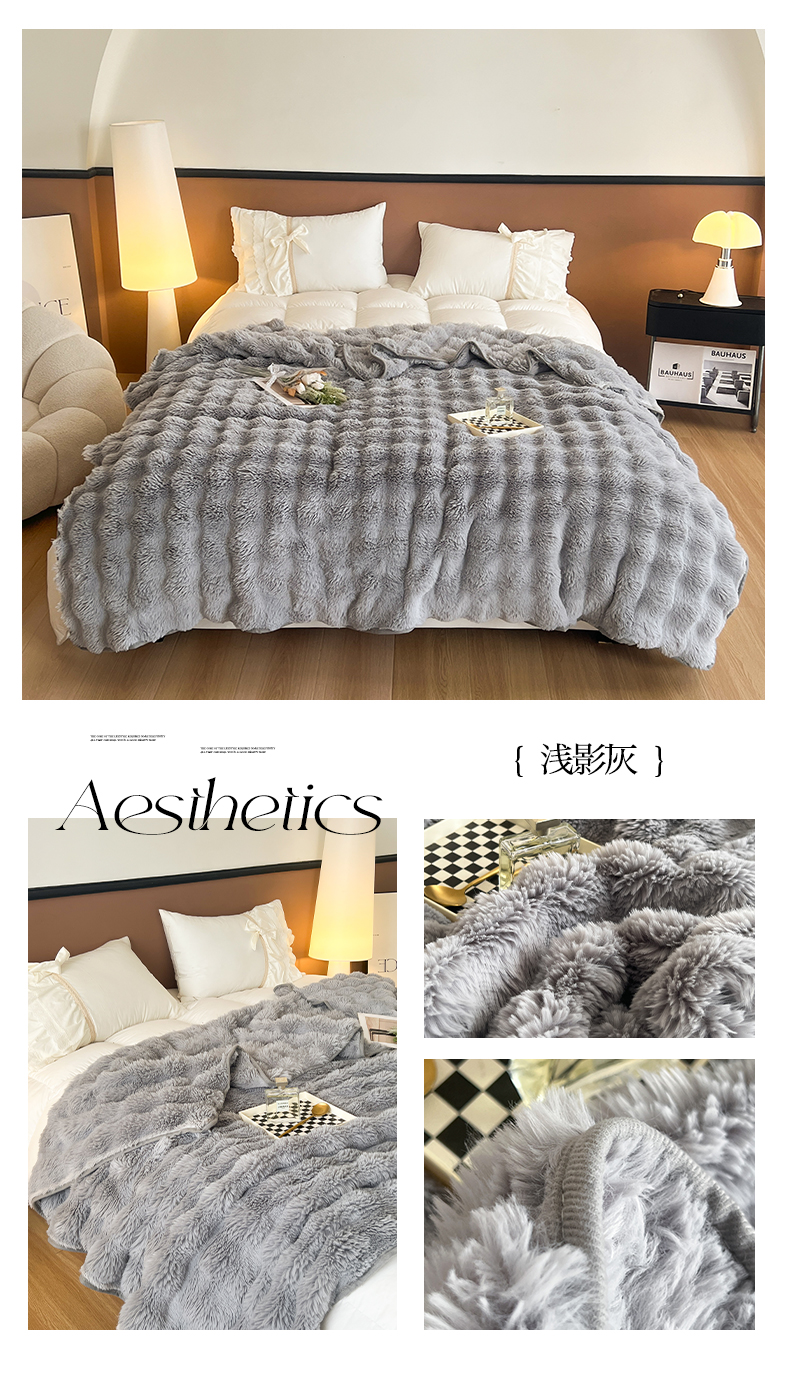 (总)妖妖家纺 2025新款600克双面大兔毛雕花纯色毛毯,浅影灰,黄阳绿,晶糖紫,蜜桃粉,奶芙咖,奶油白