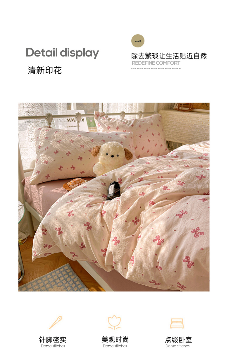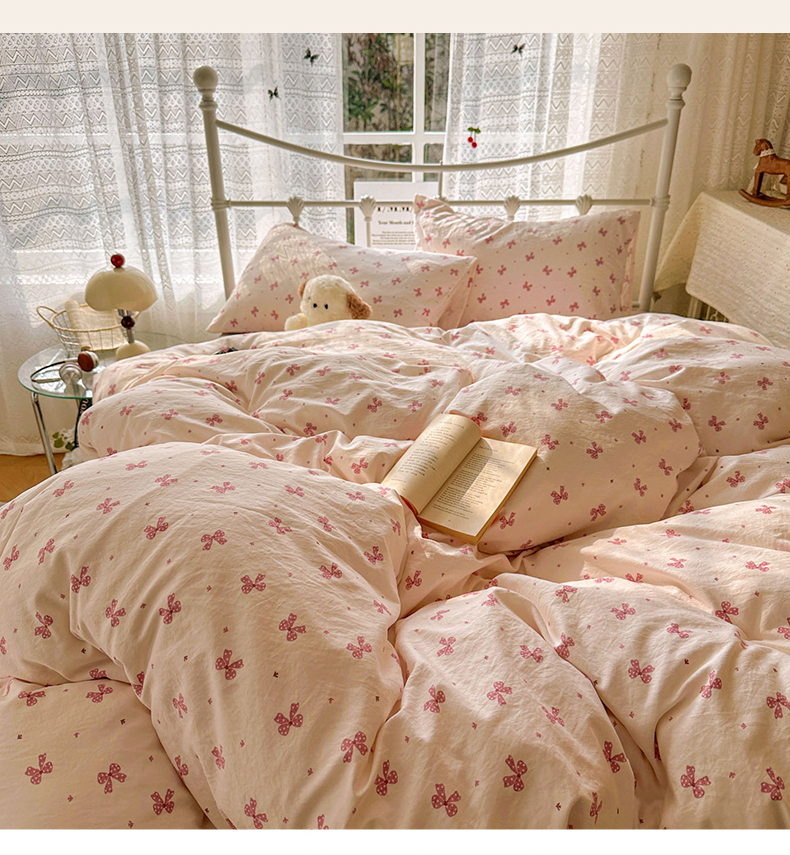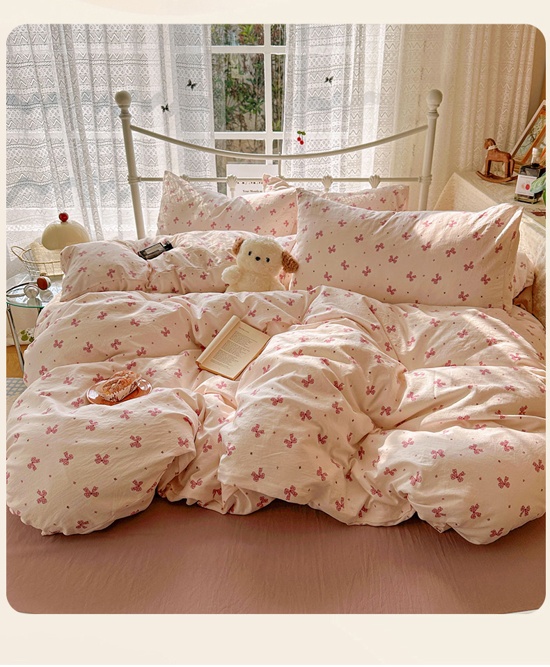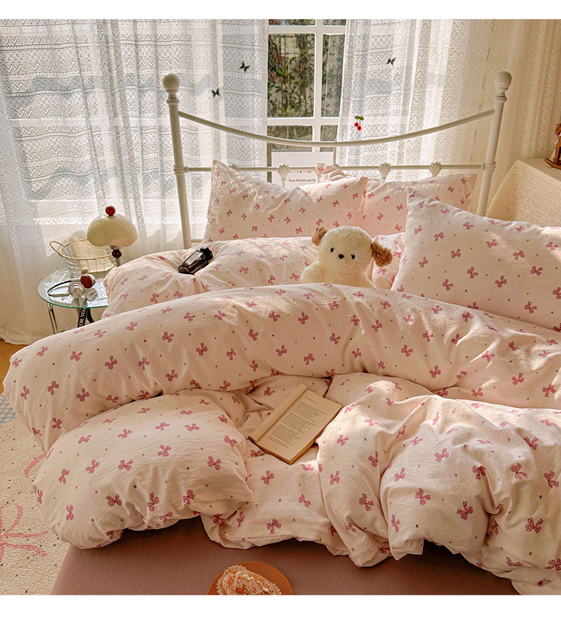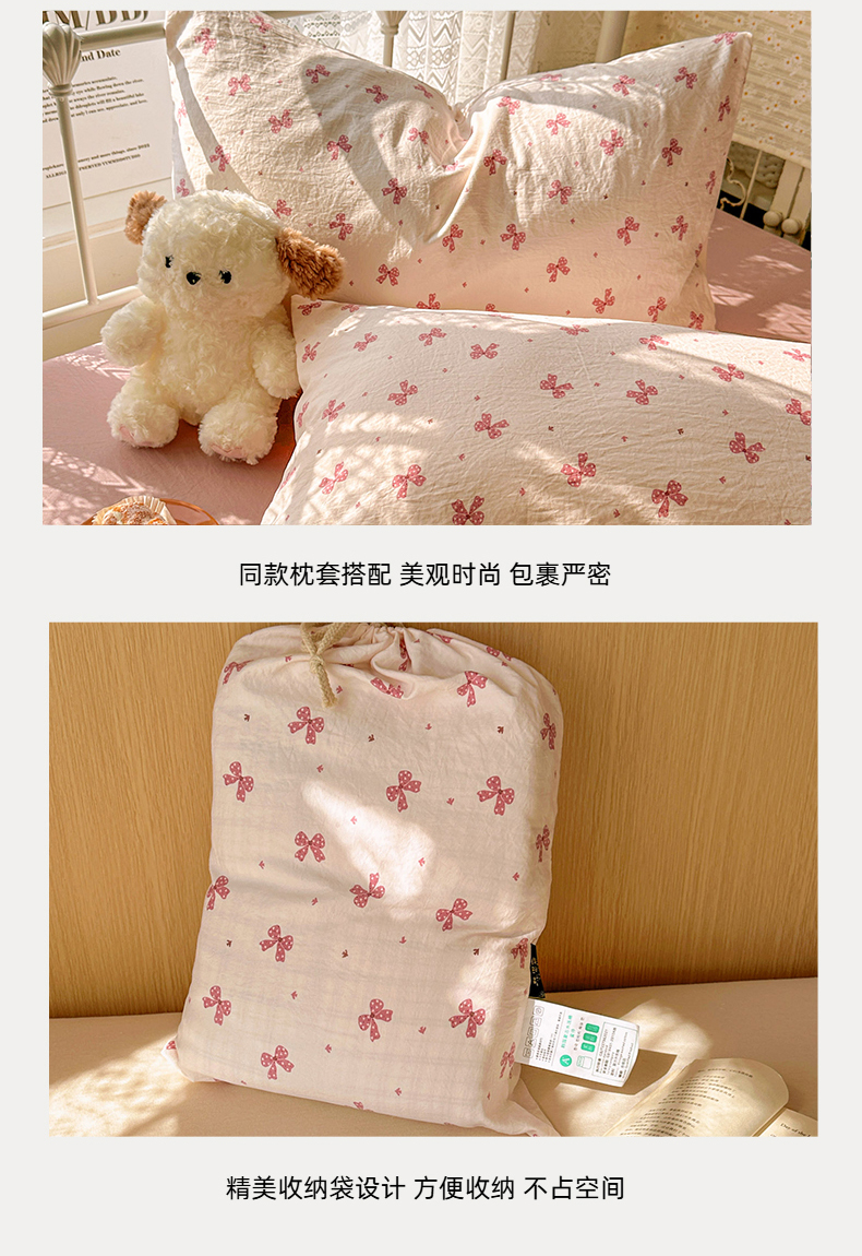 当前位置: 91家纺网 > 商品网购 > 床品套件 > 四件套 > 水洗棉四件套 > 暖芯优选 2025新款加厚爆款小布袋韩国古法水洗棉床单学生三件套床笠款四件套 蝴蝶结-黛粉