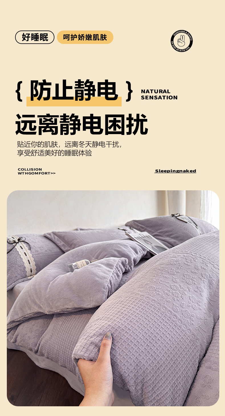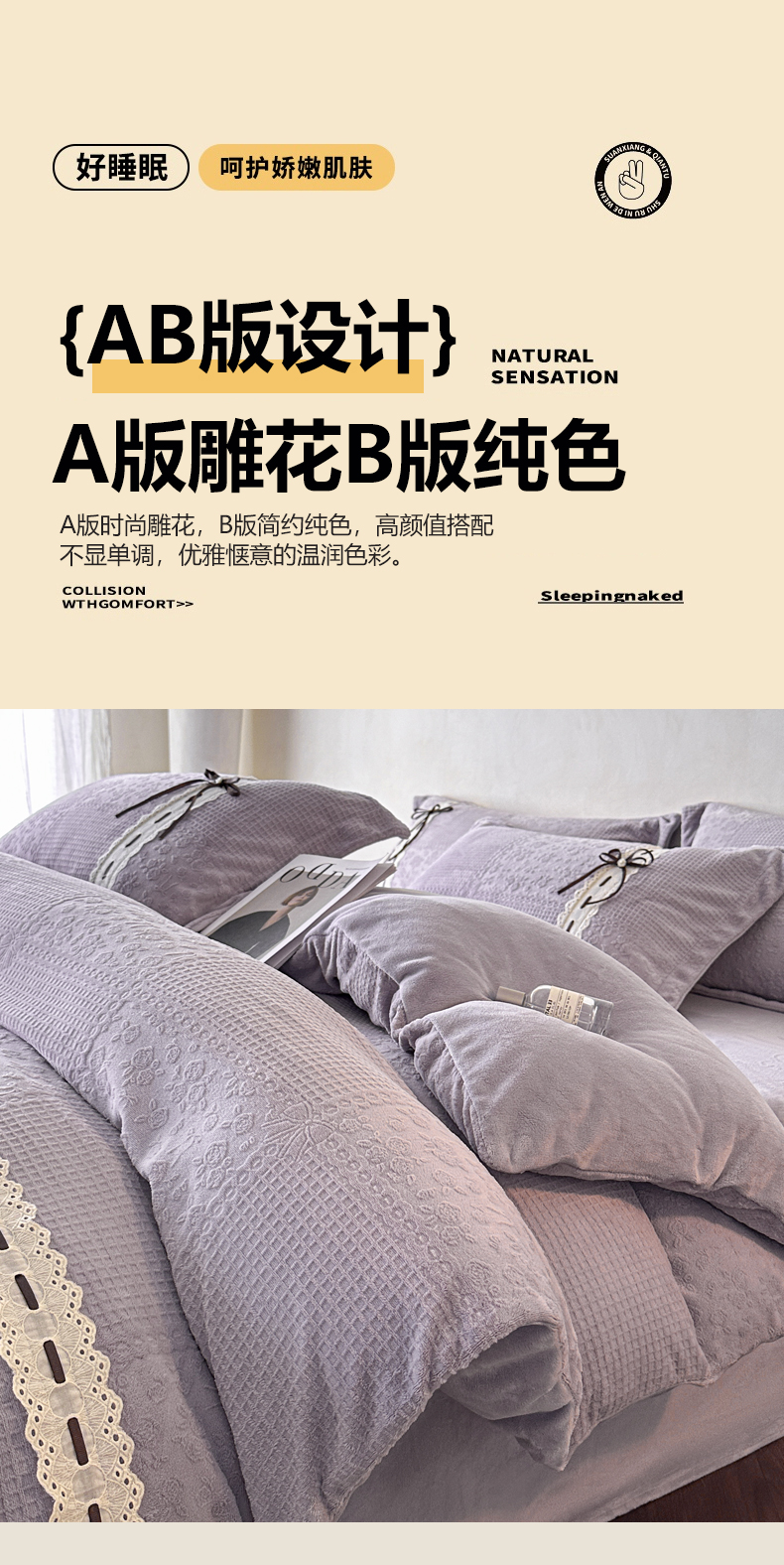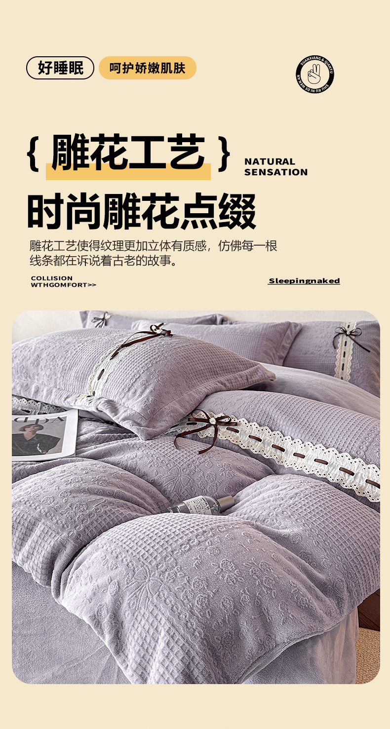 (总)叠派家纺 2025新款高克重高端牛奶绒雕花织带工艺款梦巢系列四件套(直播热款)提供买家秀,梦巢-星空蓝,梦巢-金典灰,梦巢-麦卡其,梦巢-玉粉,送精美手提包装