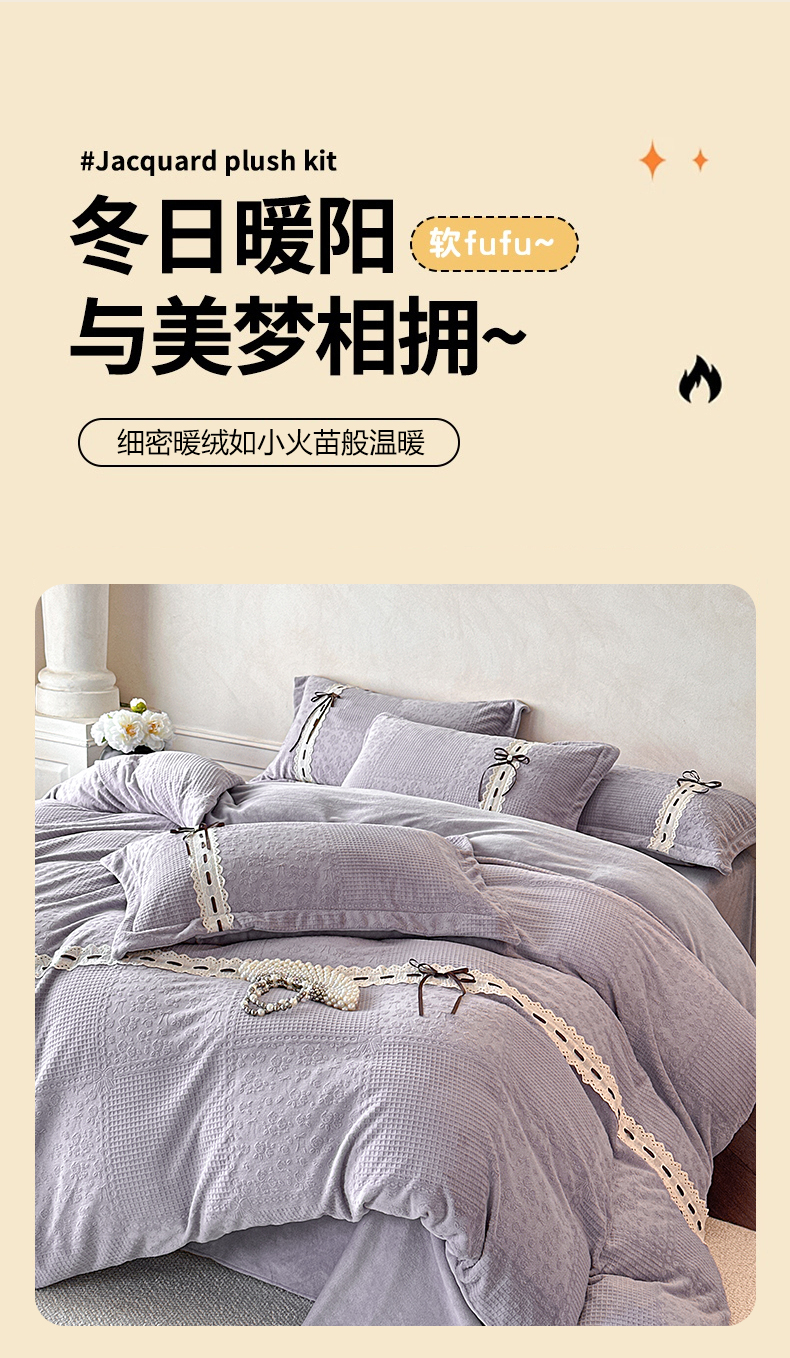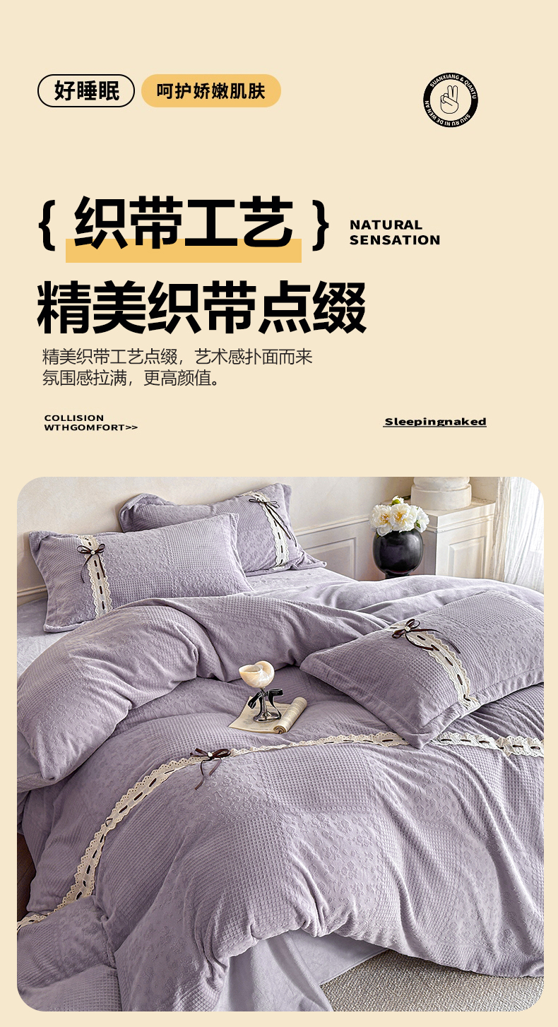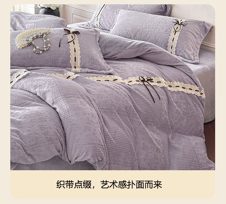 叠派家纺 2025新款高端雕花公主风蝴蝶结工艺款四件套绿野仙踪系列(直播热款)提供买家秀 绿野仙踪-烟紫
