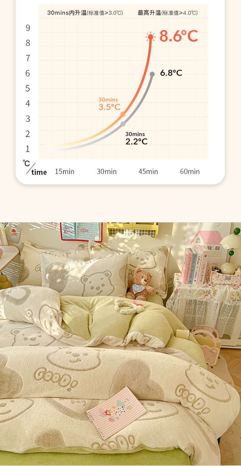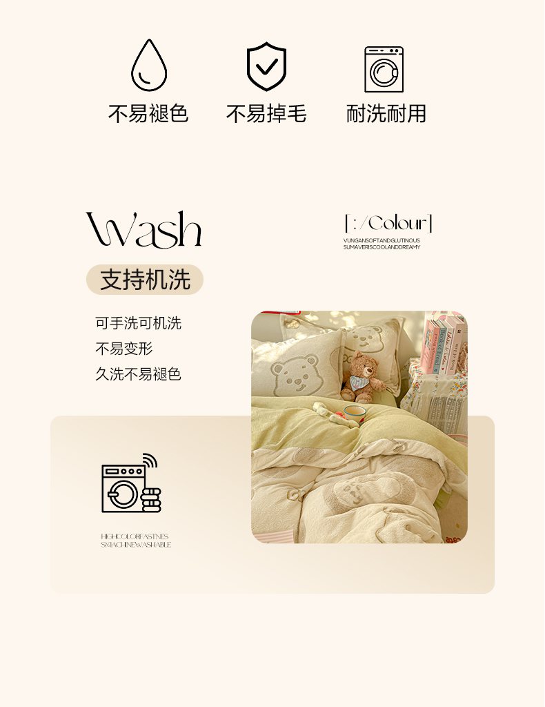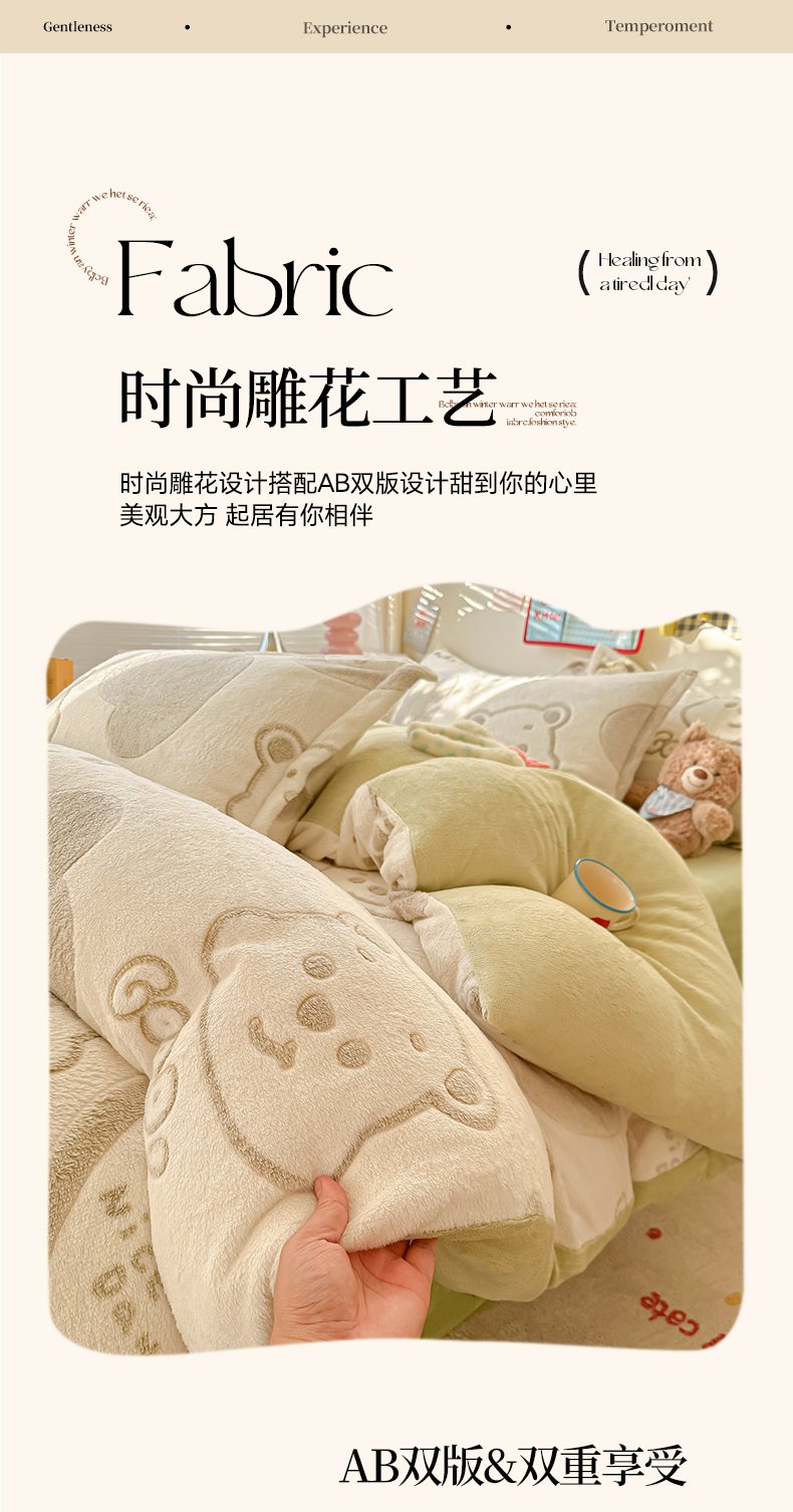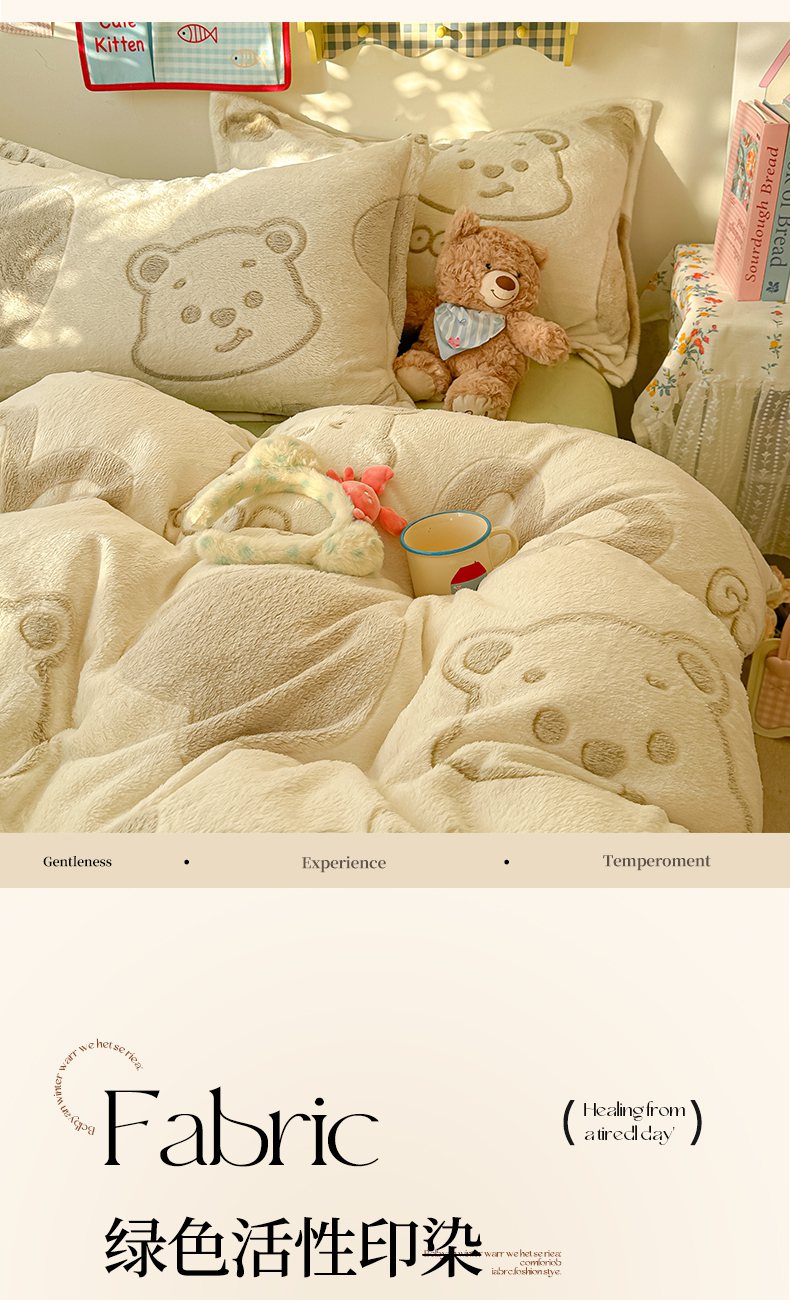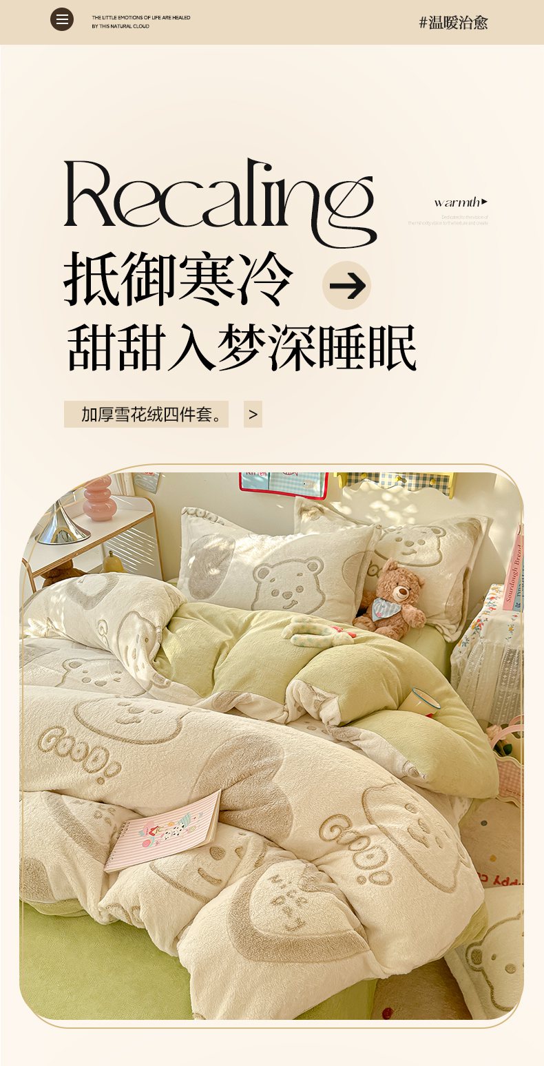 当前位置: 91家纺网 > 商品网购 > 床品套件 > 四件套 > 牛奶绒四件套 > 韩巢家纺 2025新款高克重雪花绒牛奶绒四件套系列 爱心熊(绿)