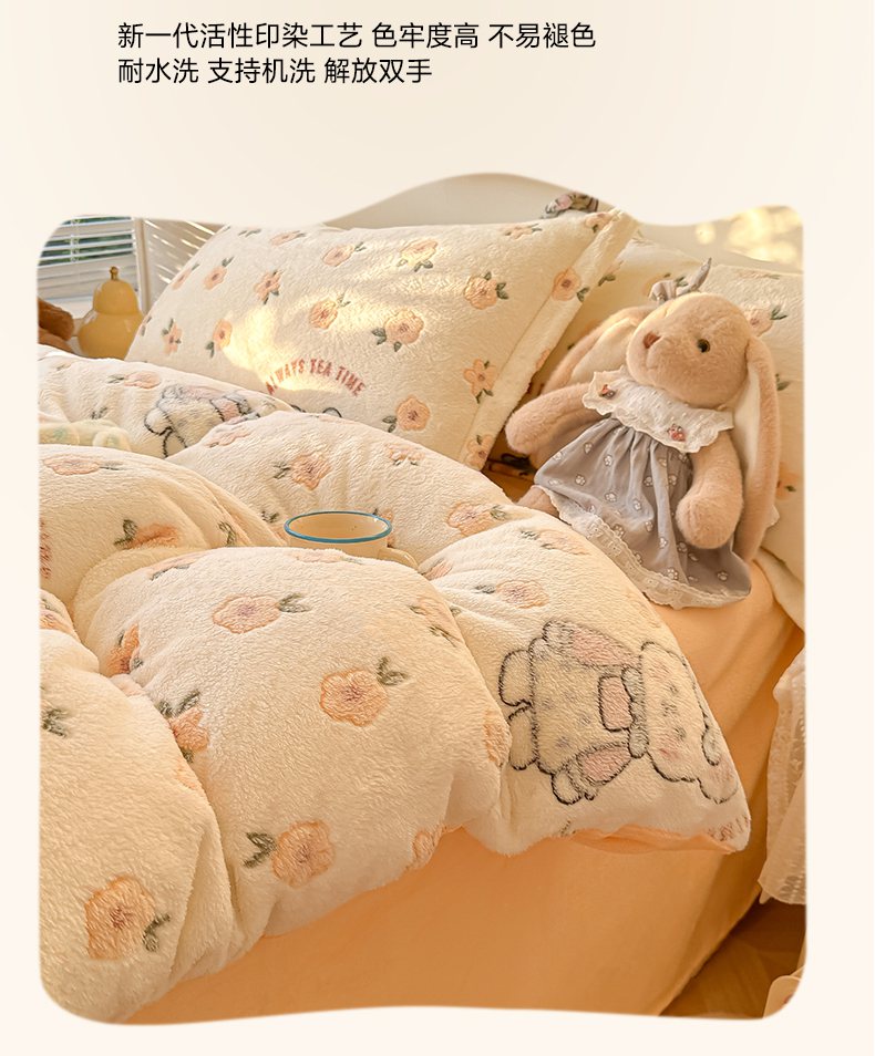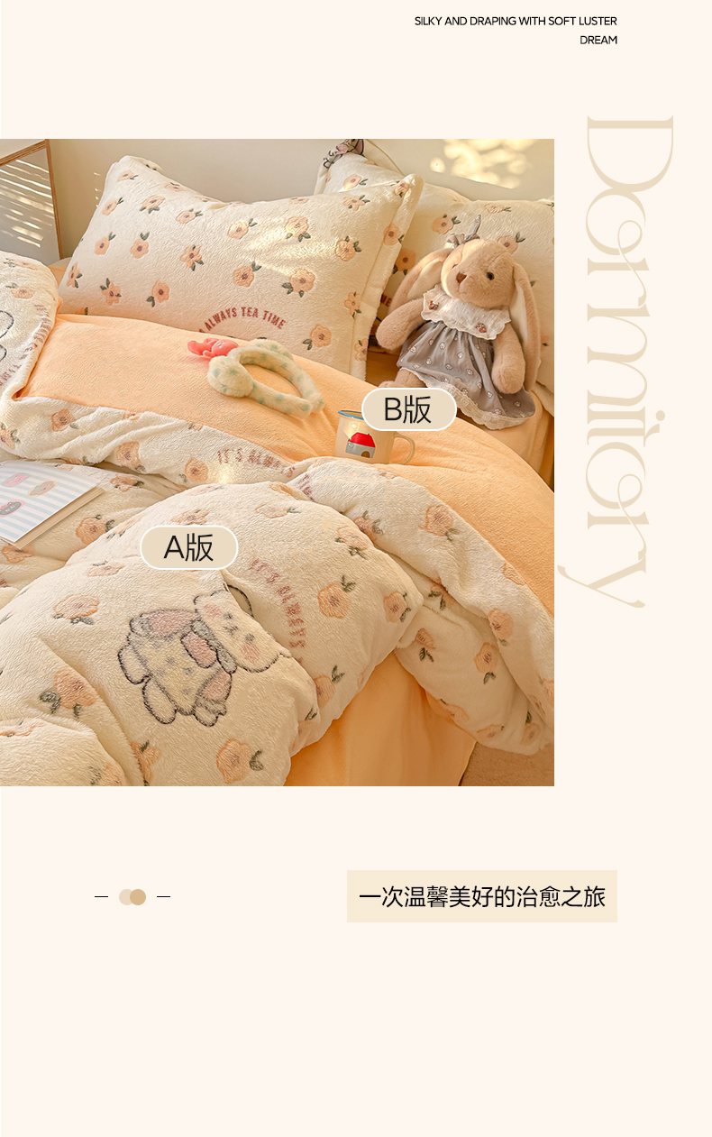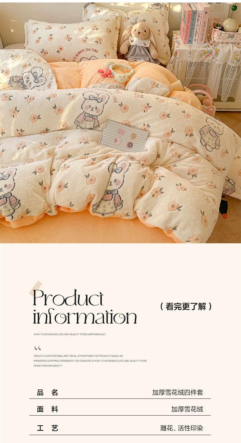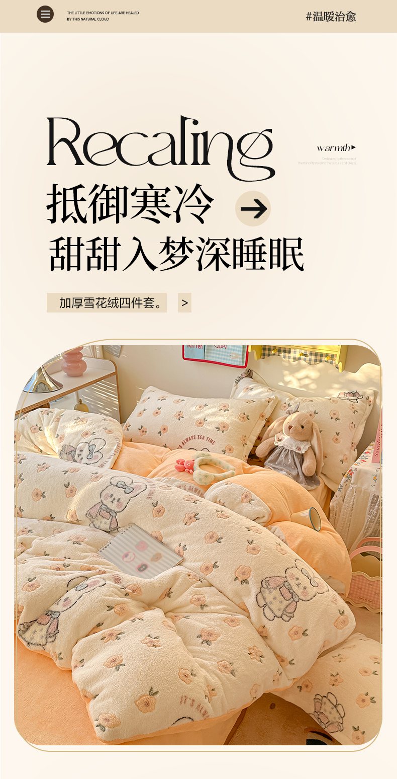 当前位置: 91家纺网 > 商品网购 > 床品套件 > 四件套 > 牛奶绒四件套 > 韩巢家纺 2025新款高克重雪花绒牛奶绒四件套系列 田园兔(黄)