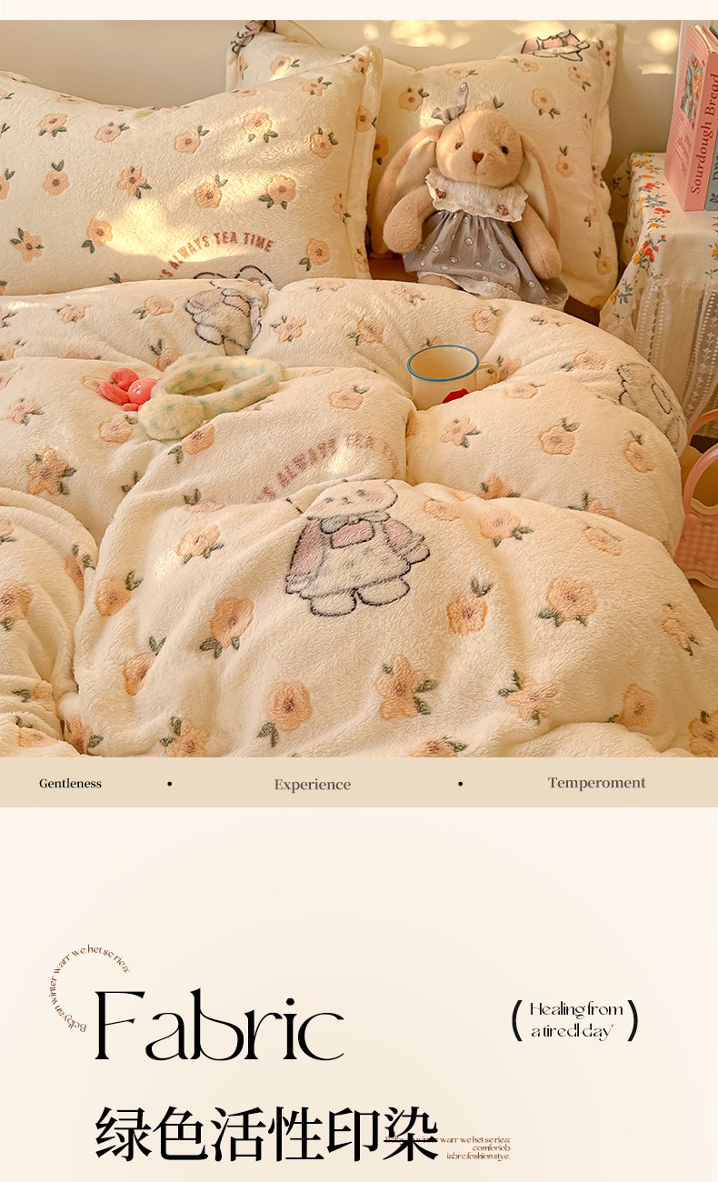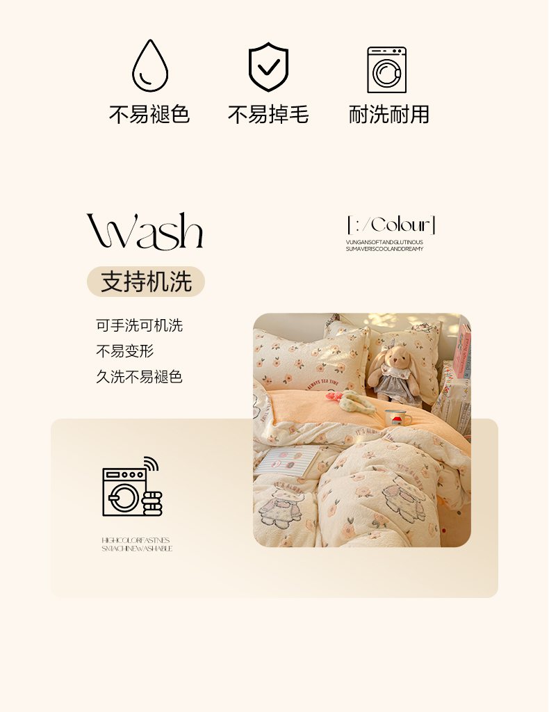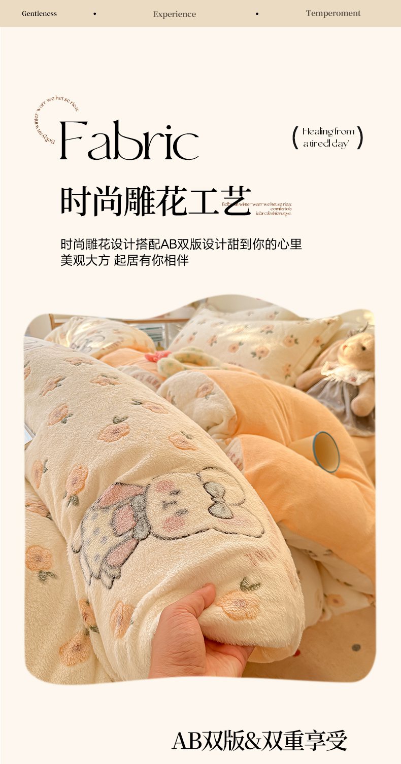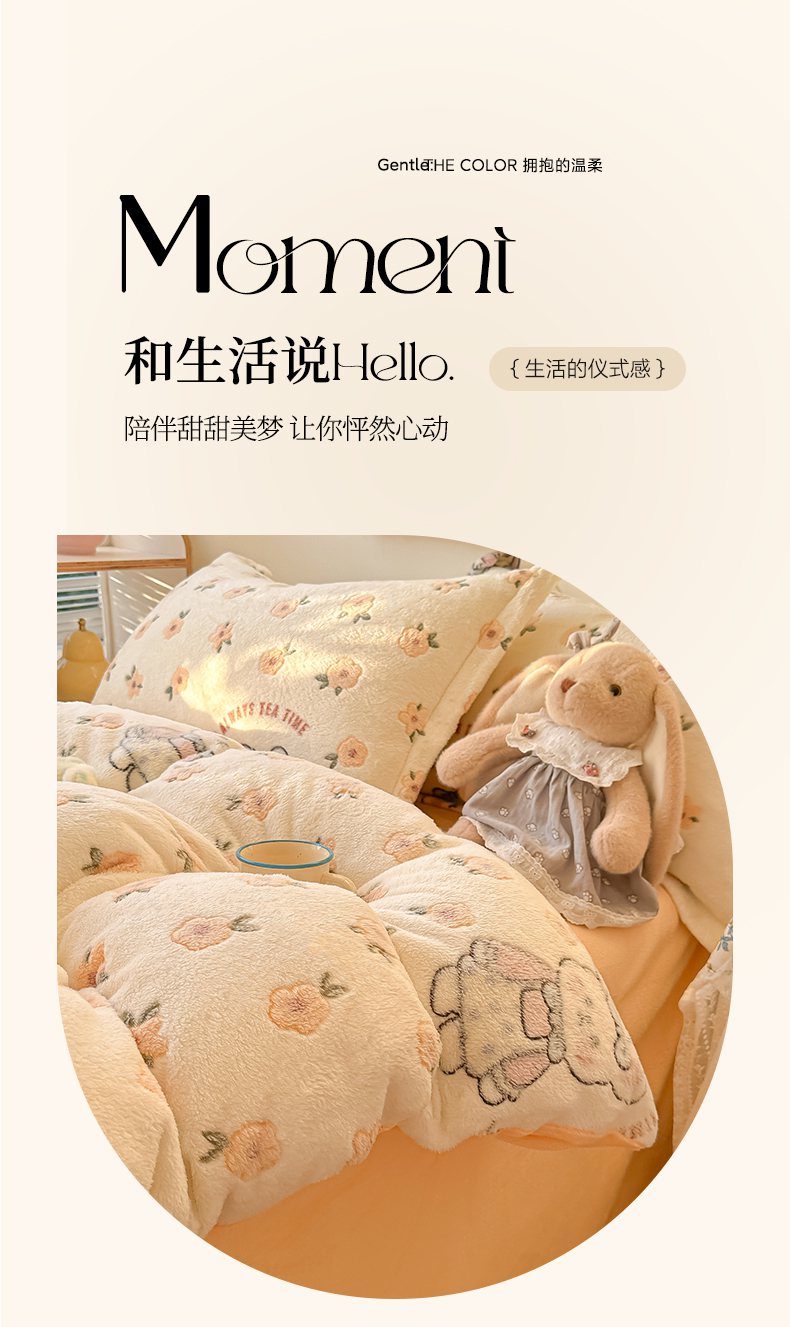 当前位置: 91家纺网 > 商品网购 > 床品套件 > 四件套 > 牛奶绒四件套 > 韩巢家纺 2025新款高克重雪花绒牛奶绒四件套系列 田园兔(黄)