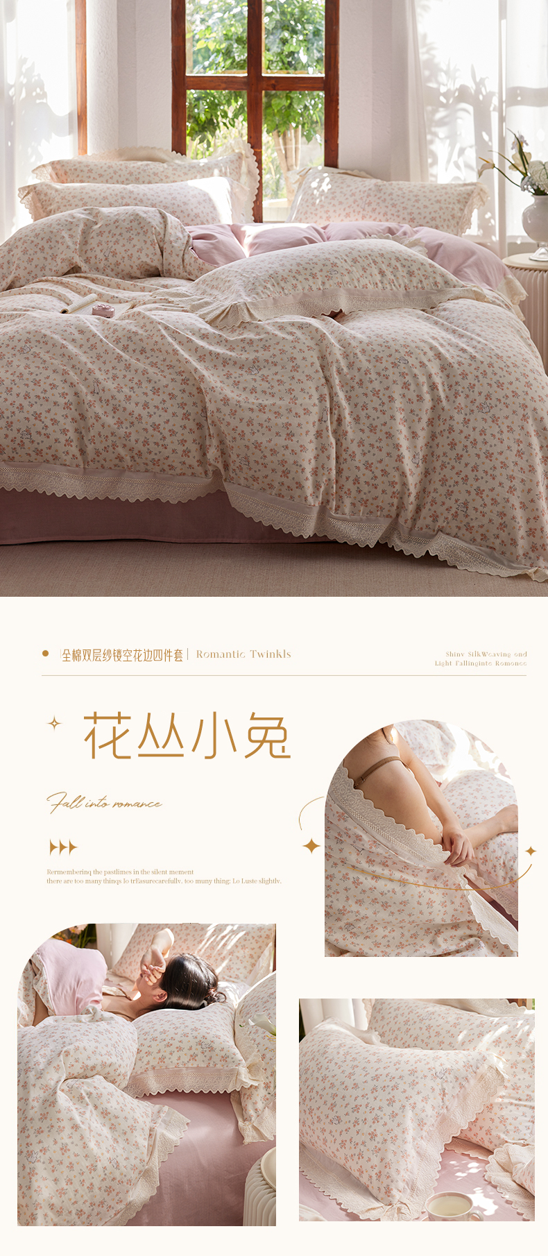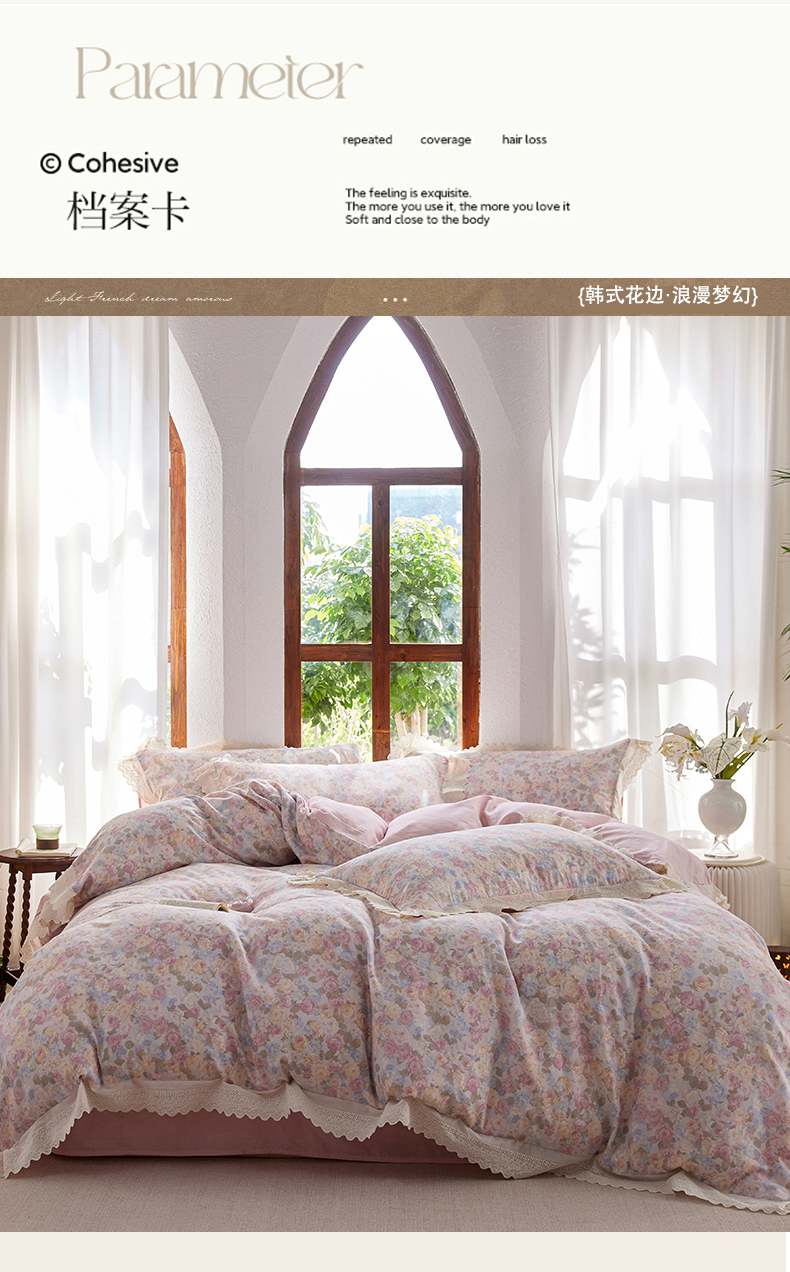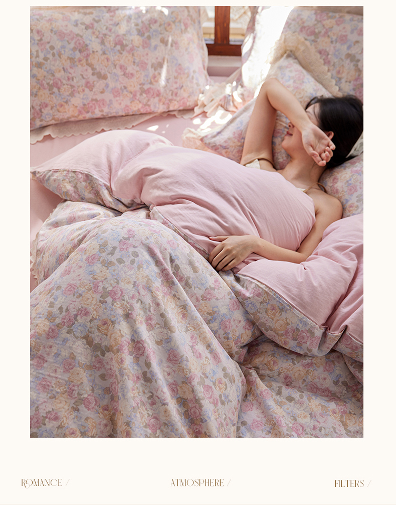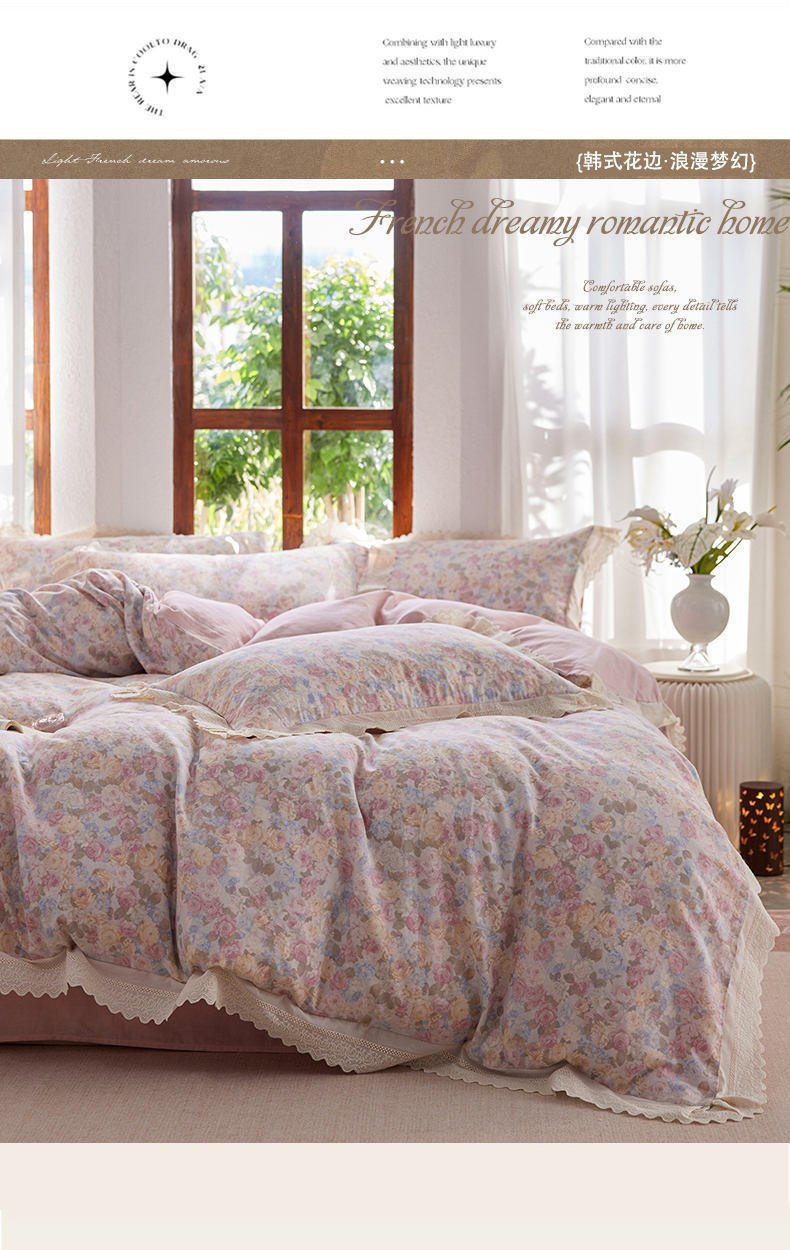 当前位置: 91家纺网 > 商品网购 > 床品套件 > 四件套 > 全棉普通四件套 > 梵克保罗 2026春夏新品韩版全棉纯棉双层纱镂空花边系列四件套 半岛花园-粉