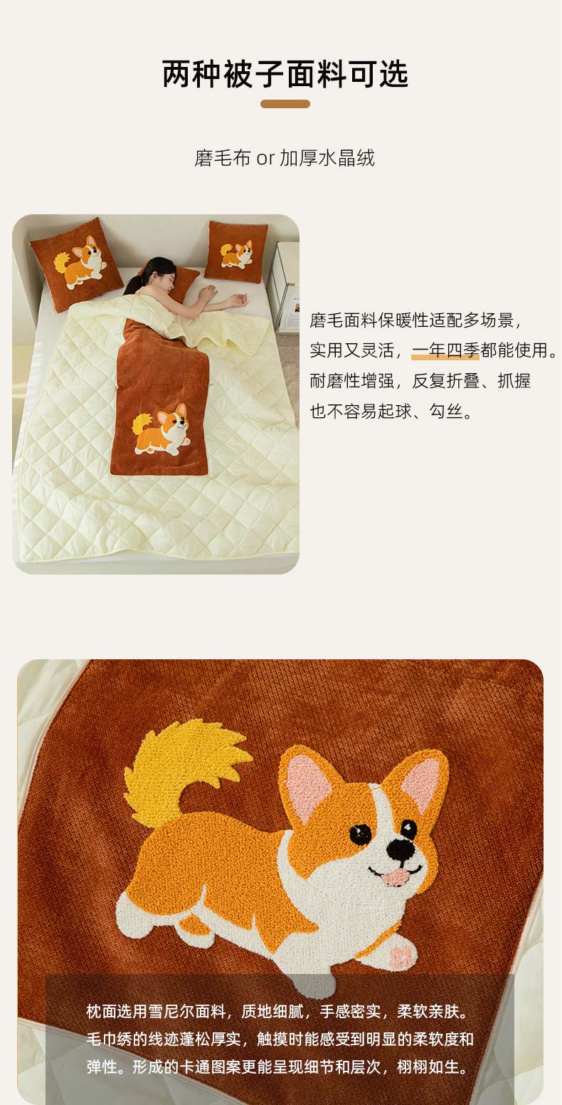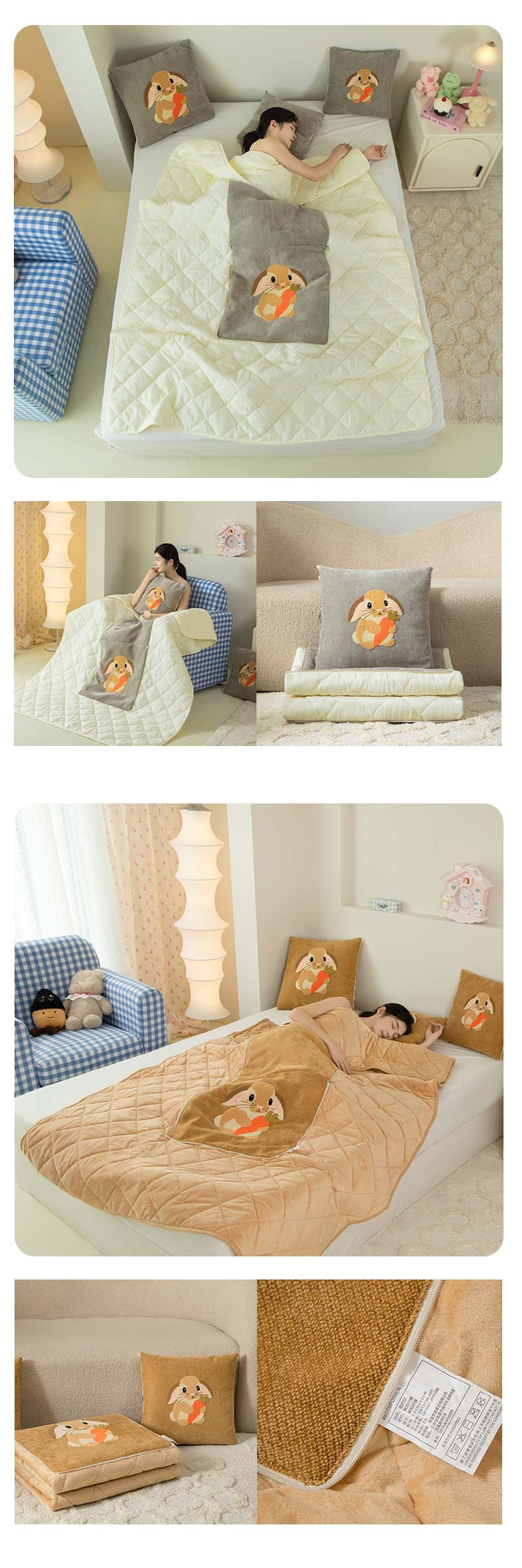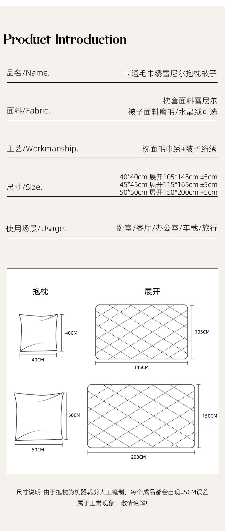 商品名称:(总)新奇异 2025新款卡通毛巾绣抱枕被-冬季加厚水晶绒款可爱狗+萝卜兔系列