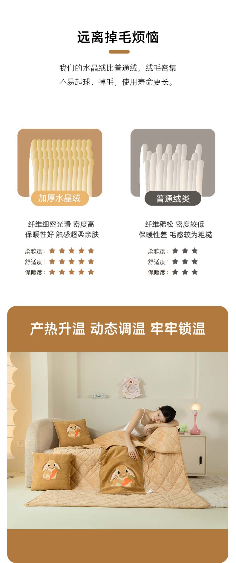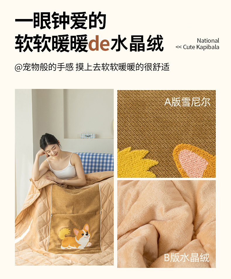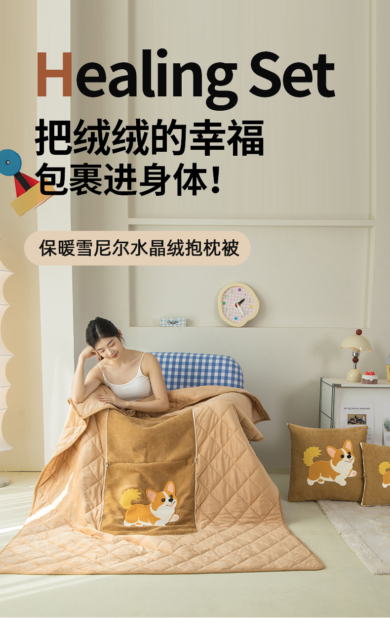 商品名称:(总)新奇异 2025新款卡通毛巾绣抱枕被-冬季加厚水晶绒款可爱狗+萝卜兔系列