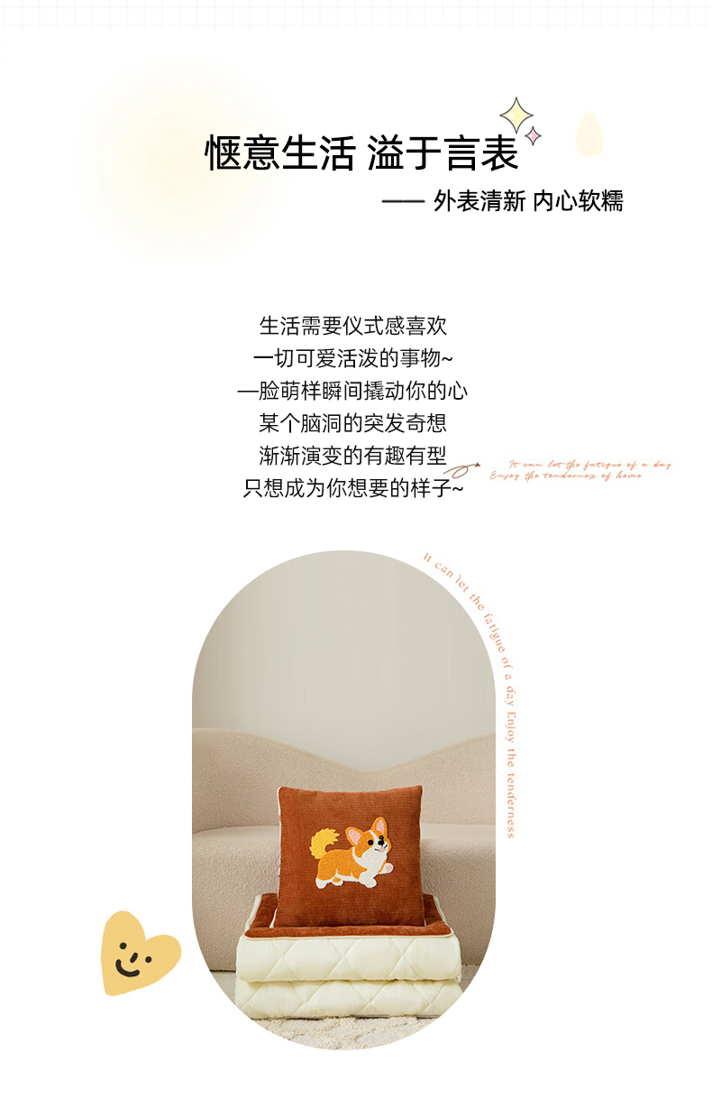 商品名称:新奇异 2025新款卡通毛巾绣抱枕被-四季通用磨毛款可爱狗+萝卜兔系列 可爱狗-米色四季款