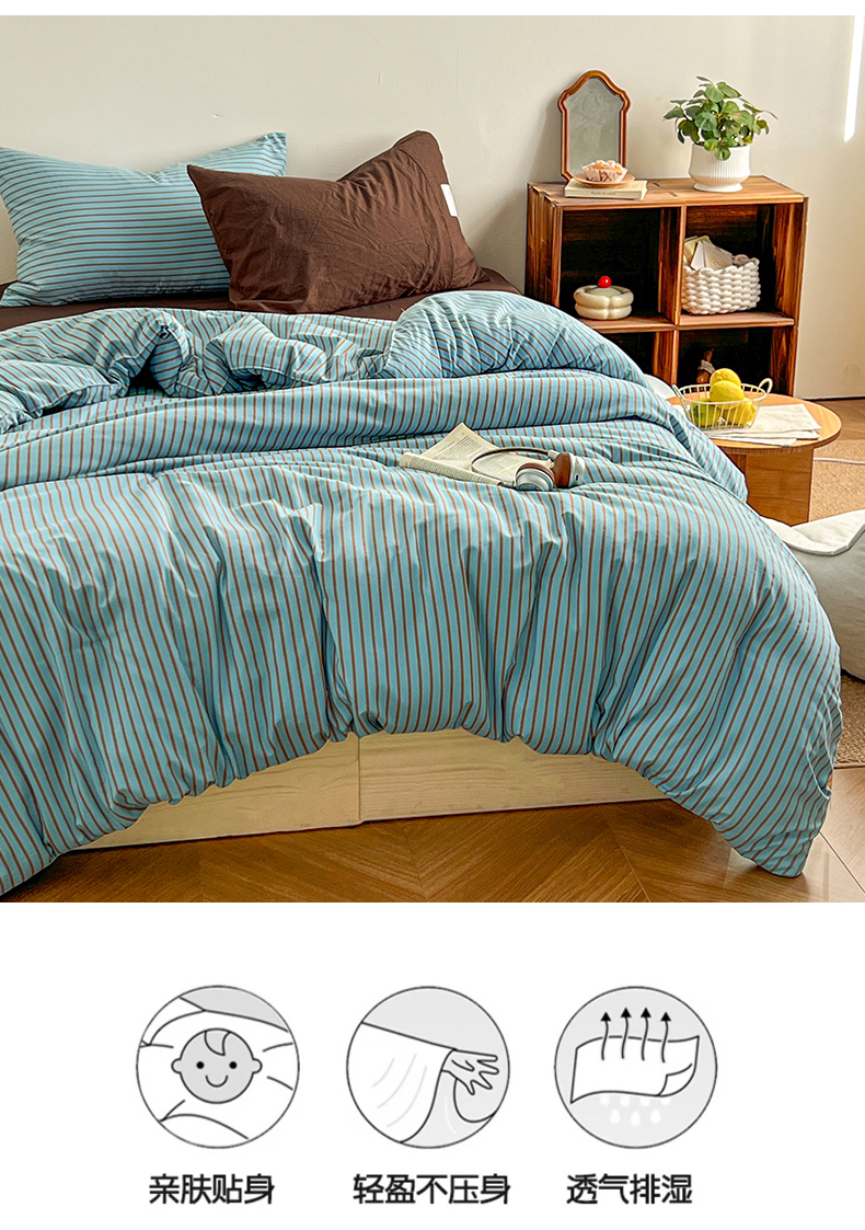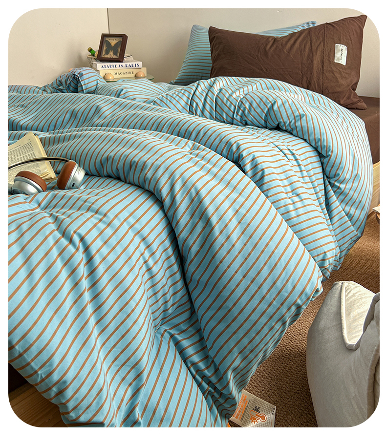 (总)优选良品 2025新款韩式无印风水洗棉拼色学生三件套床单床笠款四件套,条纹卡其+深红,条纹水蓝+咖啡,条纹香芋紫+深紫,条纹抹茶绿+酱紫,条纹海洋蓝+深蓝,组合,条纹柠檬黄+咖啡