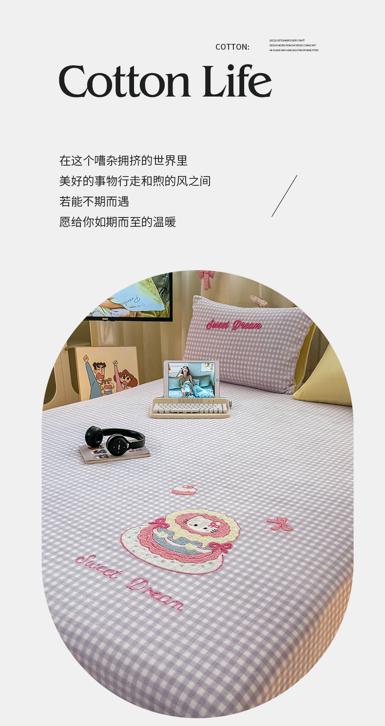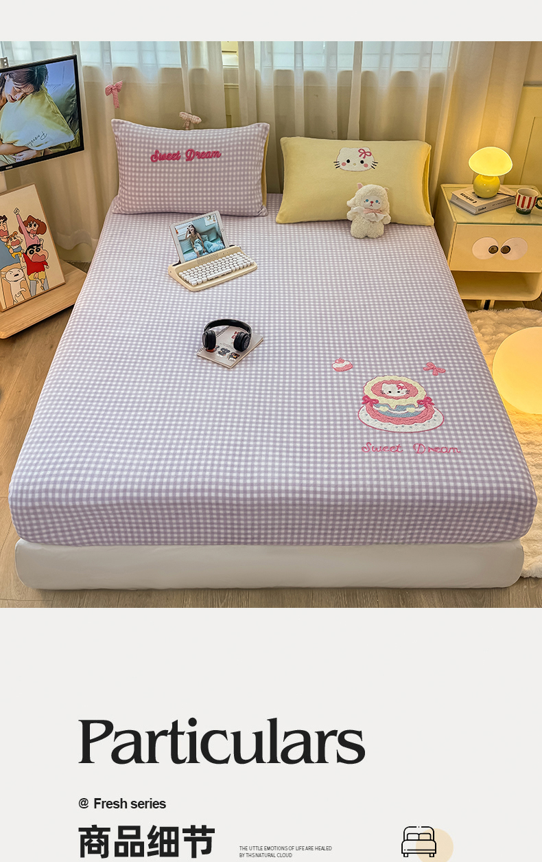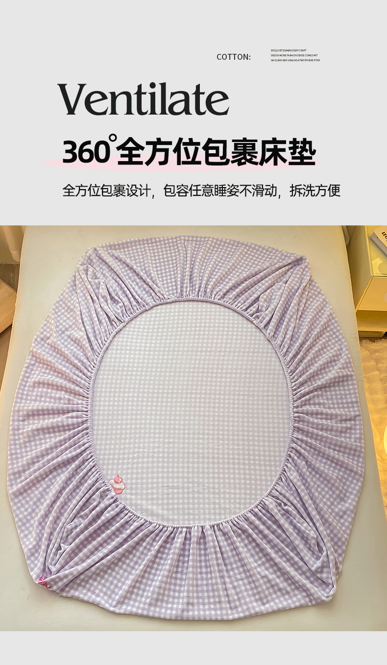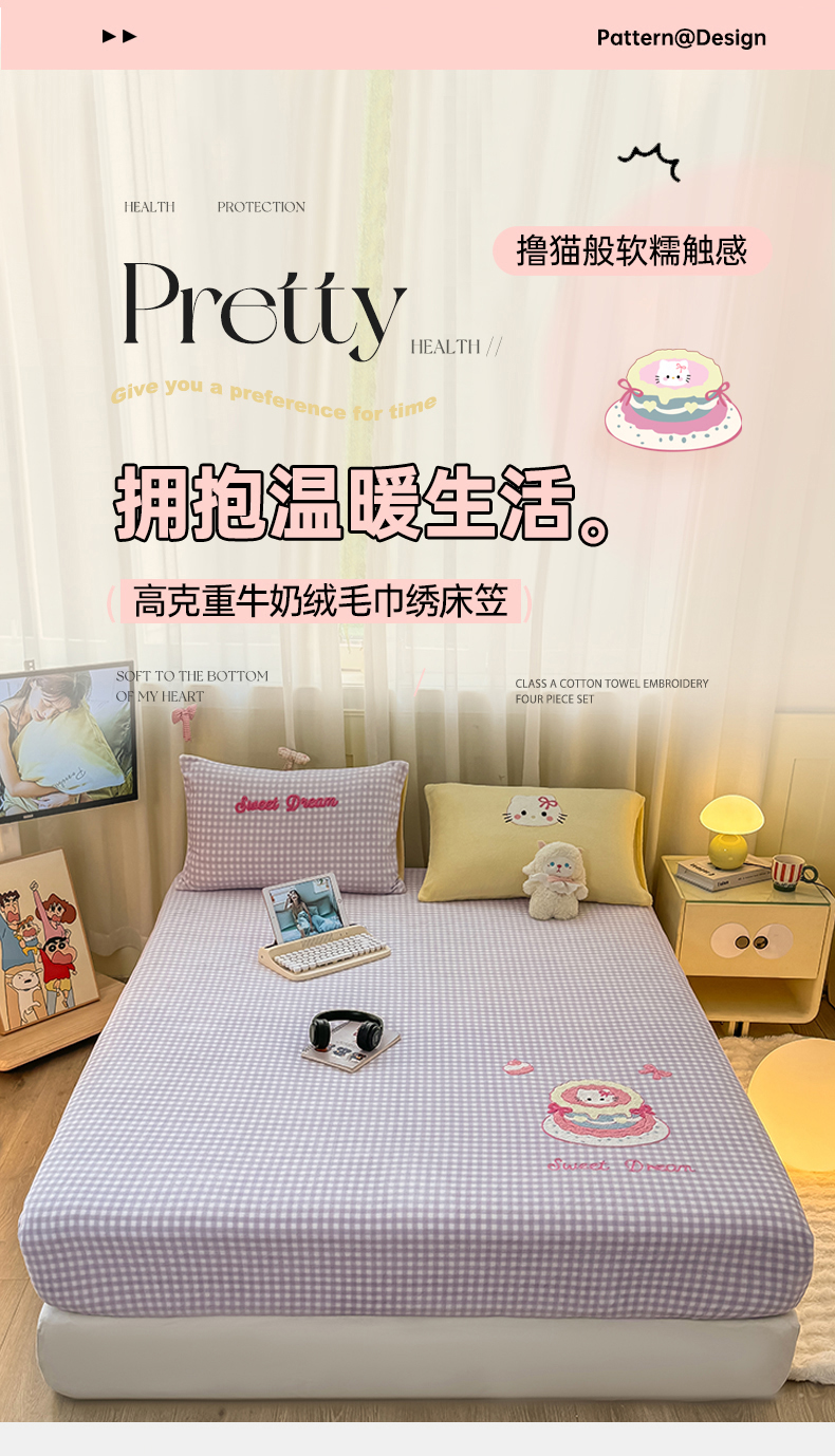 • 91家纺网 家纺一手货源 找家纺 灰鲸 2025新款高克重牛奶绒毛巾绣床笠单床笠单品床笠床笠单件 紫格蛋糕喵