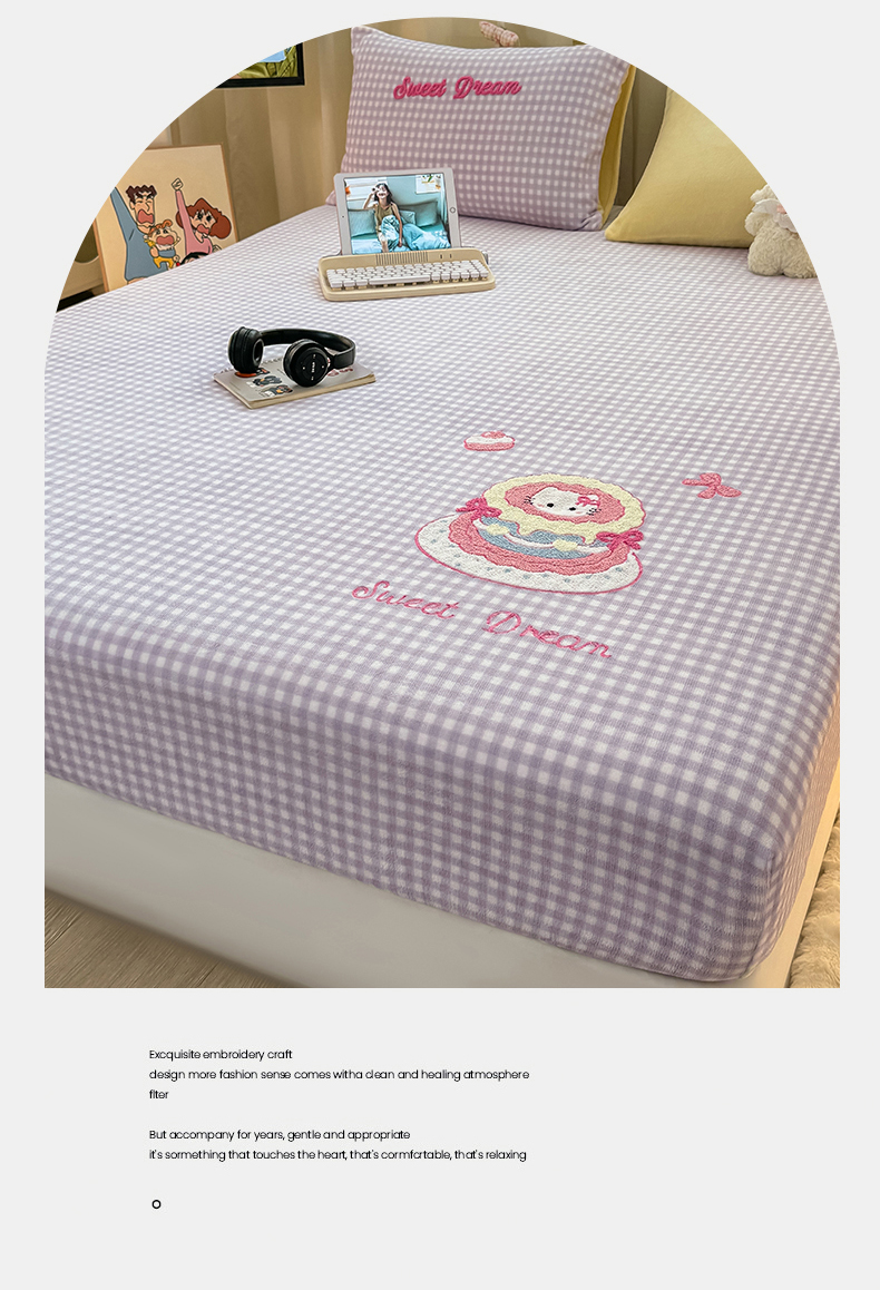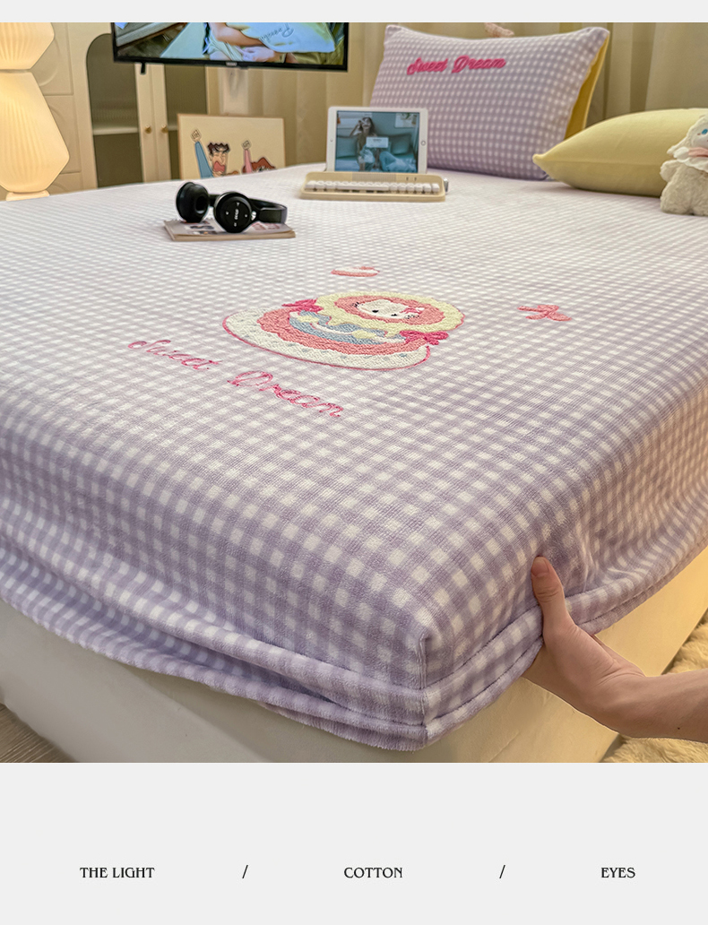 灰鲸 2025新款高克重牛奶绒毛巾绣床笠单床笠单品床笠床笠单件 紫格蛋糕喵