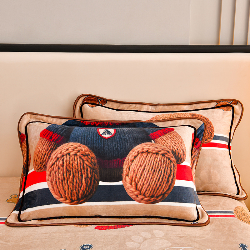 商品名称: 妮恒美 2025新款牛奶绒印花床裙款四件套法莱绒四件套珊瑚金貂绒四件套 酷酷熊