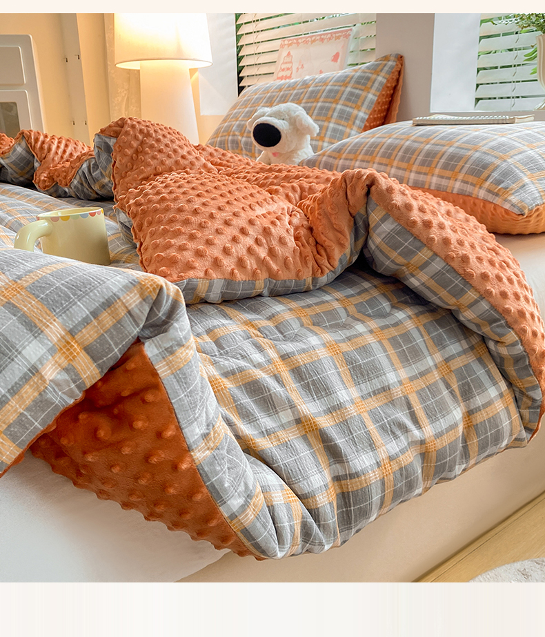 (总)宝士康家纺 2025新款豆豆绒木棉冬被/被芯/跨境/外贸,豆豆-灰黄格,豆豆-粉黄格,豆豆-蓝橙格,豆豆-蓝灰格,豆豆-绿粉格,豆豆-紫粉格