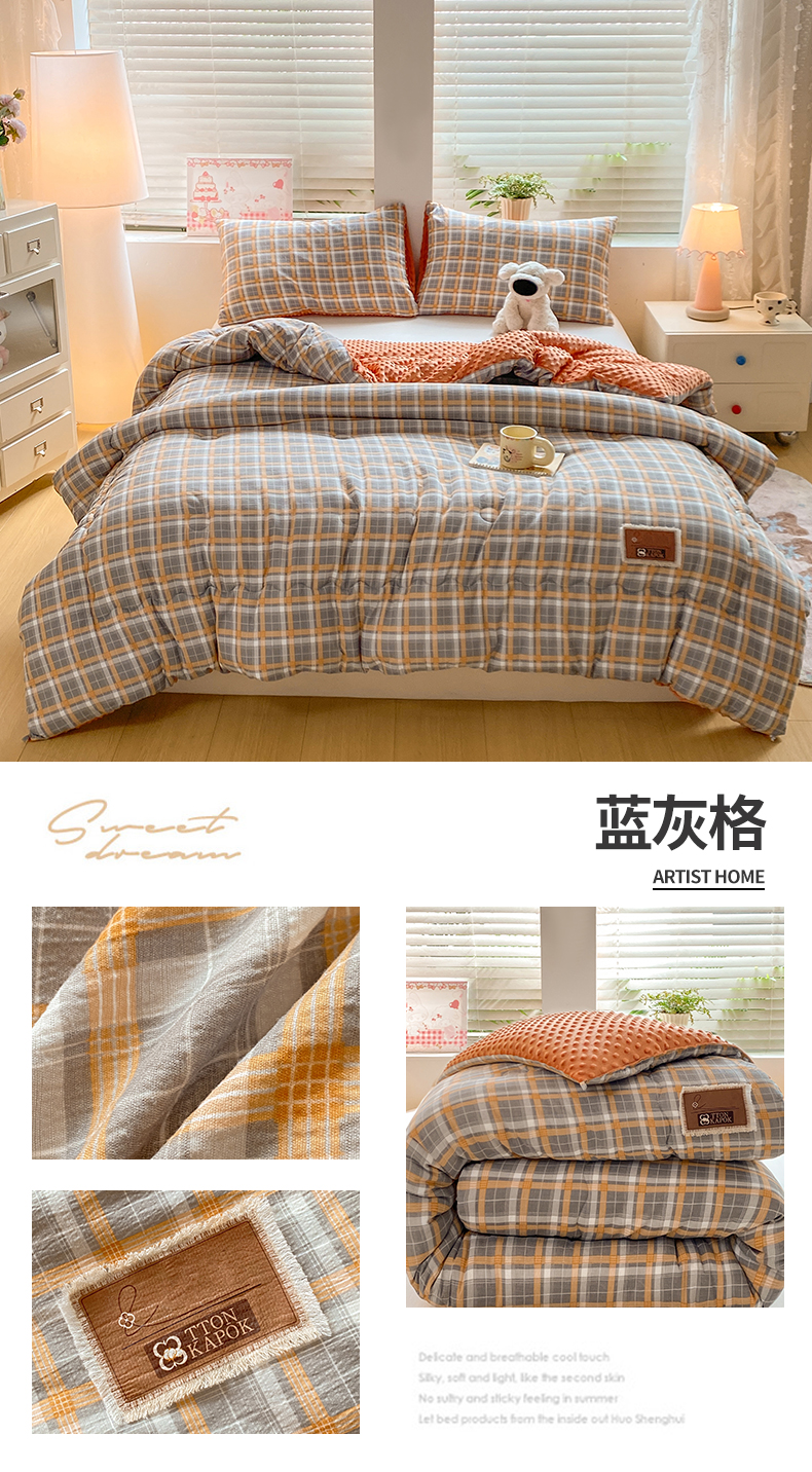 • 91家纺网 家纺一手货源 找家纺 (总)宝士康家纺 2025新款豆豆绒木棉冬被/被芯/跨境/外贸,豆豆-灰黄格,豆豆-粉黄格,豆豆-蓝橙格,豆豆-蓝灰格,豆豆-绿粉格,豆豆-紫粉格