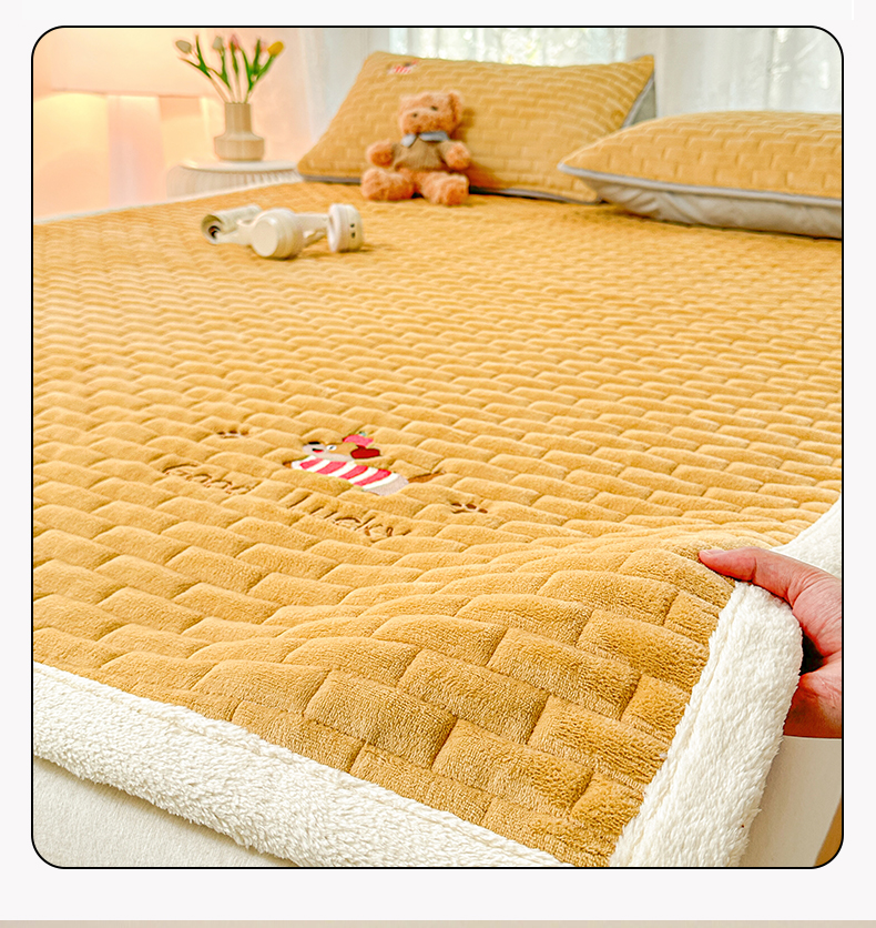 恋绒家纺 2025新款加厚牛奶绒夹棉床褥床护垫床垫 幸运狗-杏黄