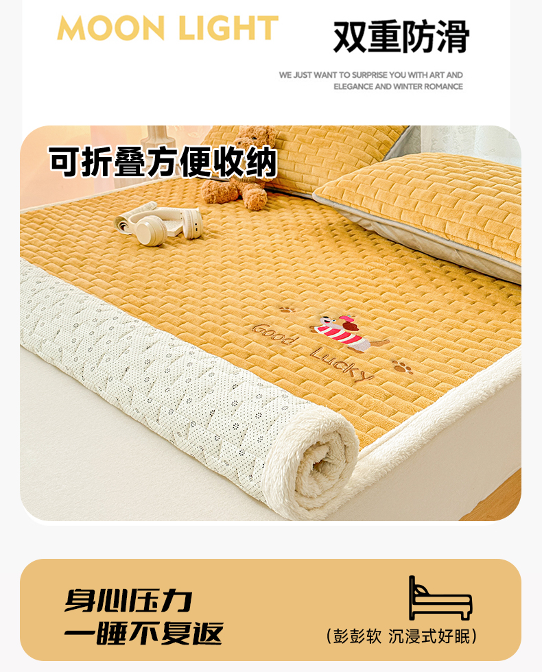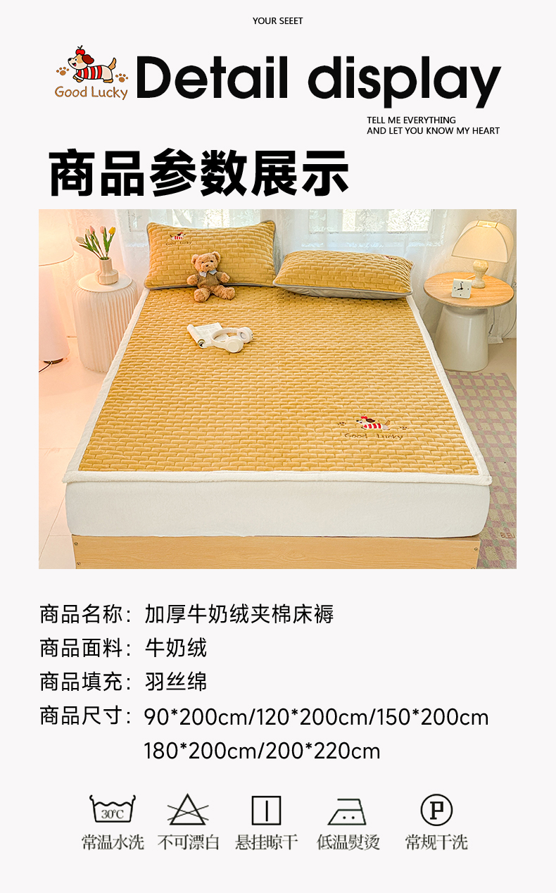商品名称:恋绒家纺 2025新款加厚牛奶绒夹棉床褥床护垫床垫 幸运狗-杏黄
