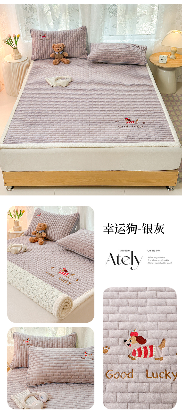 (总)恋绒家纺 2025新款加厚牛奶绒夹棉床褥床护垫床垫,幸运狗-杏黄,幸运狗-浅咖,幸运狗-深灰,幸运狗-香槟,幸运狗-银灰,幸运狗-湛蓝