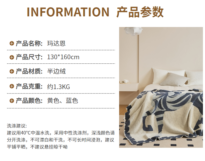 商品名称:暖绵绵家纺 2025新款半边绒毛毯毯子-玛达恩 玛达恩-蓝色