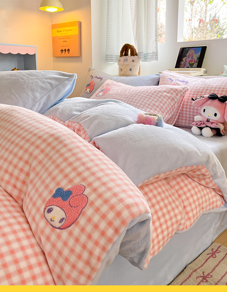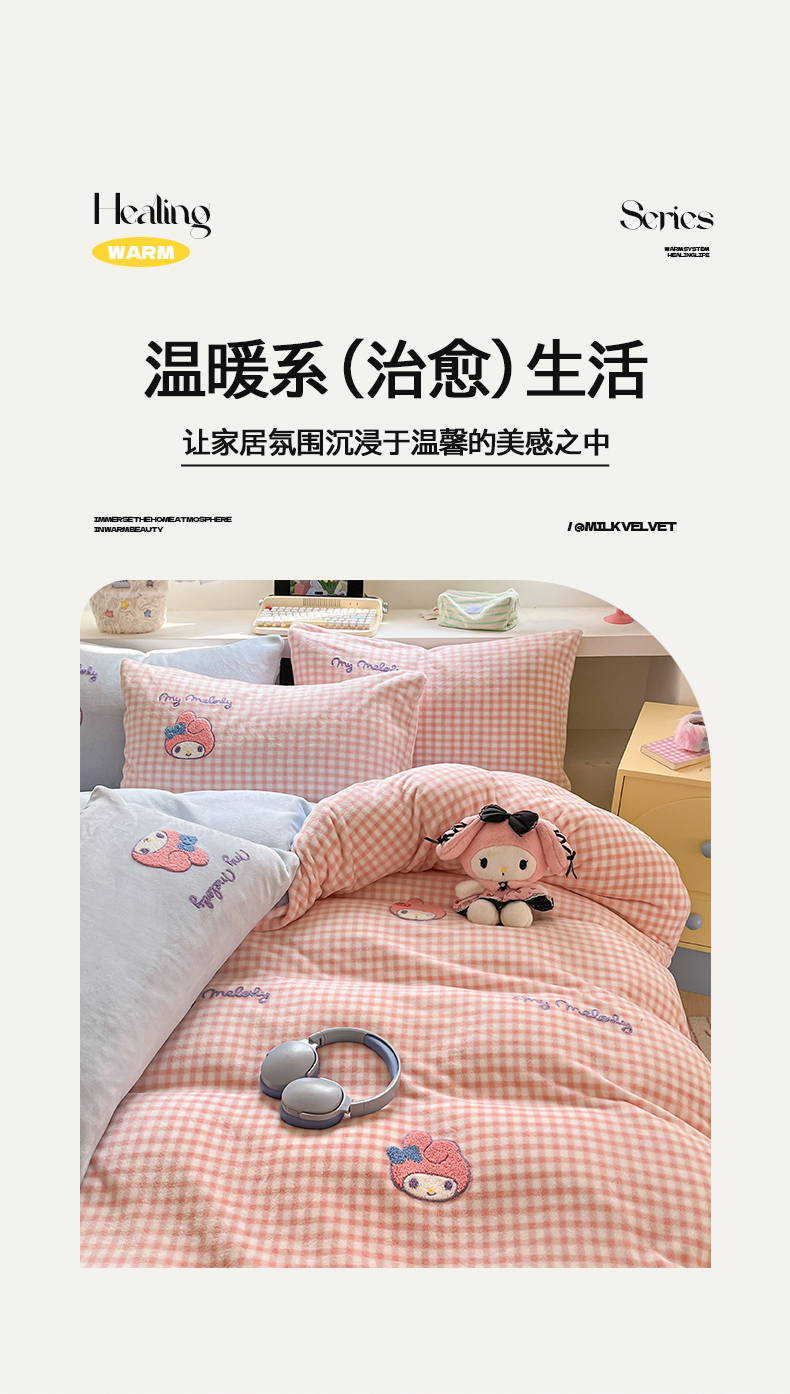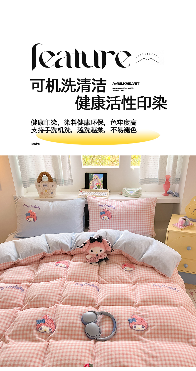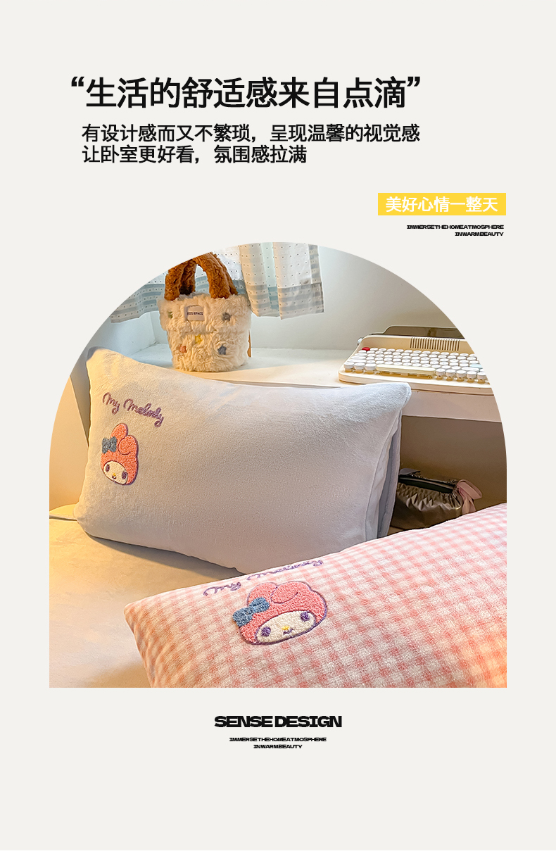 当前位置: 91家纺网 > 商品网购 > 床品套件 > 四件套 > 牛奶绒四件套 > 金爱家 2025新款A类三丽鸥授权毛巾绣混搭少女加厚牛奶绒系列四件套 绒毛巾绣-草莓美乐蒂粉蓝