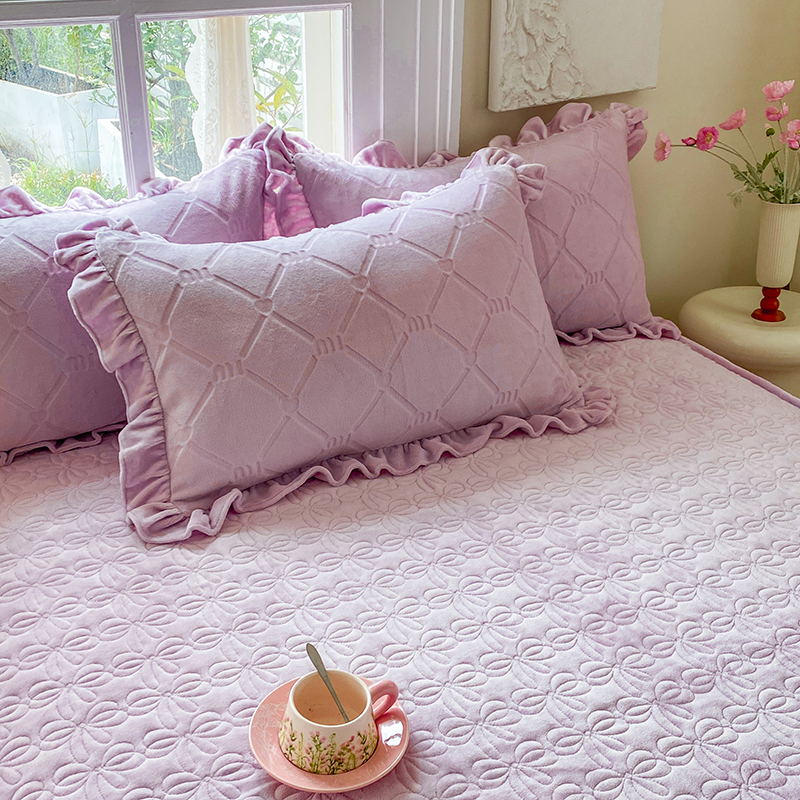 (总)乐嘉盈 2025年新款纯色雕花牛奶绒四件套,粉色
