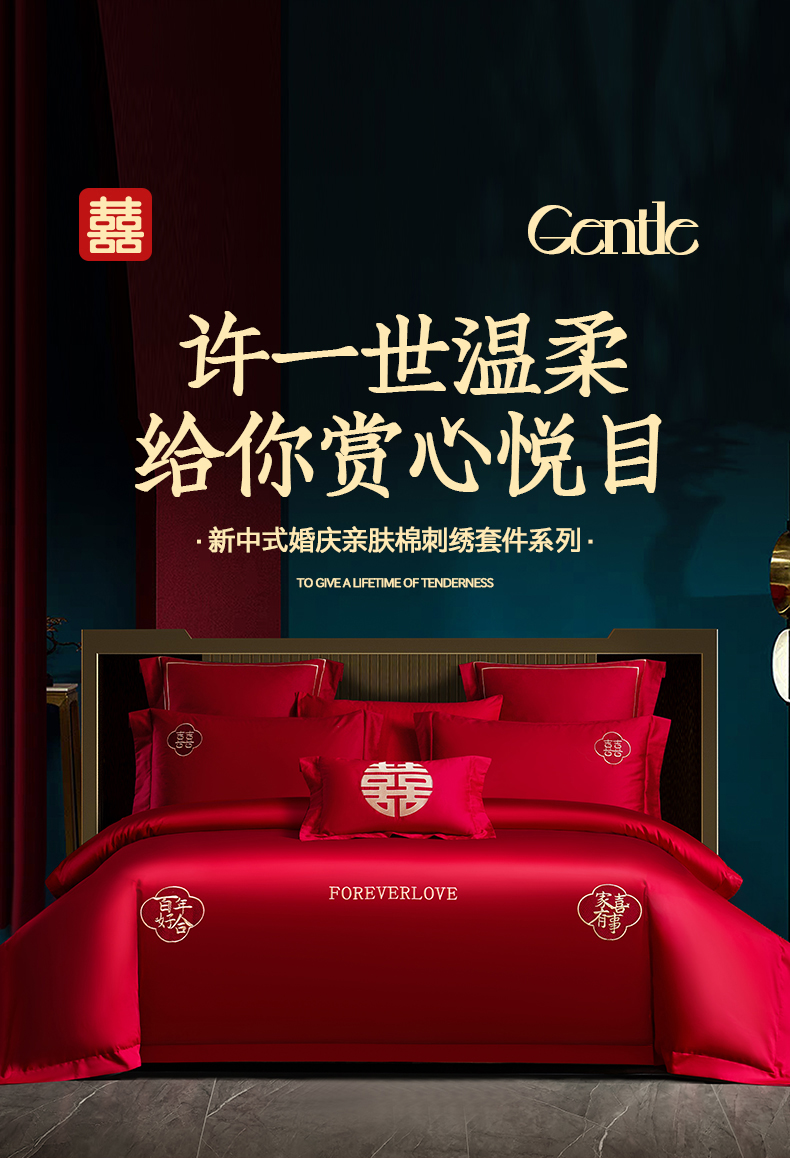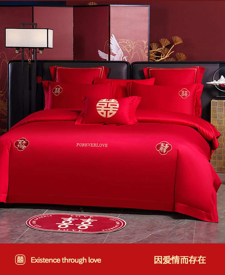 (总)置顶家纺 2025新款新中式棚拍亲肤棉婚庆大红刺绣系列四件套,花开富贵-大红,龙凤新禧-金大红,龙凤盈禧-大红,龙姿凤彩-大红,盛世婚礼-大红,十全十美-大红,喜结连理-大红,喜礼-大红,囍缘-大红,幸福婚礼-大红,迎喜龙凤-大红,永结同心-大红