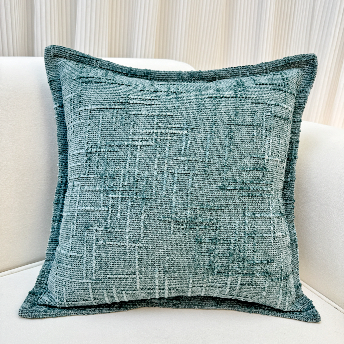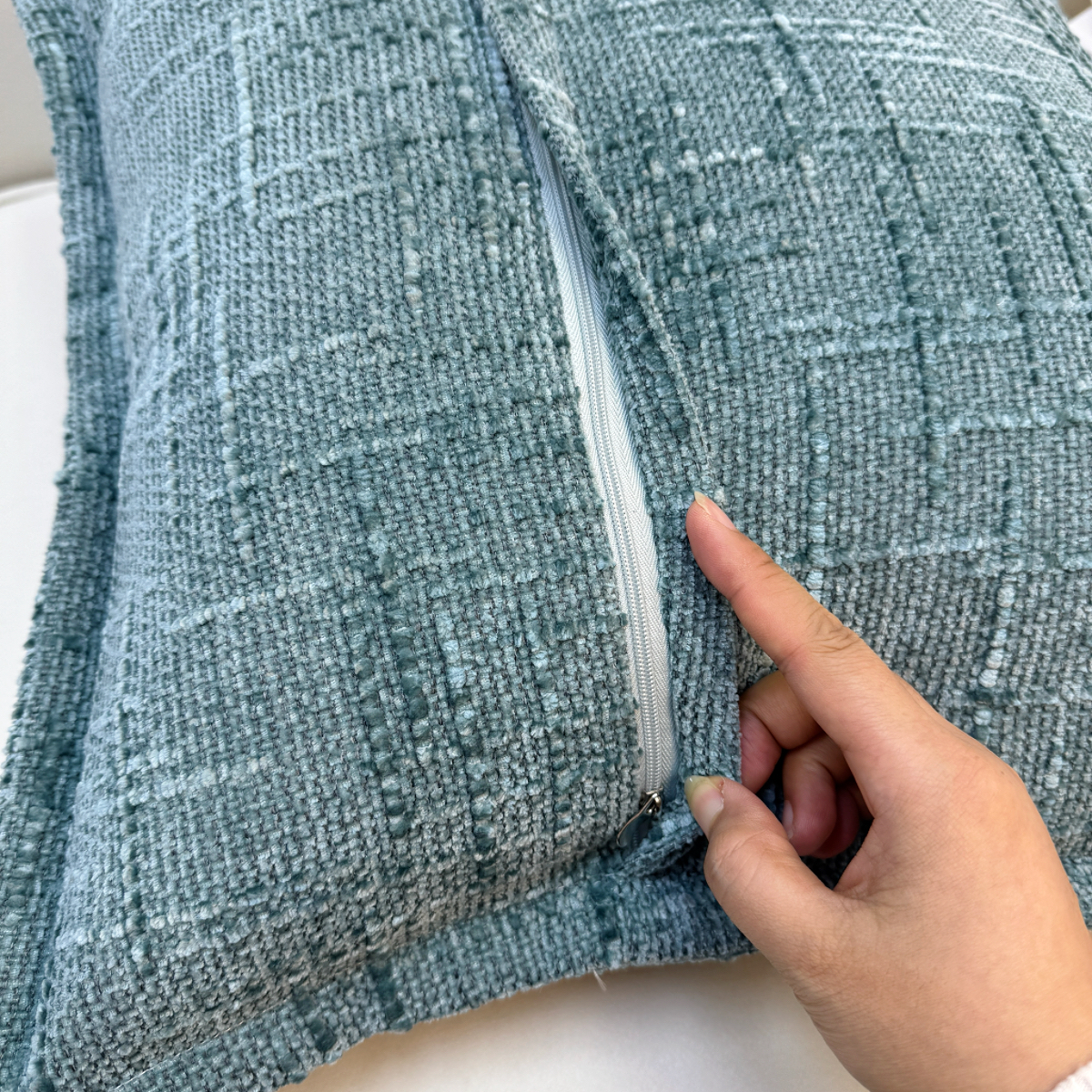 爱家居 2025新款跨境亚马逊加厚双面雪尼尔宽边枕套美式压边抱枕客厅纯色靠垫 宽边雪尼尔—蓝色