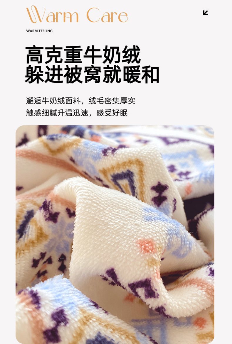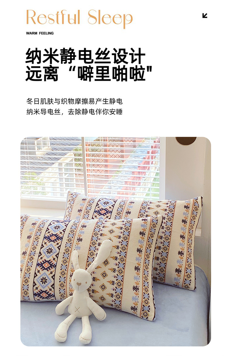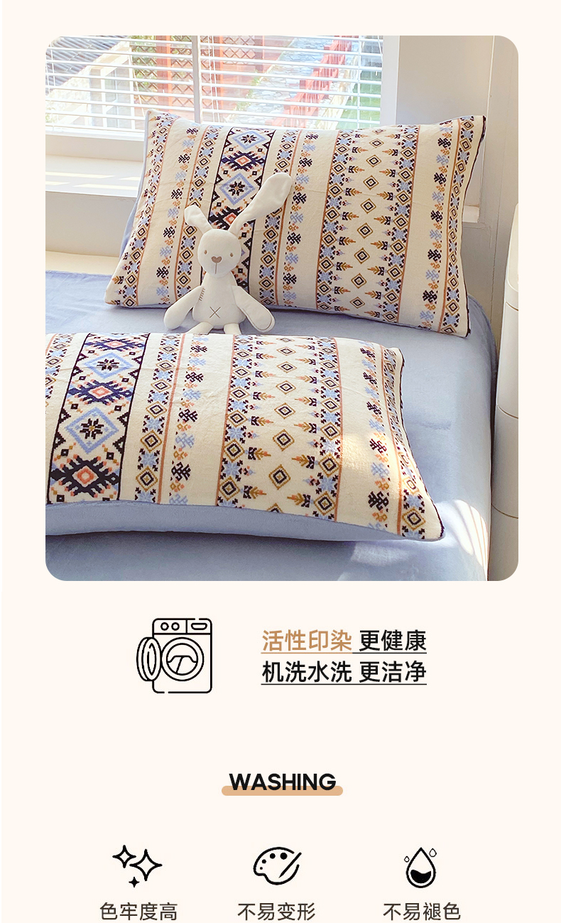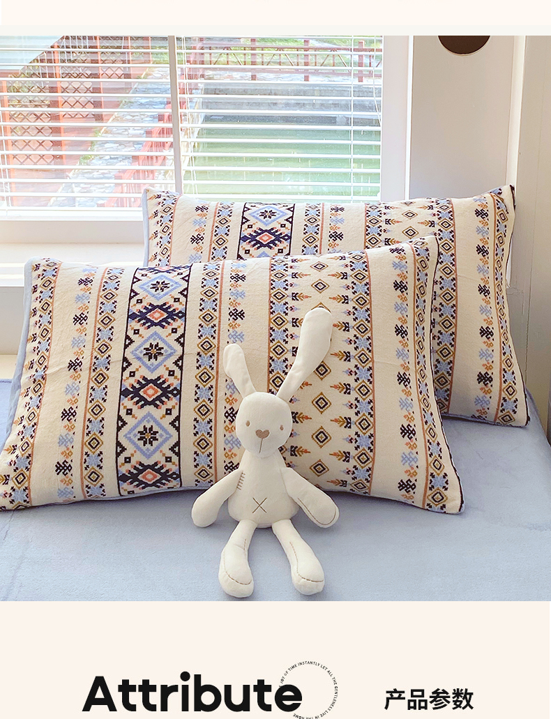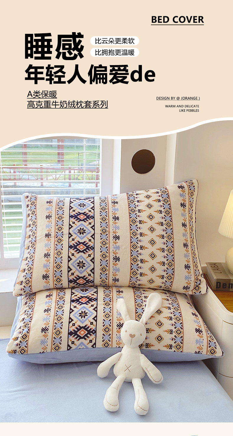 商品名称:金鑫汇家纺 2025年加厚高克重A类牛奶绒单枕套 波西米亚