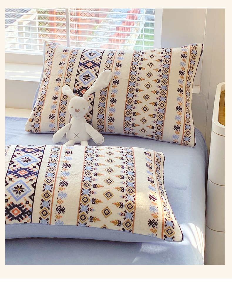 金鑫汇家纺 2025年加厚高克重A类牛奶绒单枕套 波西米亚