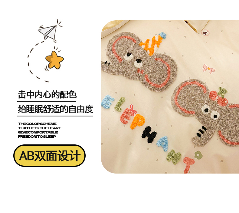 商品名称:锦彩家居 2025新款全棉13372数码印花毛巾绣四件套(提供买家秀) 甜蜜小象