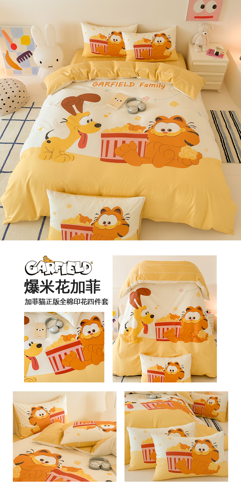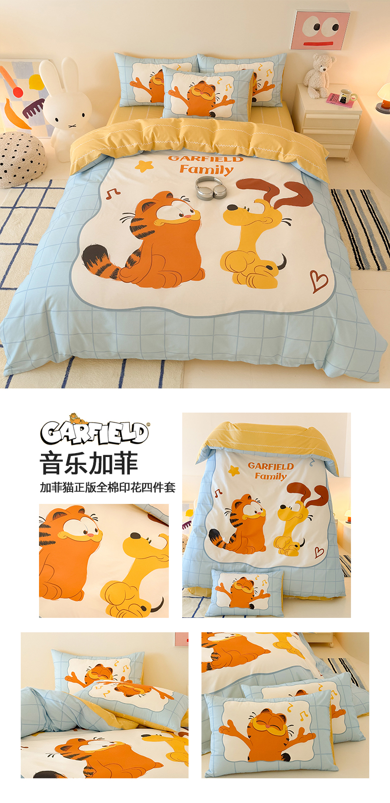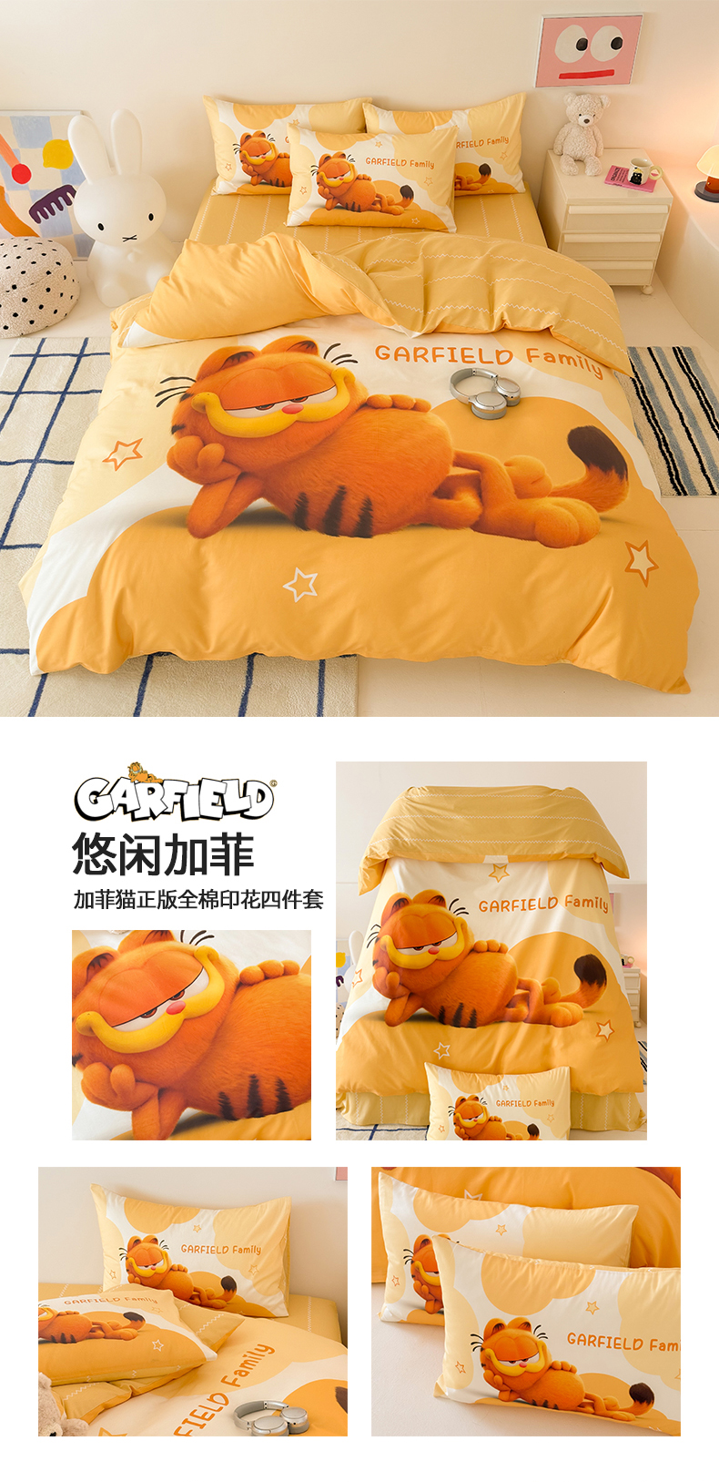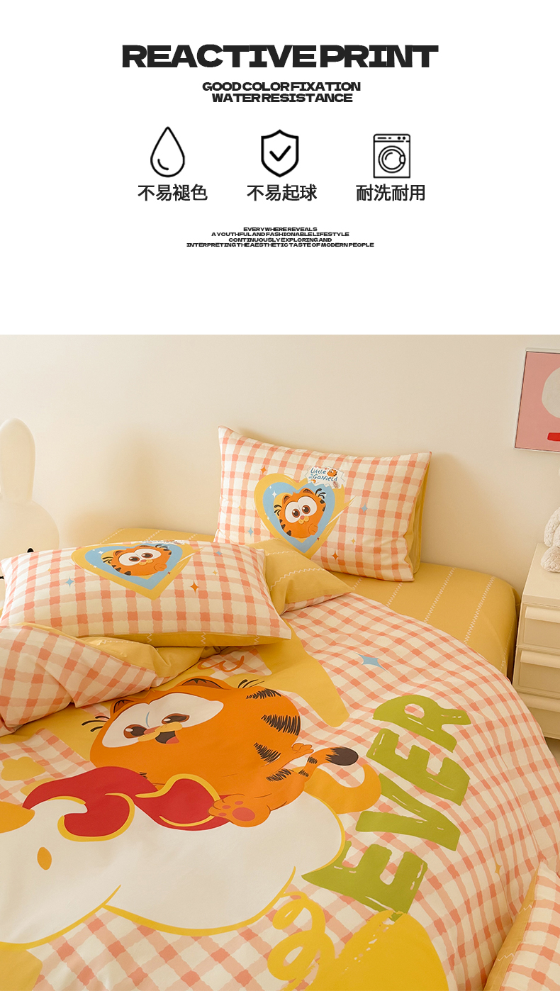 当前位置: 91家纺网 > 商品网购 > 床品套件 > 四件套 > 全棉普通四件套 > 锦彩家居 2025新款全棉数码印花卡通四件套-加菲猫系列 可爱加菲