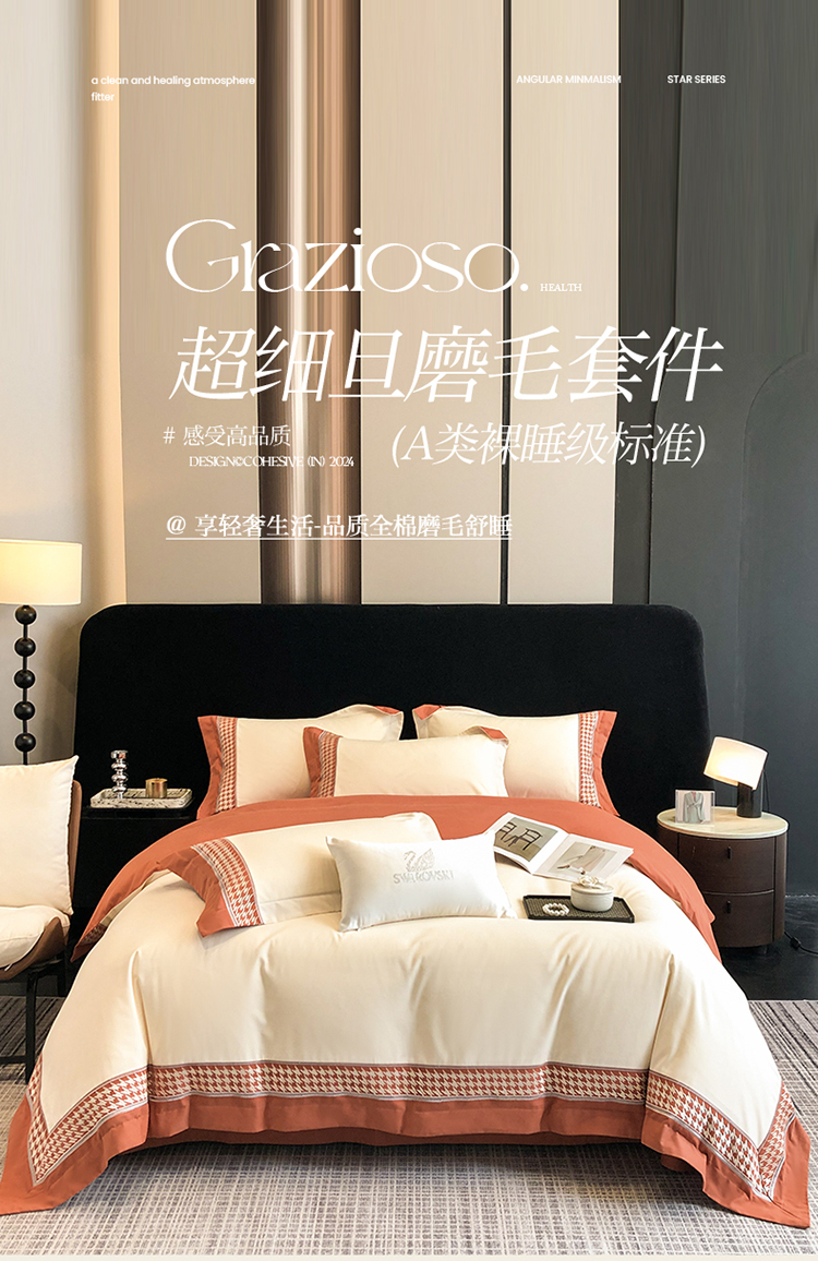 当前位置: 91家纺网 > 商品网购 > 床品套件 > 四件套 > 贡缎全棉四件套 > (可开发票)高档礼盒装超柔超细旦50S长绒棉磨毛刺绣四件套全棉100%纯棉秋冬加厚床品 奶茶杏-千鸟格-A类超细旦超柔长绒棉