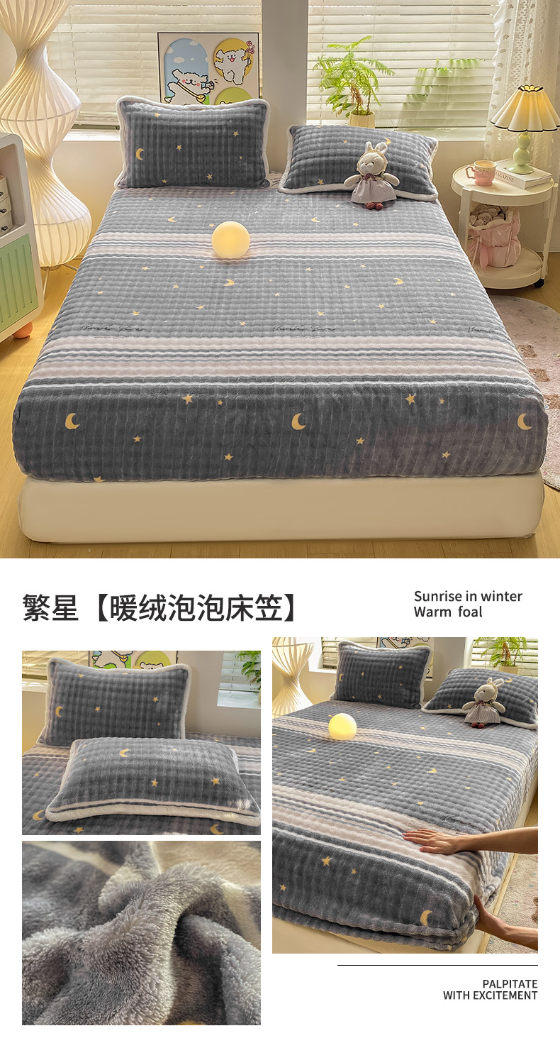 • 91家纺网 家纺一手货源 找家纺 眠势力 2025新款暖绒泡泡床笠单件冬季保暖床罩牛奶绒床垫保护套 星星梦露【暖绒泡泡床笠】