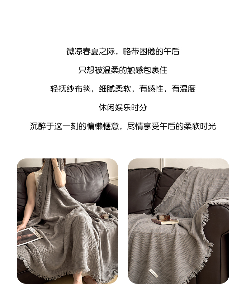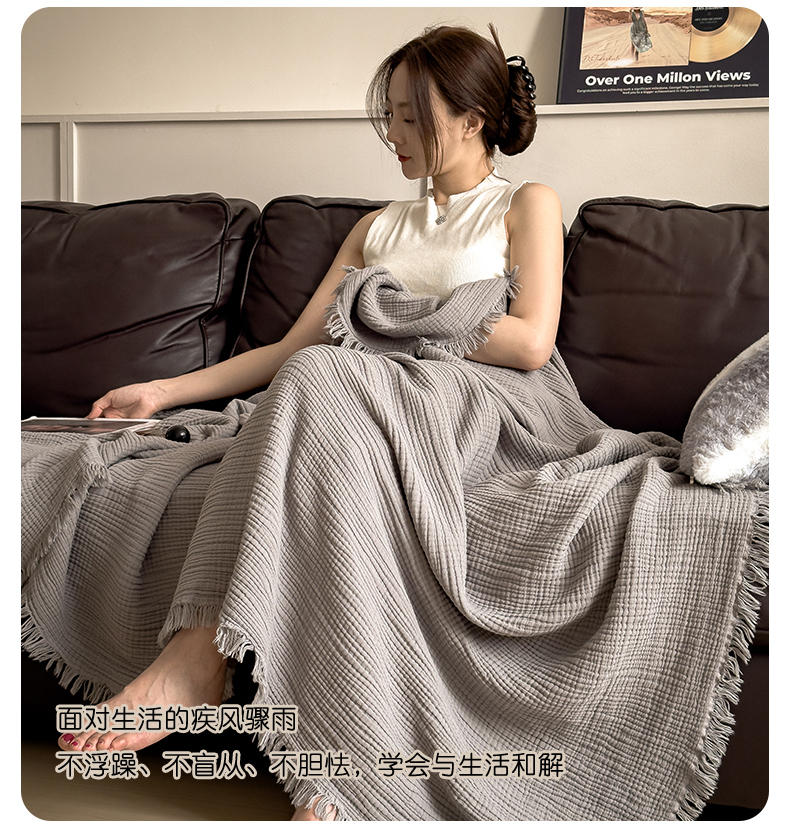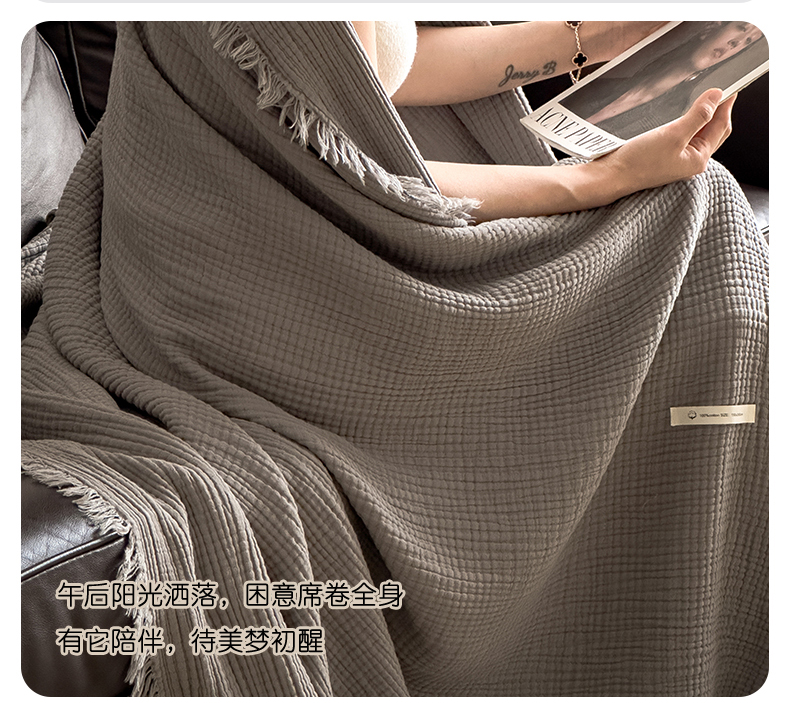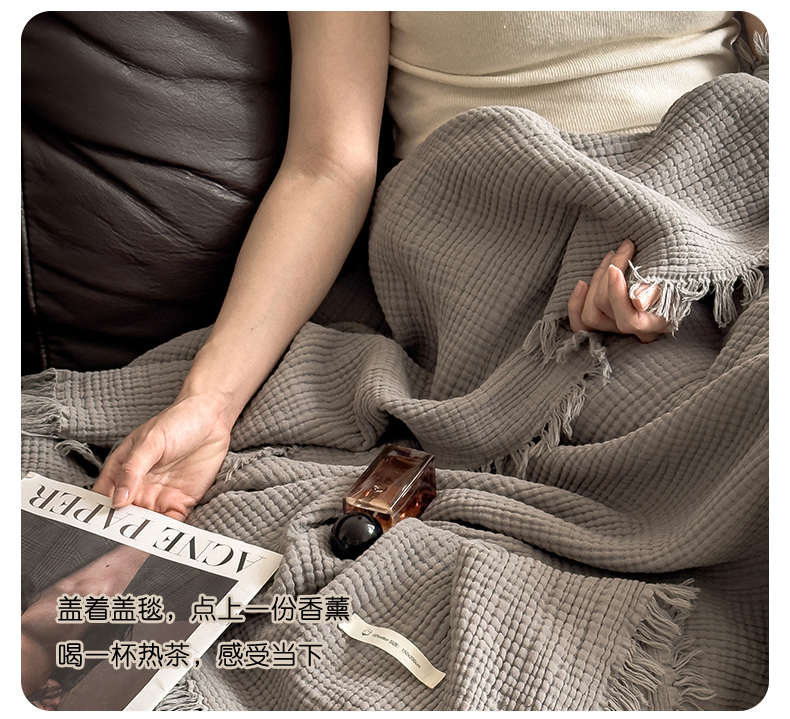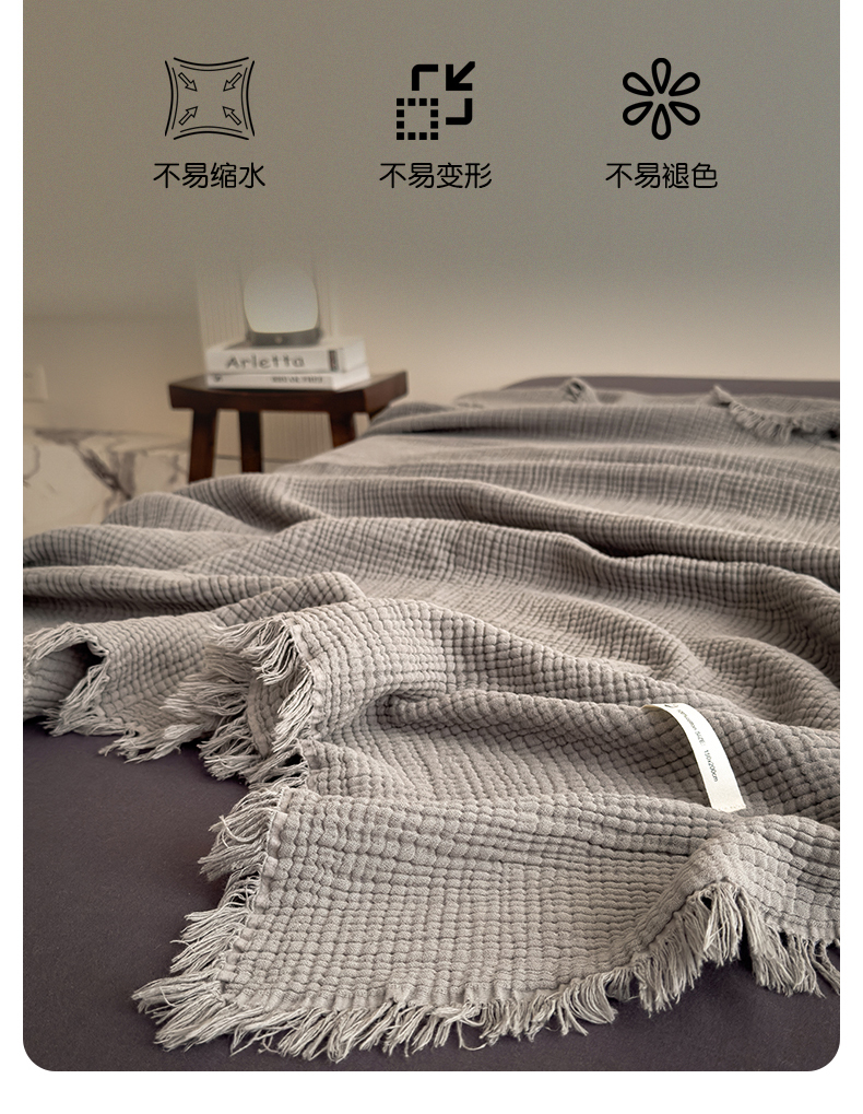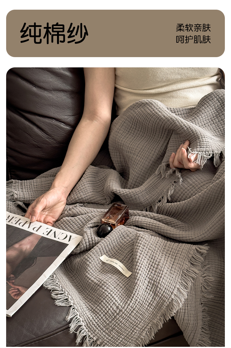 兄弟坊 2026新款美拉德全棉夏被纱布毯空调毯飞机毯 雅居-雾石灰