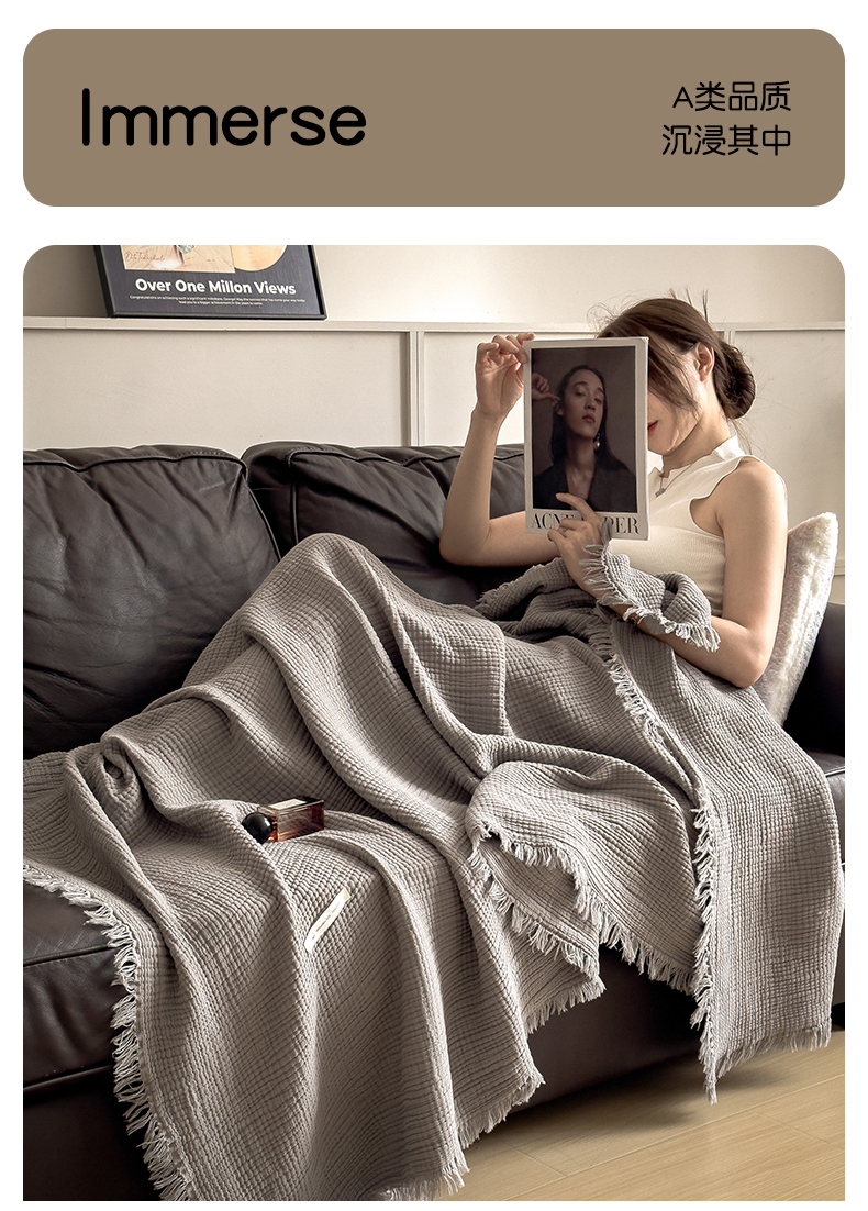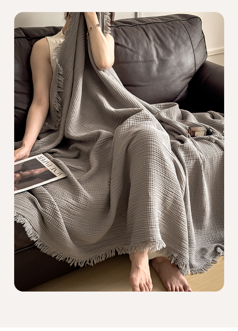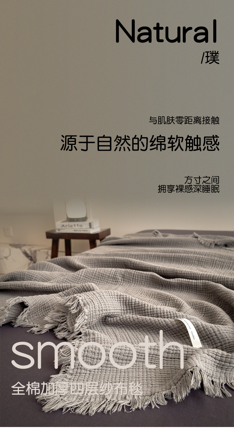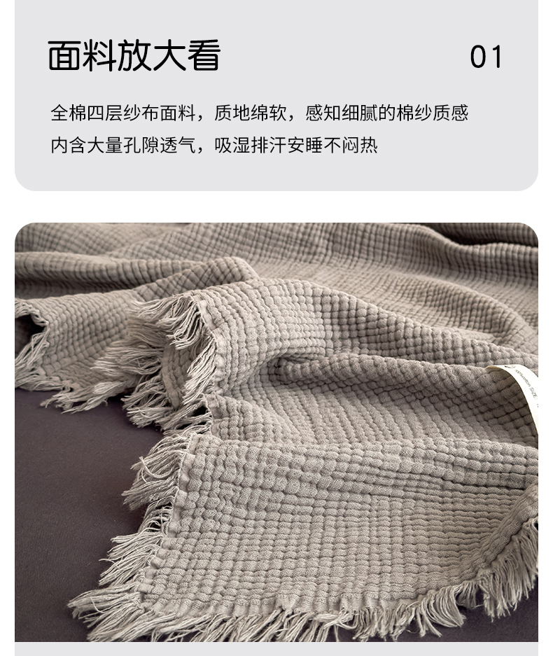 兄弟坊 2026新款美拉德全棉夏被纱布毯空调毯飞机毯 雅居-雾石灰