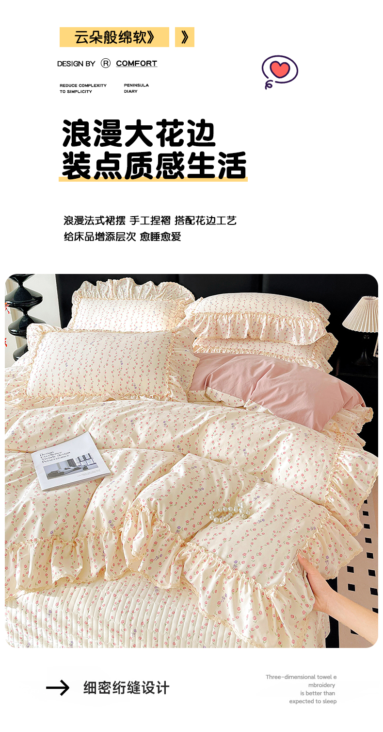 当前位置: 91家纺网 > 商品网购 > 床品套件 > 四件套 > 其它四件套 > 富米莱(原臻工厂) 2026新款法式大花边A类古法仿棉云感纱床盖床裙四件套 大花边-鱼多多