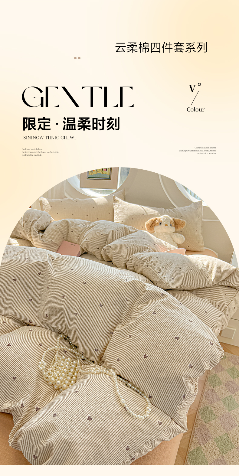 商品名称:(总)韩巢家纺 2025新款奶呼呼云感双层纱印花四件套