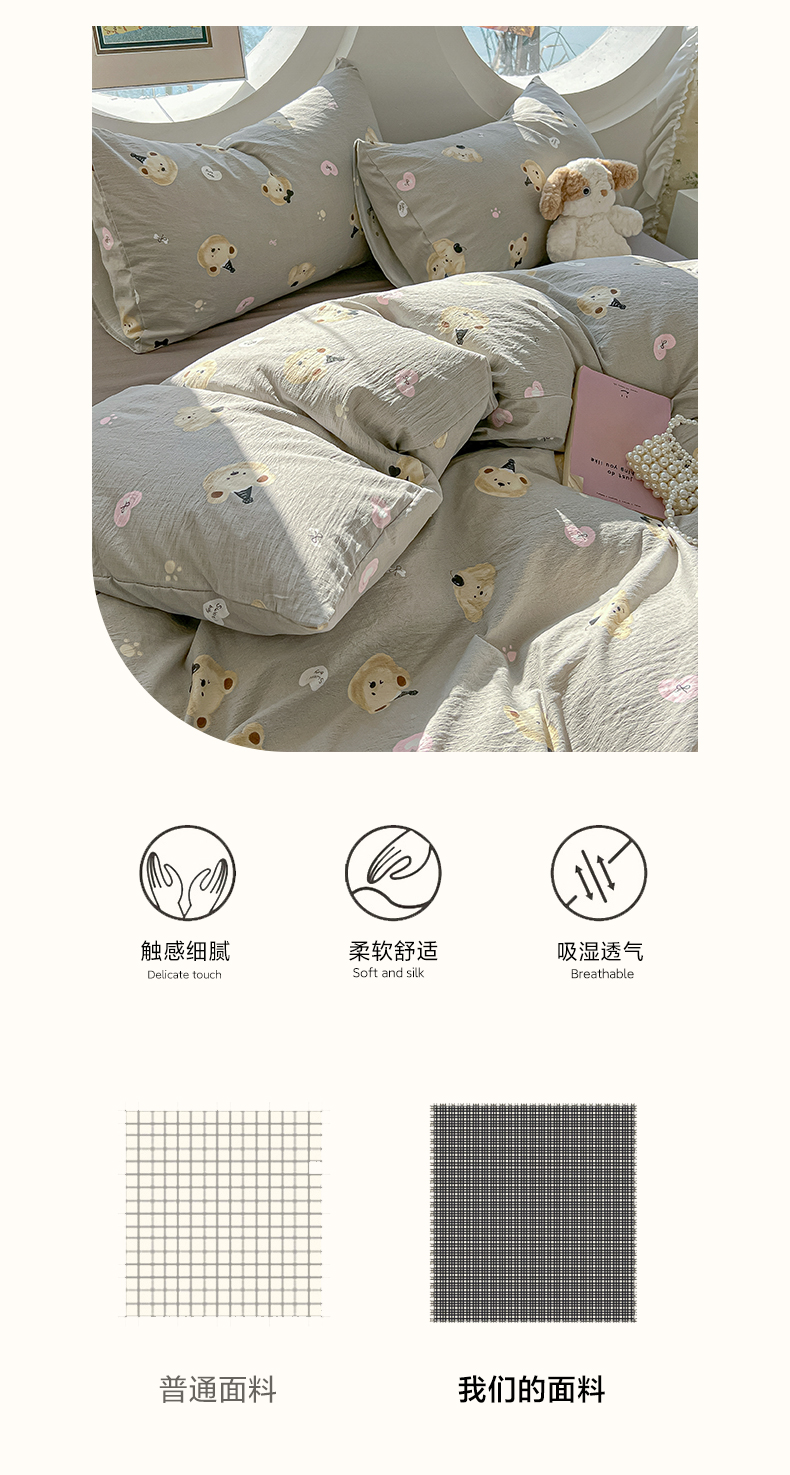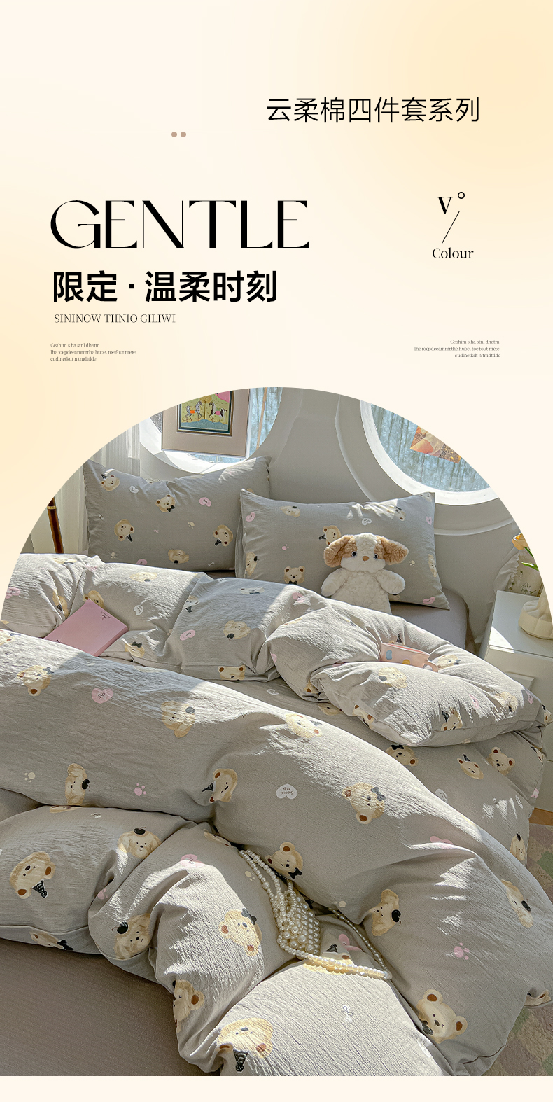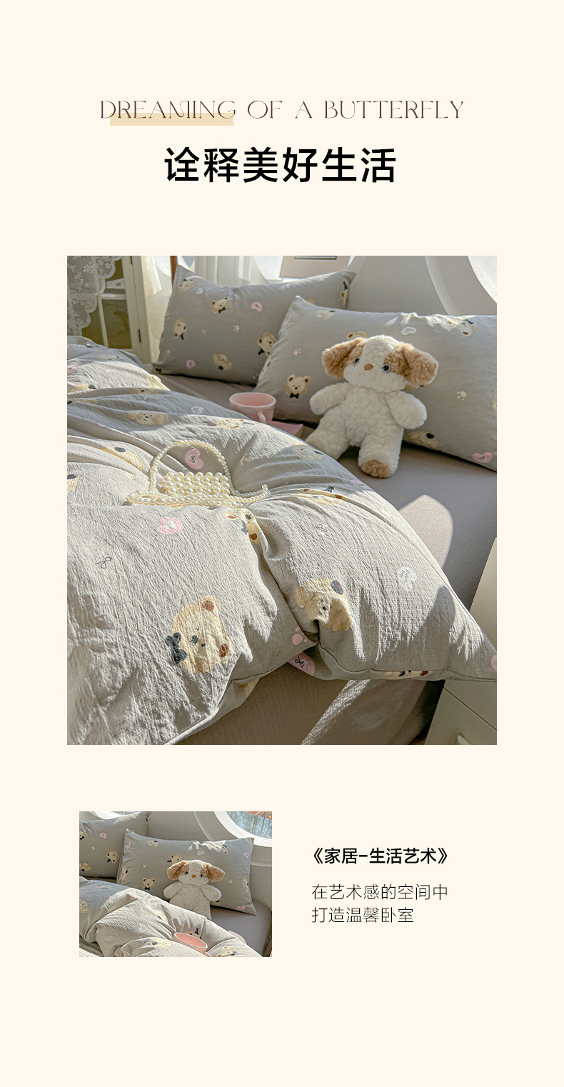 当前位置: 91家纺网 > 商品网购 > 床品套件 > 四件套 > 其它四件套 > 韩巢家纺 2025新款奶呼呼云感双层纱印花四件套 奇妙小熊