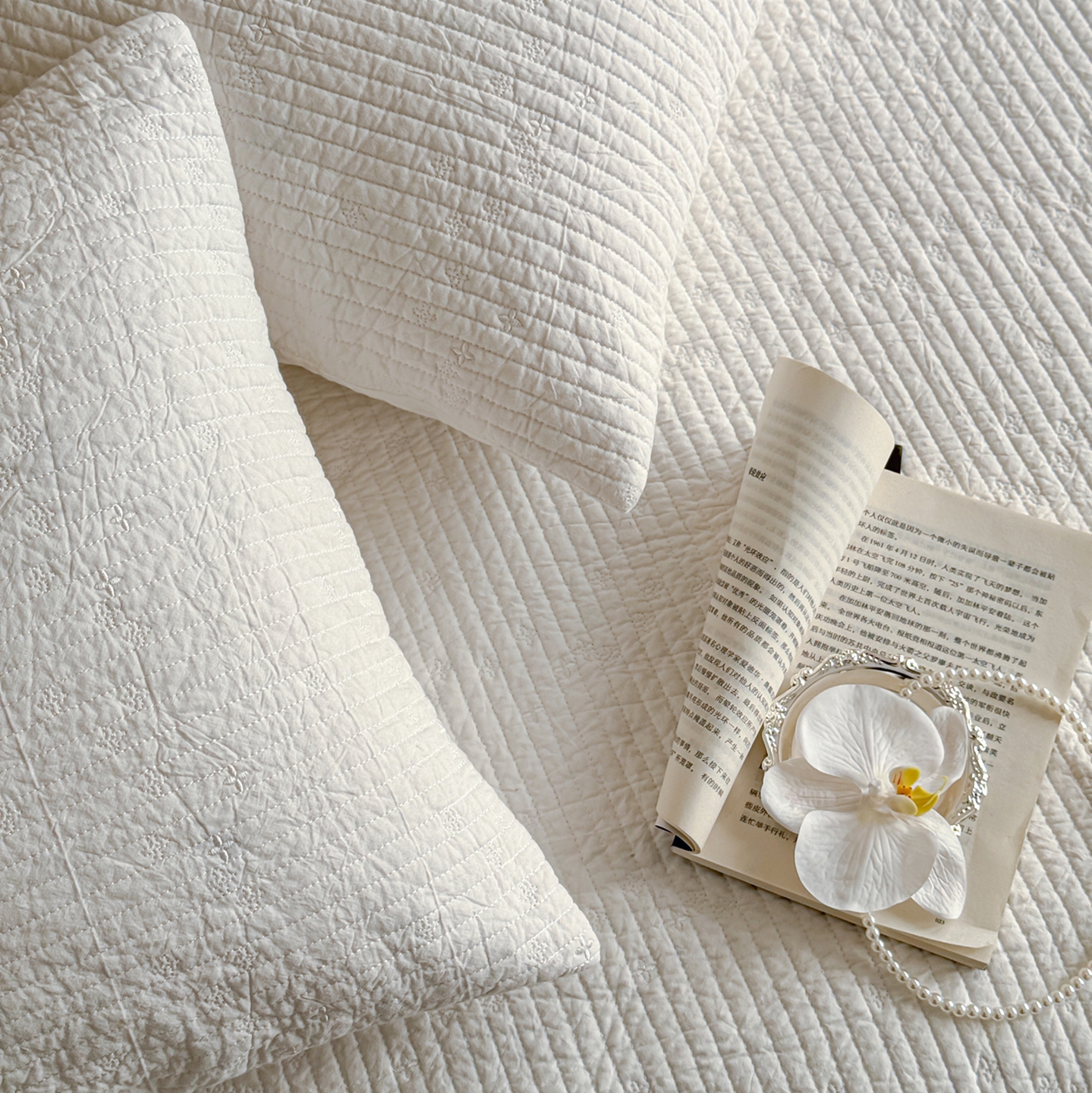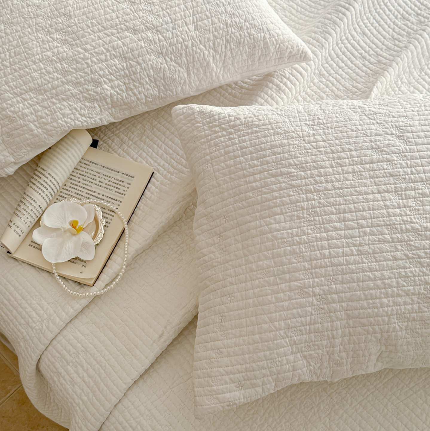 商品名称:(总)床盖工厂店 2025新款韩式四叶草双面全棉填充棉花床盖套件