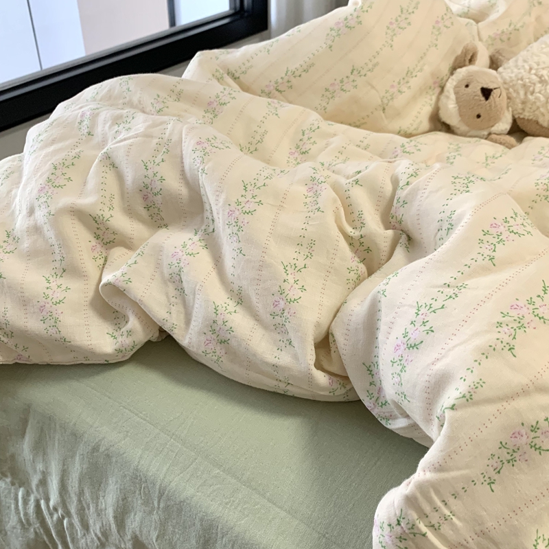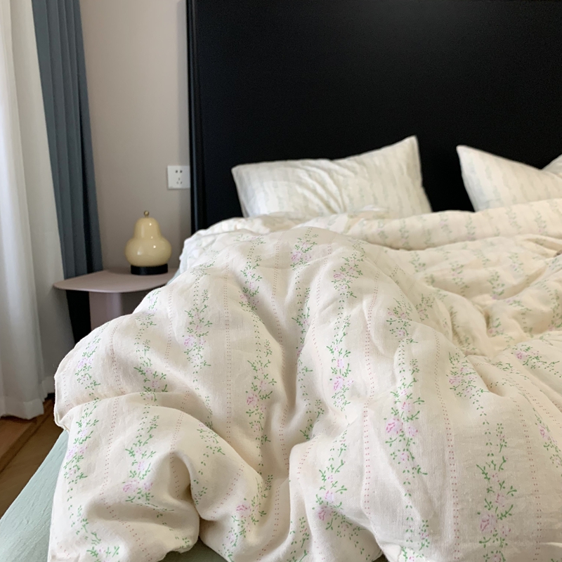 商品名称:源启生活 2025新款A类全棉双层纱四件套 情书