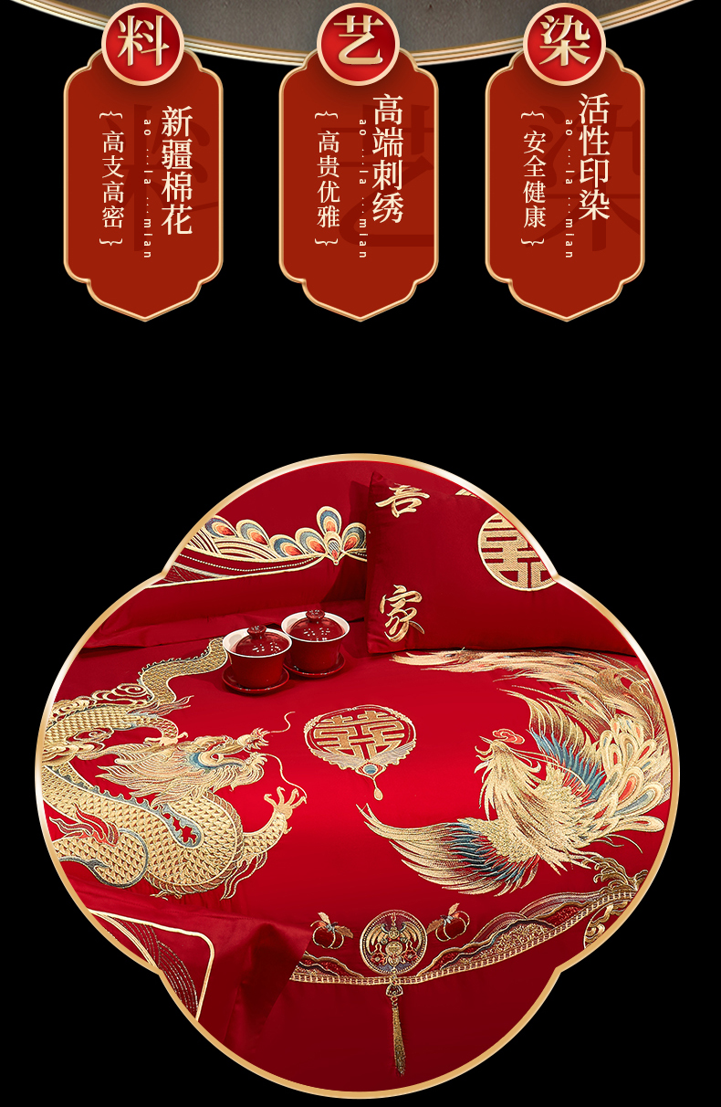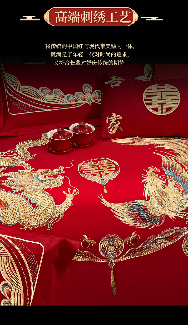 当前位置: 91家纺网 > 商品网购 > 床品套件 > 四件套 > 婚庆四件套 > 浩情国际婚庆供货中心 2026新款100%全棉长绒棉纯棉婚庆四件套结婚刺绣六件套多件套长期供货 金龙彩凤