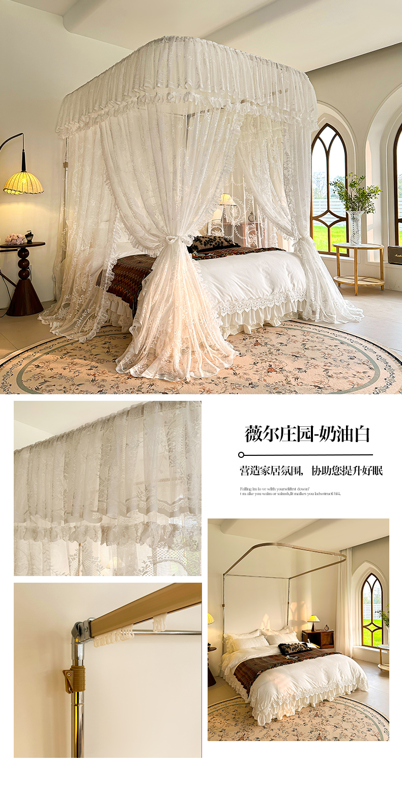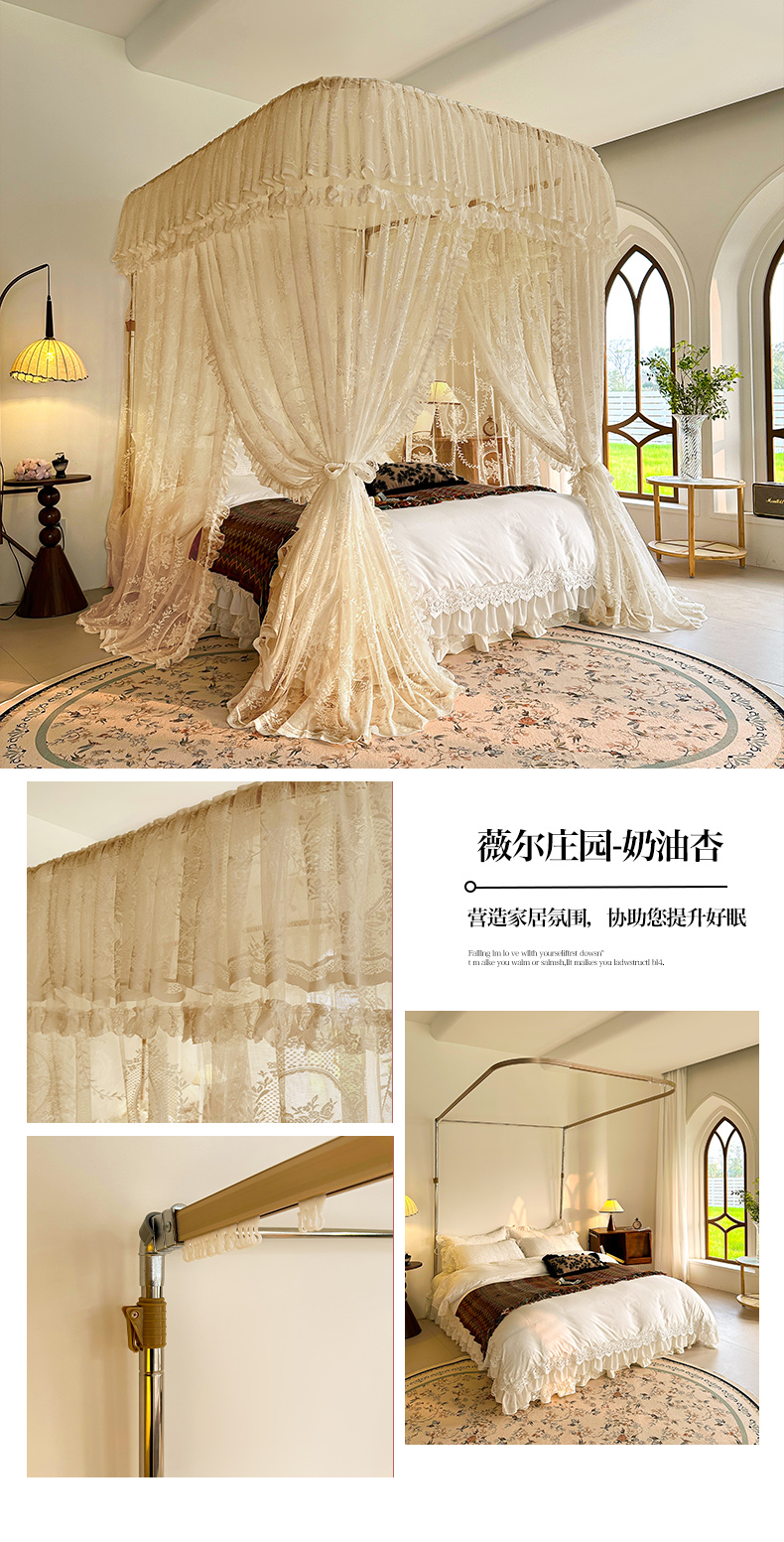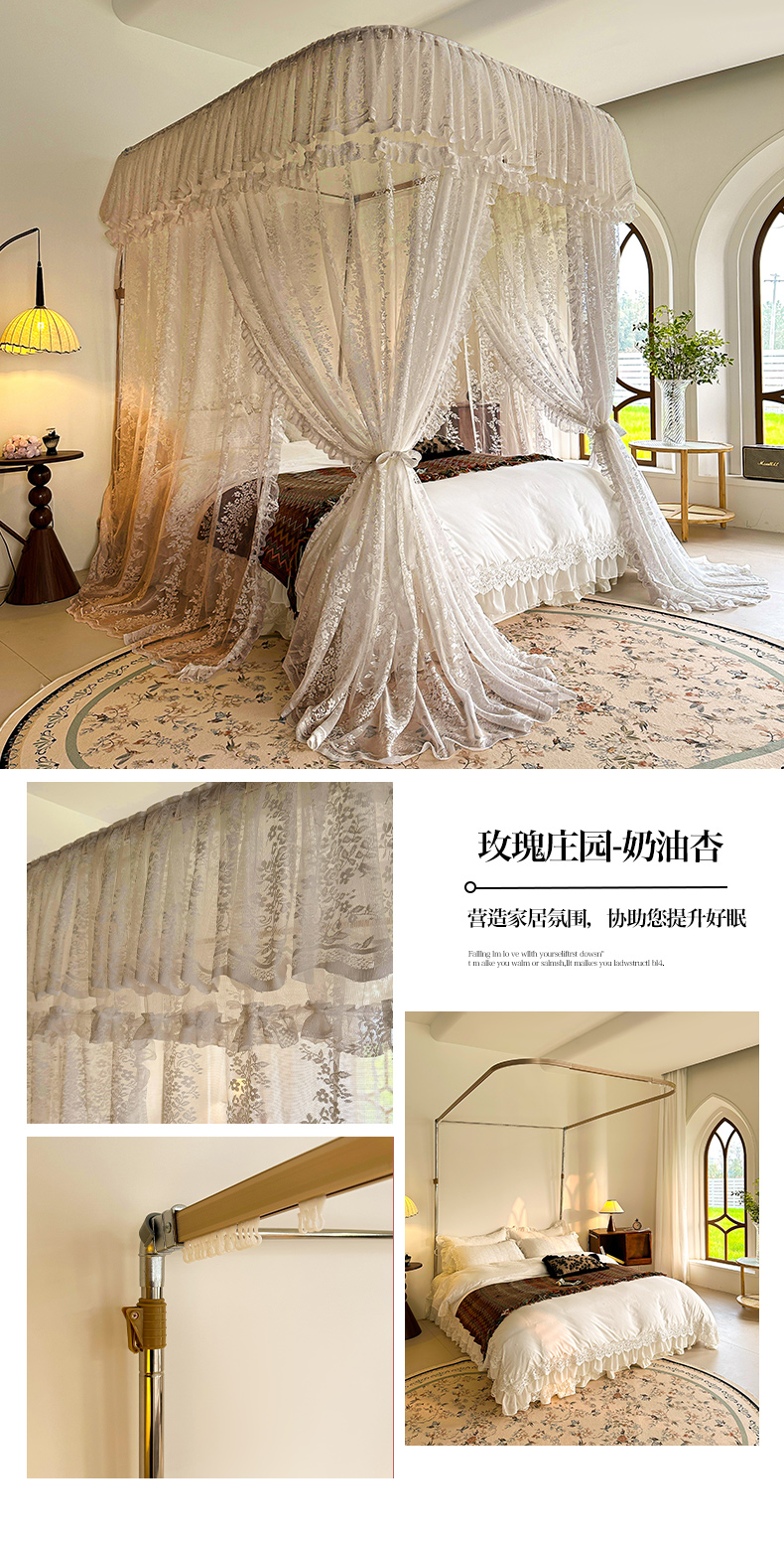 (总)2025新款浪漫落地蕾丝花边蚊帐905提花系带系列,905玫瑰庄园-奶油白,905玫瑰庄园-奶油杏,905玫瑰庄园-奶油玉