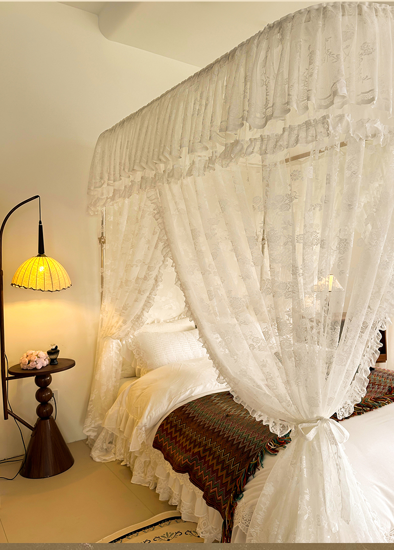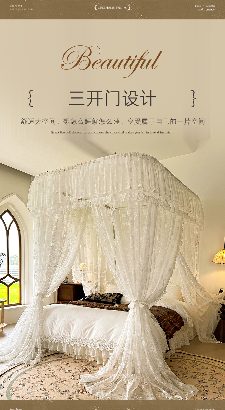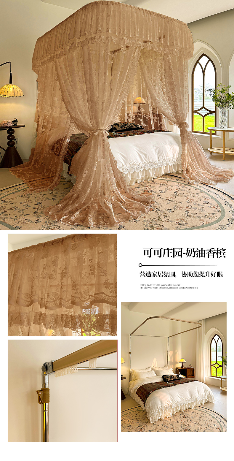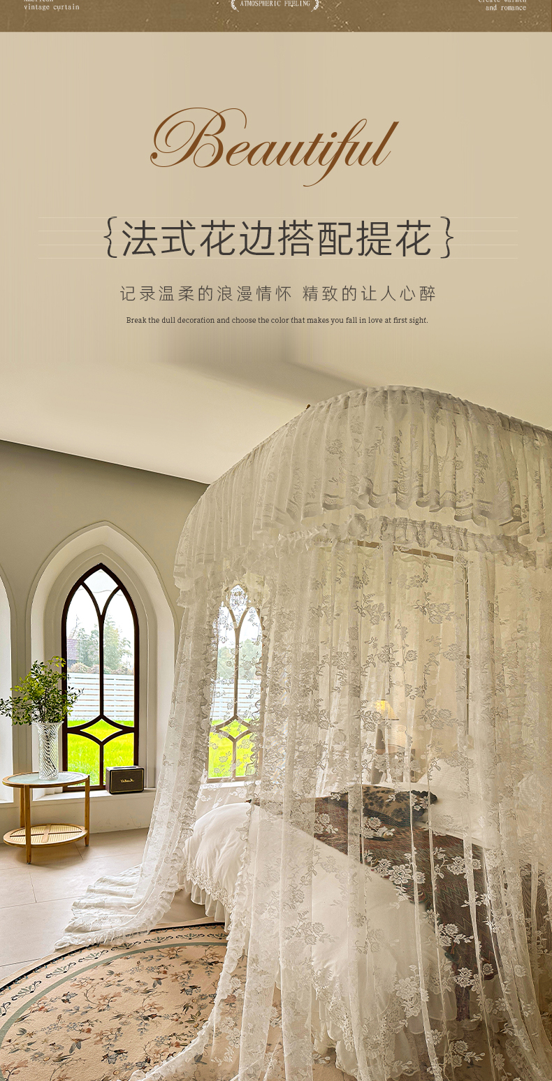 (总)2025新款浪漫落地蕾丝花边蚊帐905提花系带系列,905玫瑰庄园-奶油白,905玫瑰庄园-奶油杏,905玫瑰庄园-奶油玉