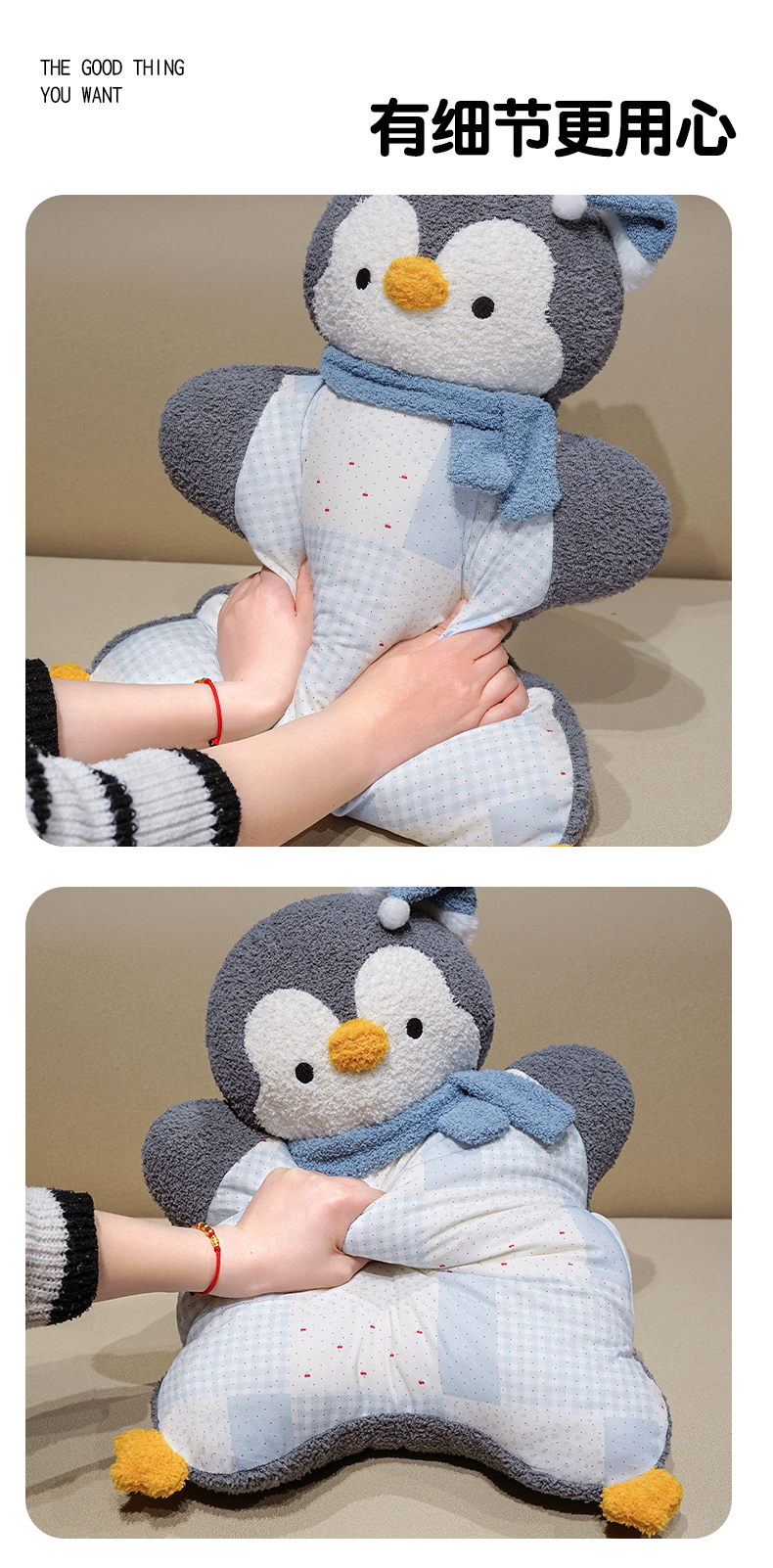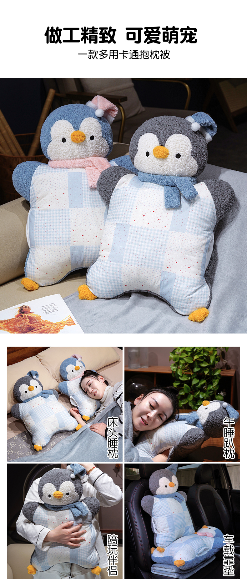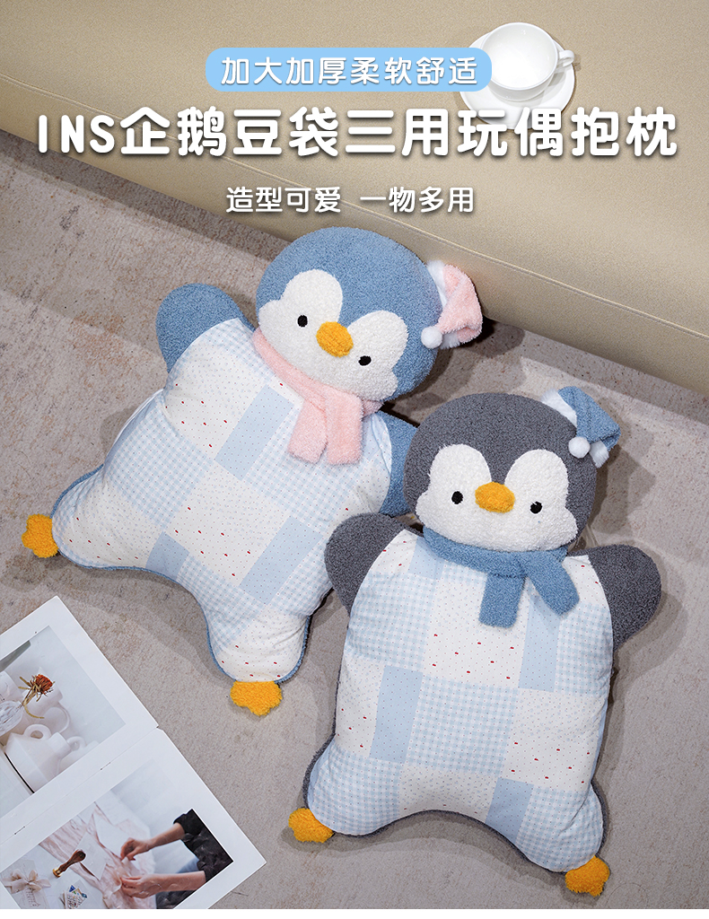 商品名称:仟亿莱 2025新款ins企鹅豆袋三用玩偶抱枕 三用蓝色企鹅-1