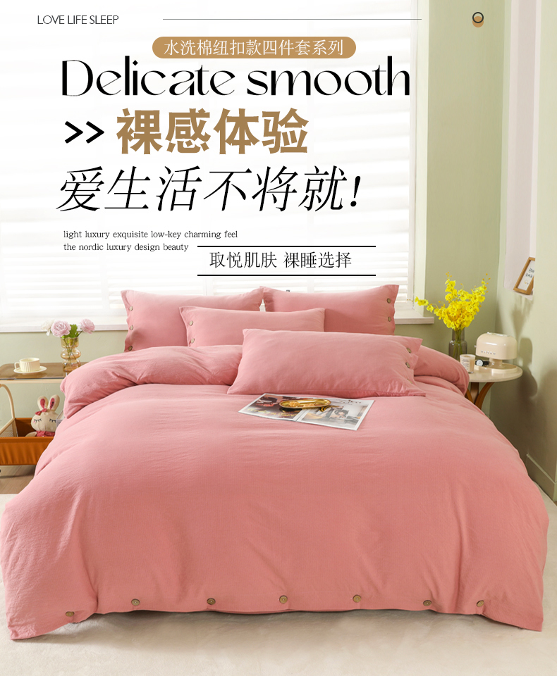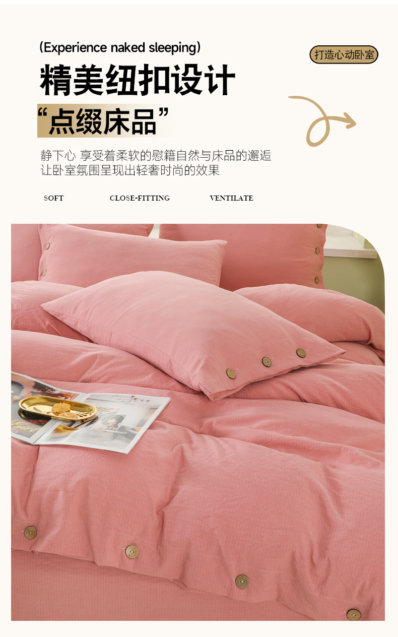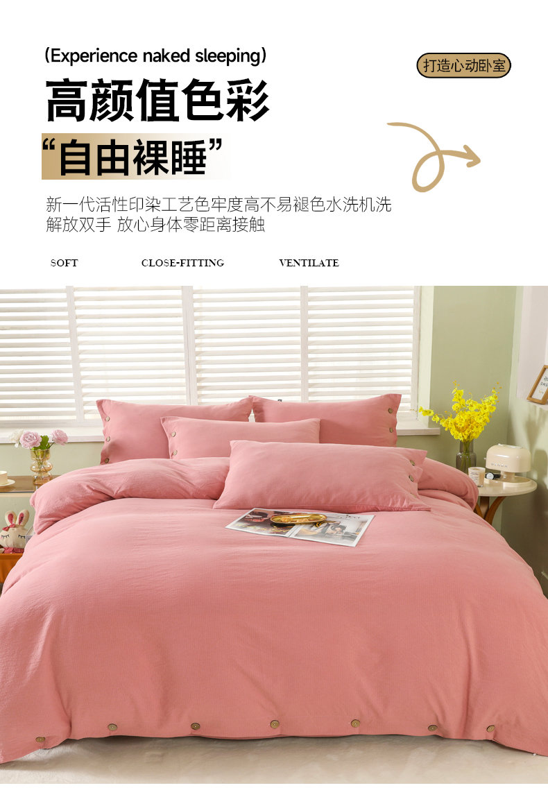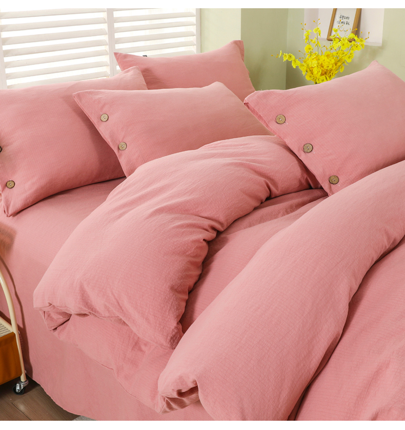 博婷 2026新款水洗棉麻皱皱纱纽扣工艺款四件套 豆沙