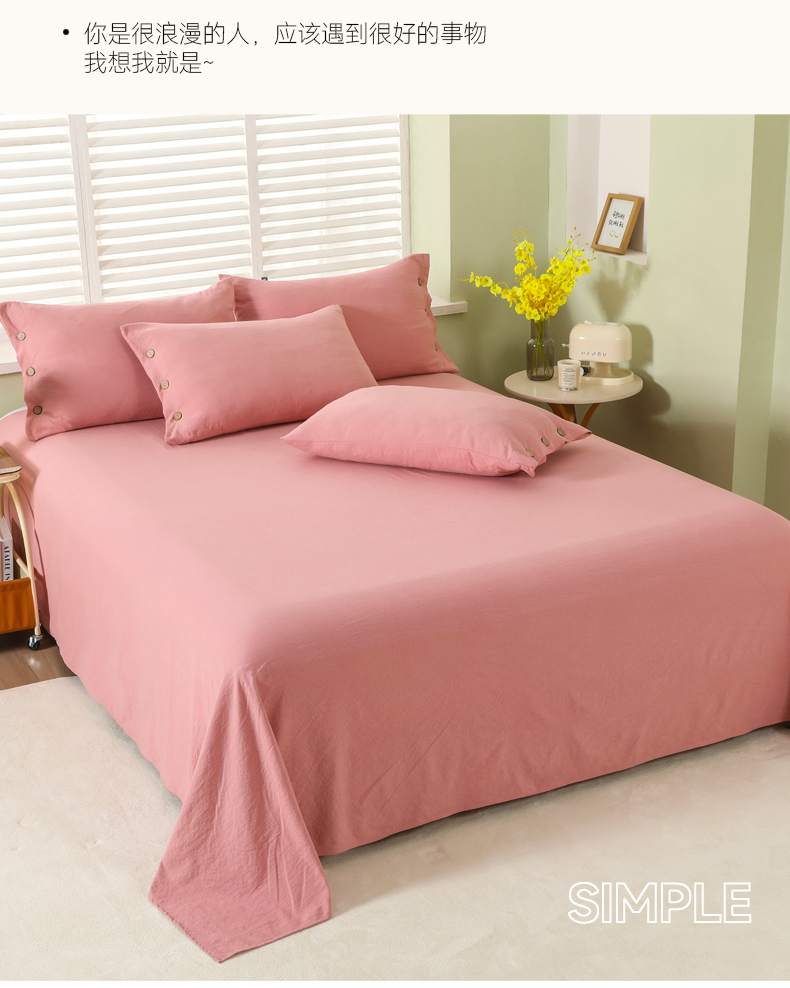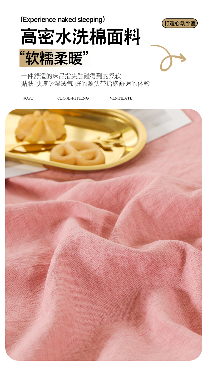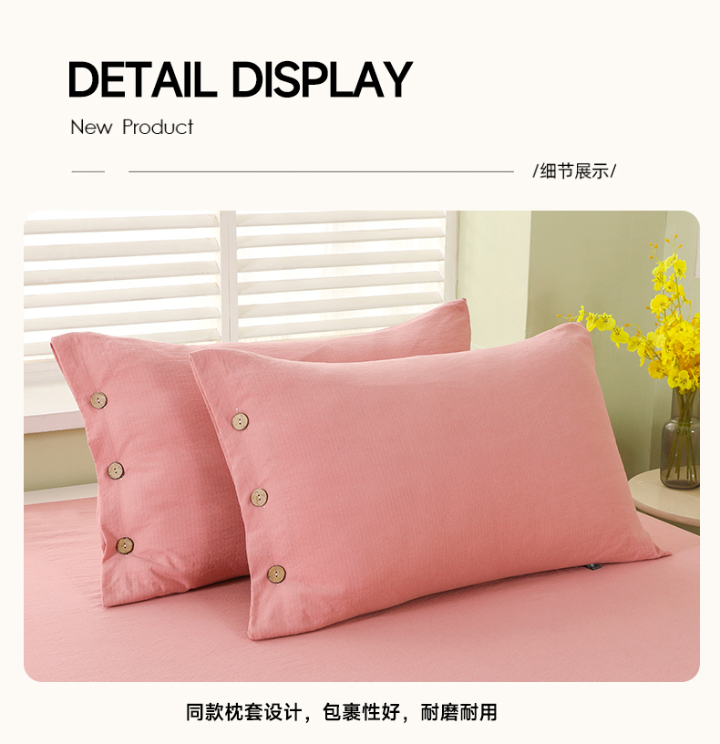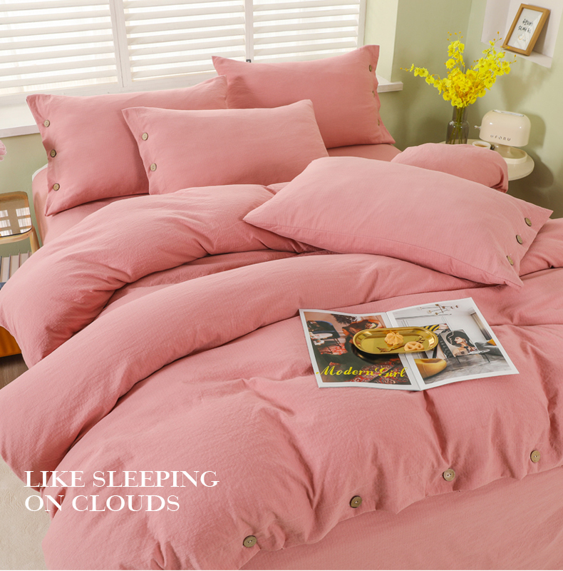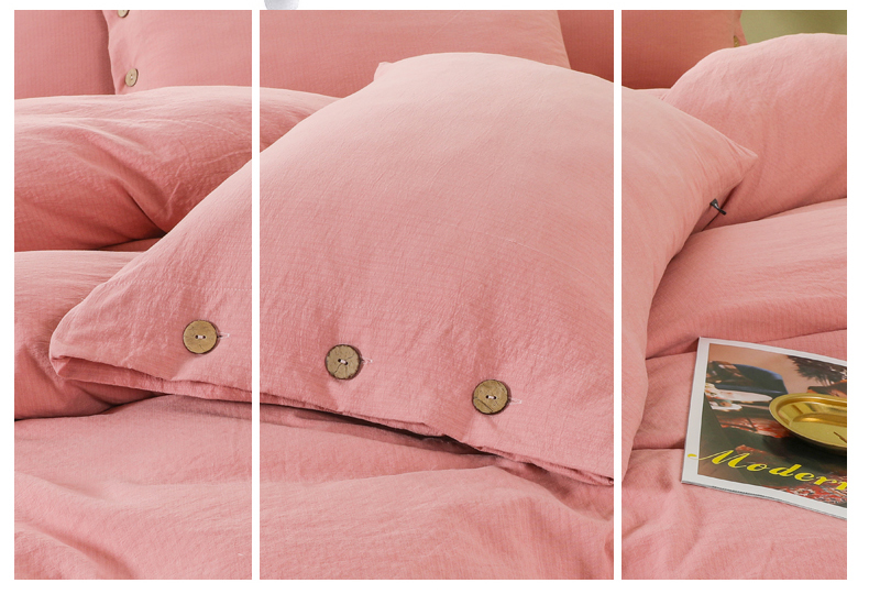 博婷 2026新款水洗棉麻皱皱纱纽扣工艺款四件套 豆沙