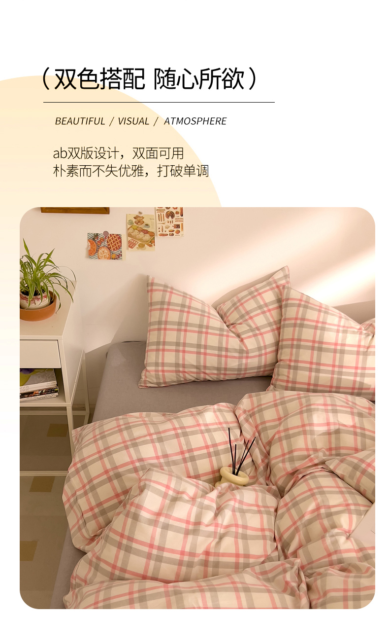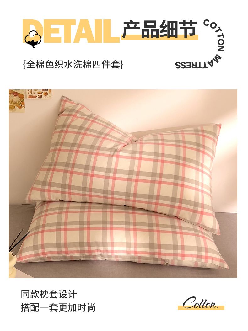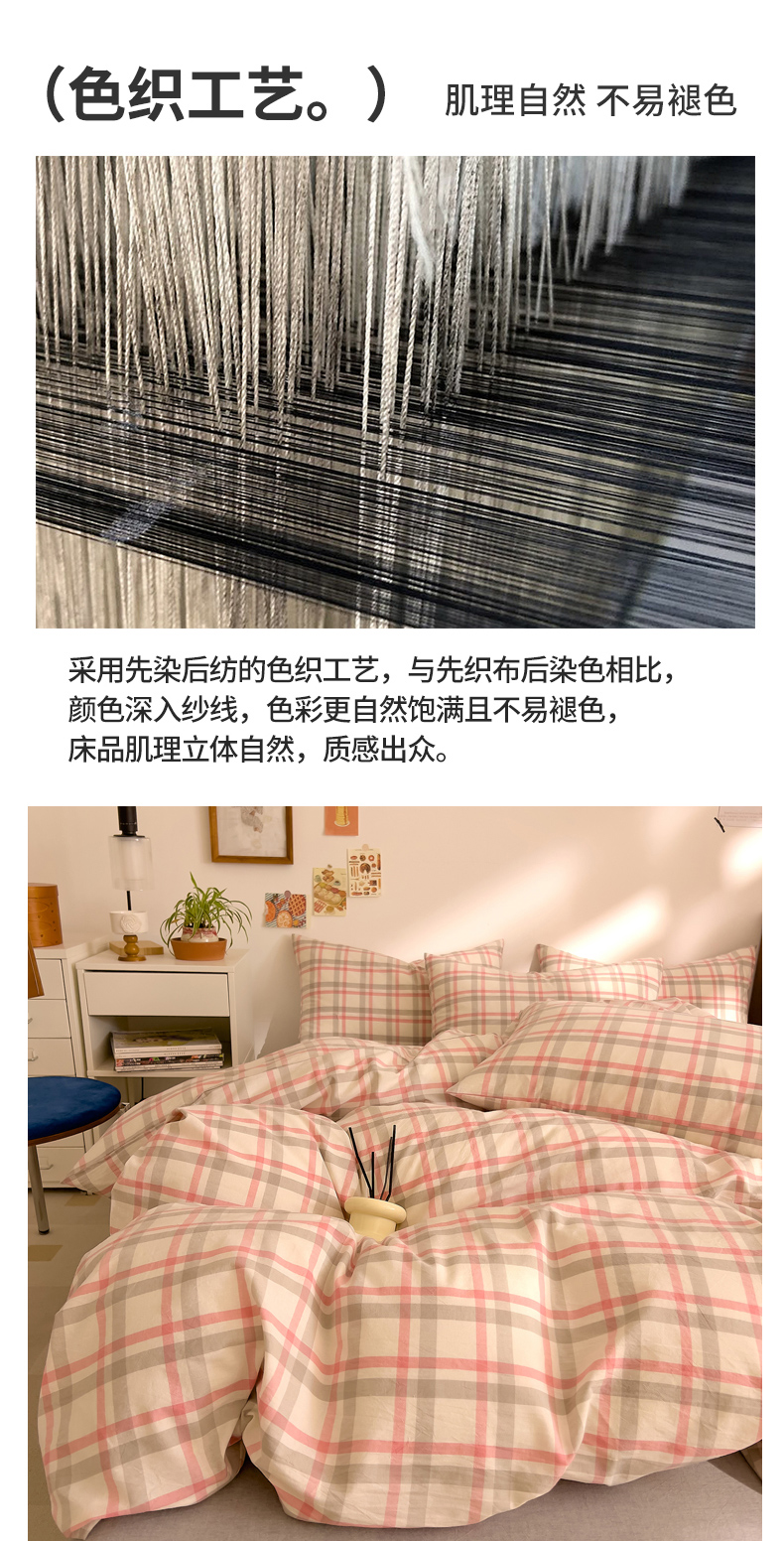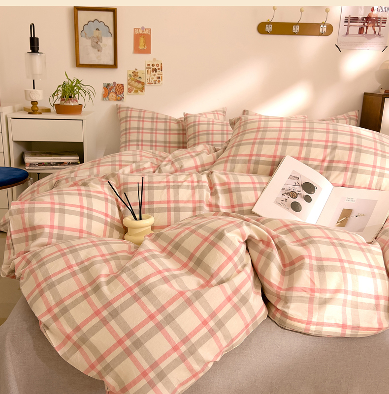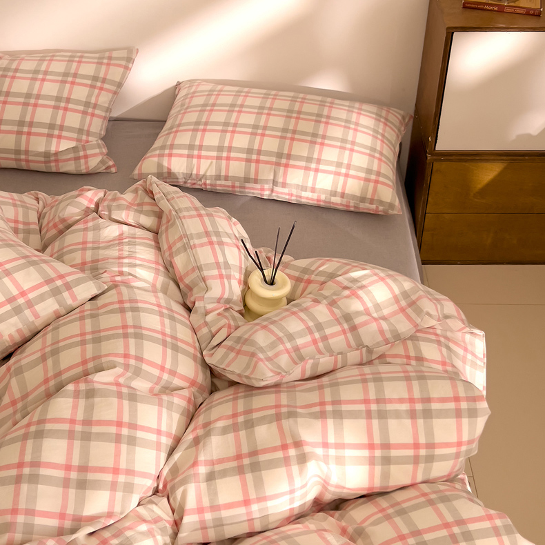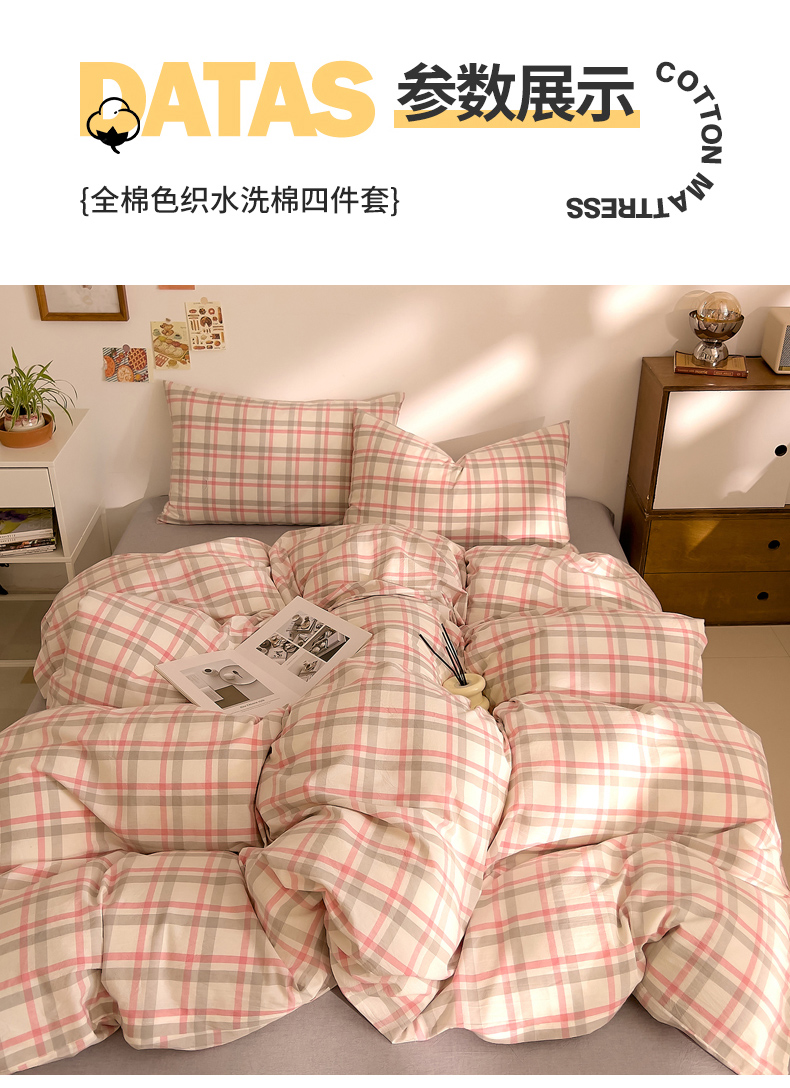当前位置: 91家纺网 > 商品网购 > 床品套件 > 四件套 > 全棉普通四件套 > DoDo 兜兜 2026新款全棉纯棉A类条格水洗棉四件套-可定做尺寸 禾里-灰粉