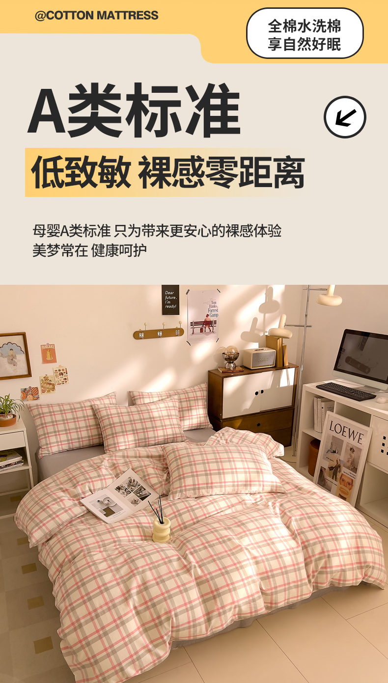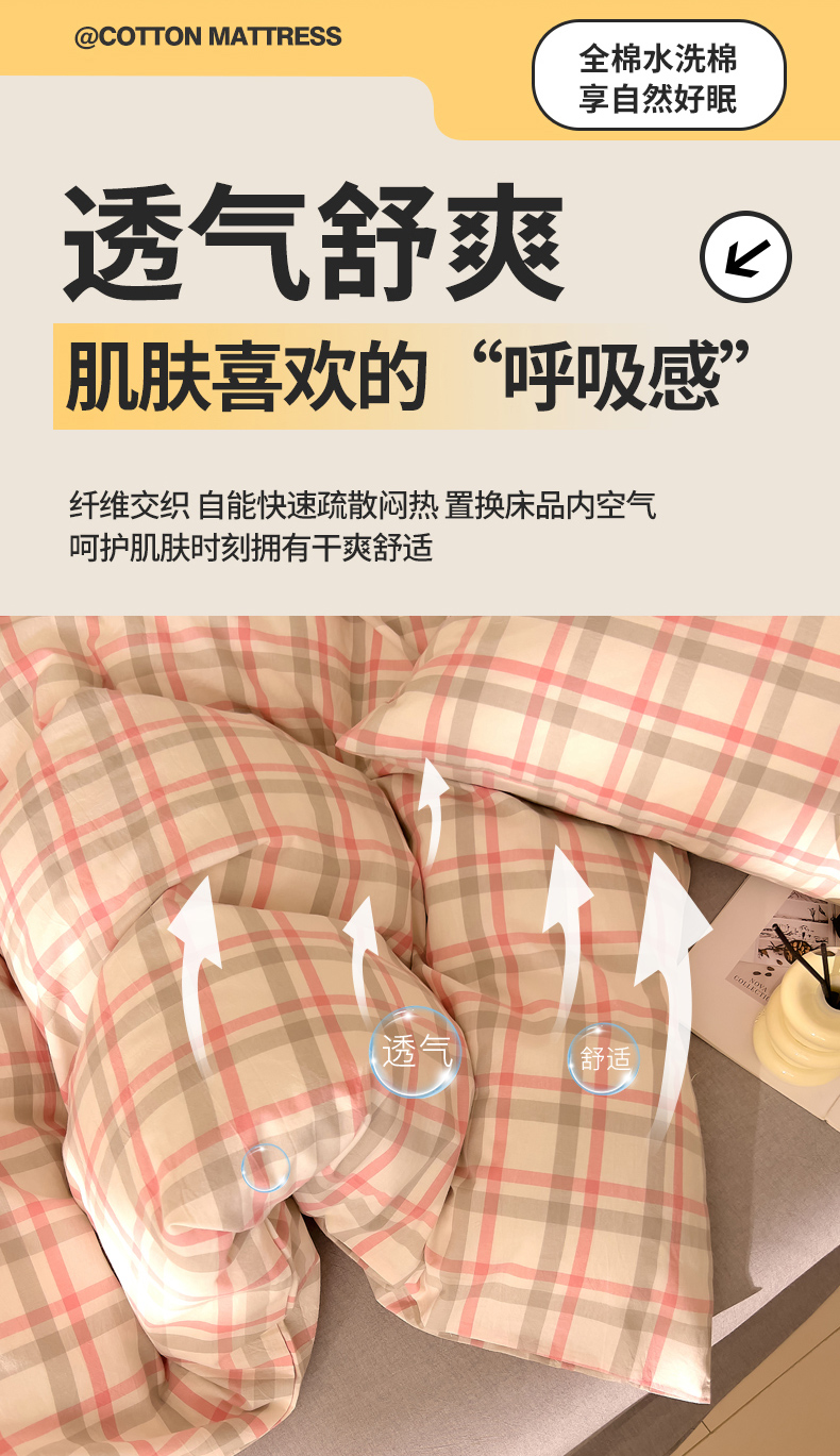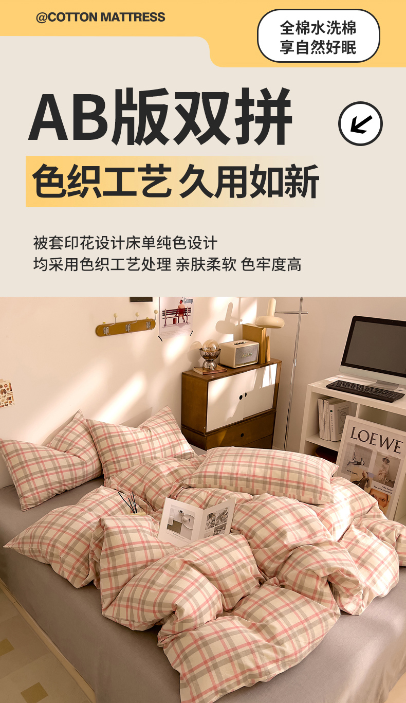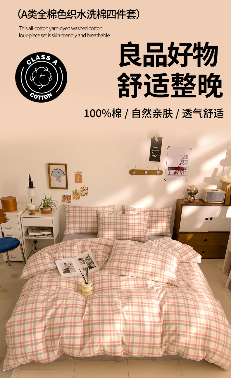 当前位置: 91家纺网 > 商品网购 > 床品套件 > 四件套 > 全棉普通四件套 > DoDo 兜兜 2026新款全棉纯棉A类条格水洗棉四件套-可定做尺寸 禾里-灰粉