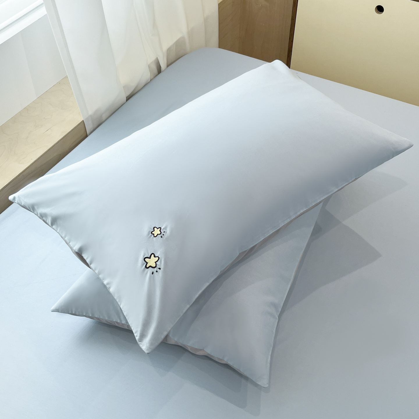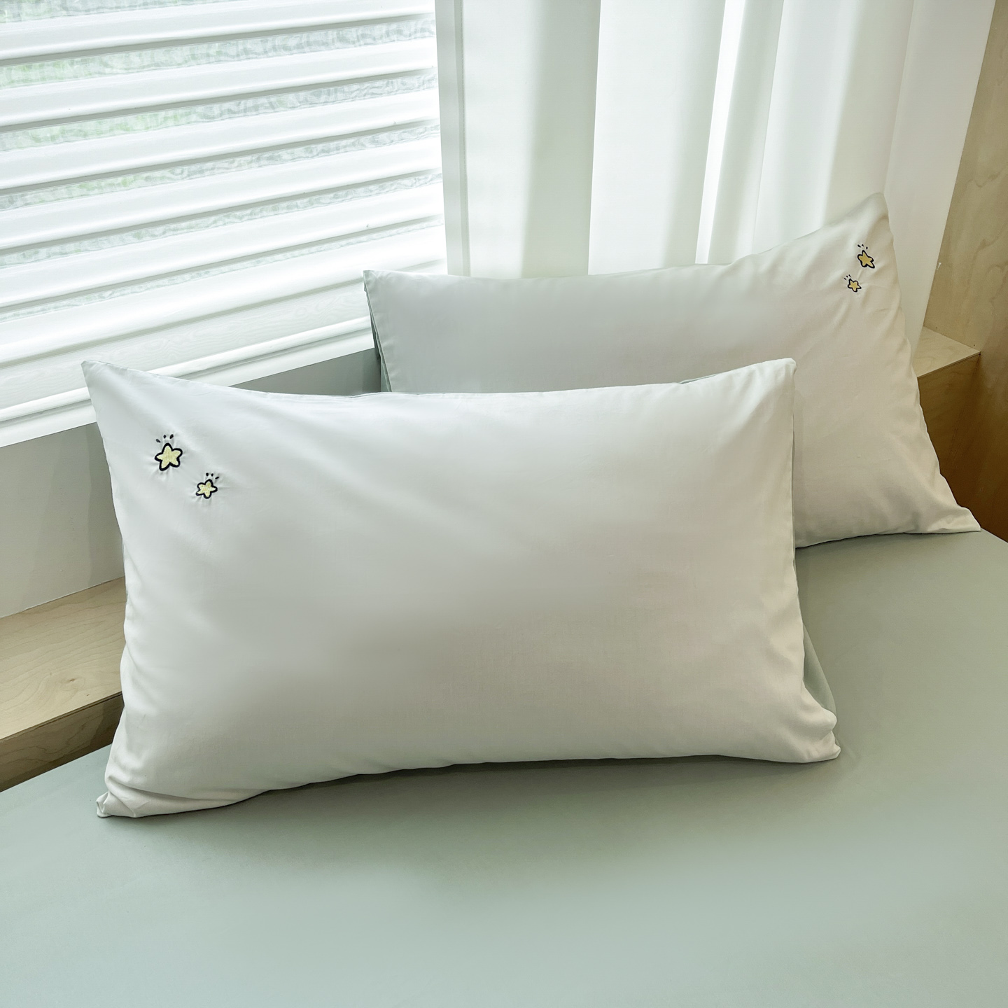 商品名称:泽西家纺+V17798841158发大图 2026新品全棉13376刺绣简约星星枕套 银灰+西柚橙